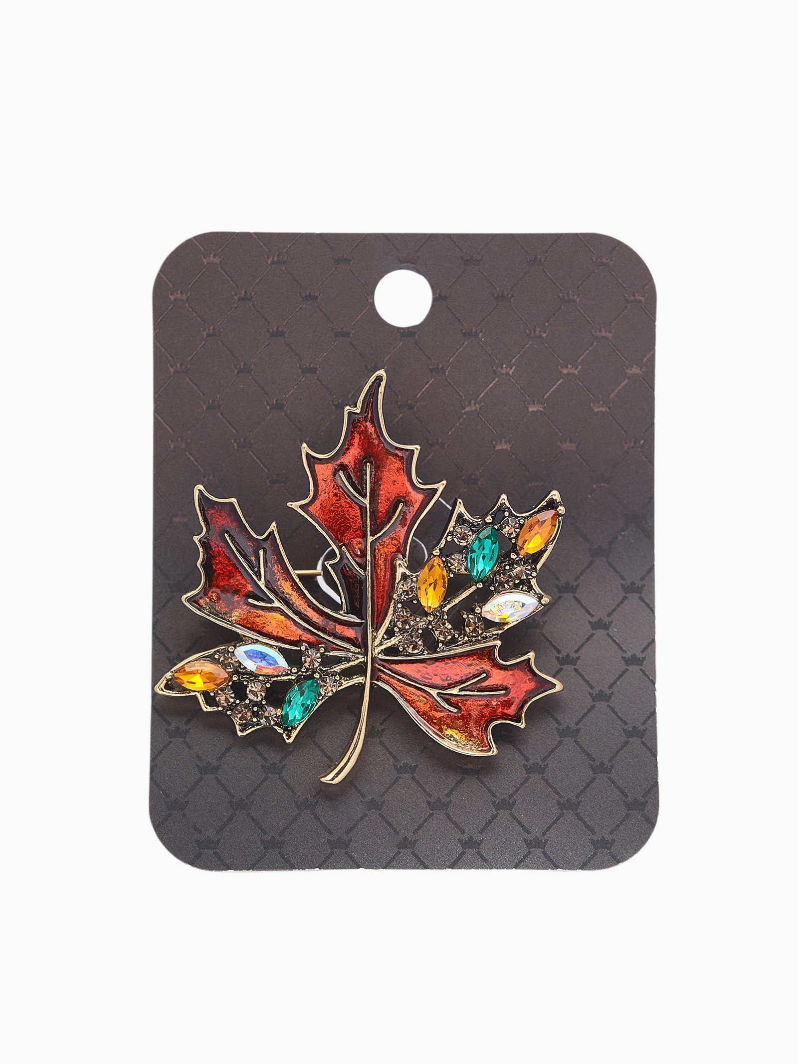 Вид: Броши, Брошь, Брошь Тематика: Растения, цветы, Цветы и растения Вставка/Подвеска: Стекло, Стразы, Эмаль Цвет: Коричневый, Разноцветный Размер упаковки: 5 x 1 x 7 см. Материал основы: Металл Материал основания: Металл Бижутерия с открыткой: Да Символ года: Нет Для кого: Для женщины Тематика праздника: Универсальная тематика Составляющие набора: Брошь tnved: 7117190000 Длина, см: 4.5 Набор: Нет Цвет фурнитуры: Чернёное золото Эта брошь в форме кленового листа воплощает изящество природы и утончённость современного стиля. Коричневые оттенки стекла гармонично сочетаются с чернёным золотом, создавая глубокий, насыщенный цвет, который привлекает взгляд и подчёркивает индивидуальность обладательницы. Длина изделия 4,5 см делает его заметным, но при этом удобным для повседневного ношения. Металлическое основание обеспечивает прочность и долговечность, а вставки из эмали, стекла и страз придают броши особый блеск и текстурное разнообразие. Такой аксессуар станет универсальным дополнением к любому образу от делового до праздничного.