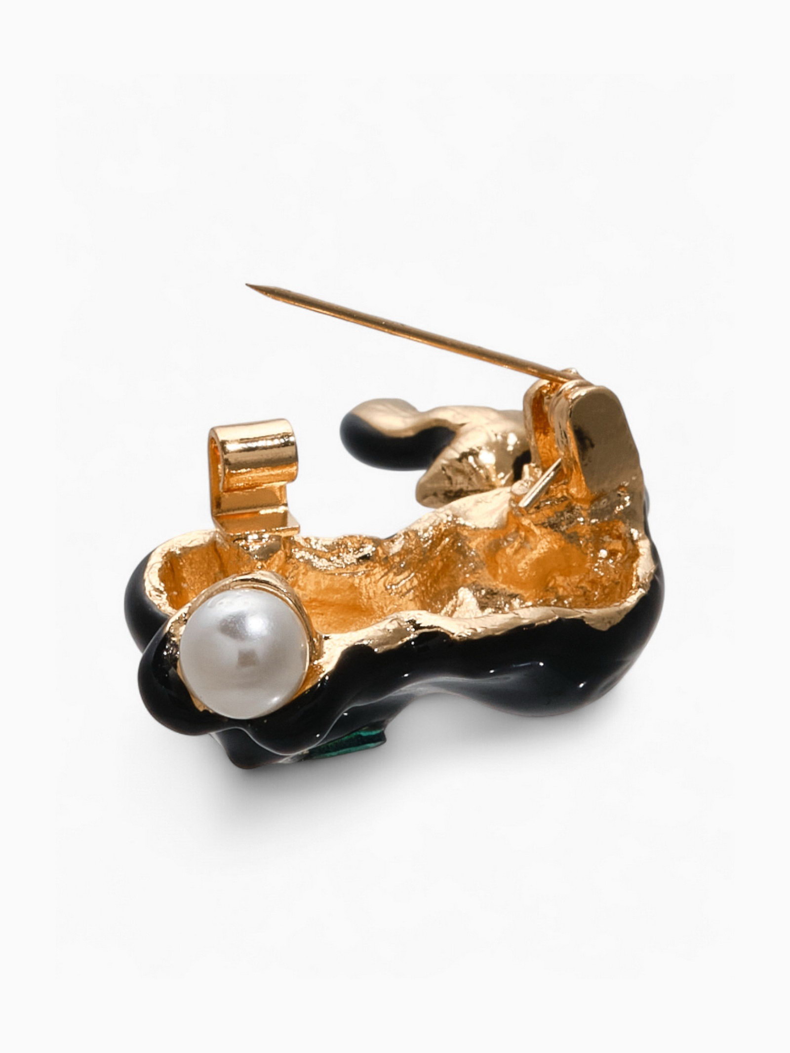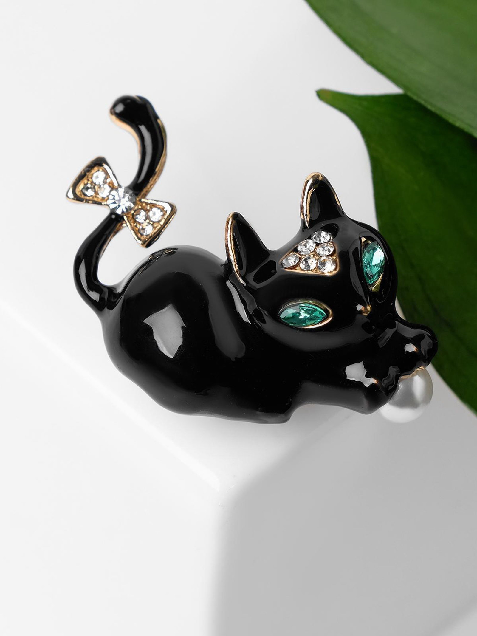 Брошь "Котёночек", чёрно-белая в золоте, 3.8x3.3x1.8 см., QF, Китай