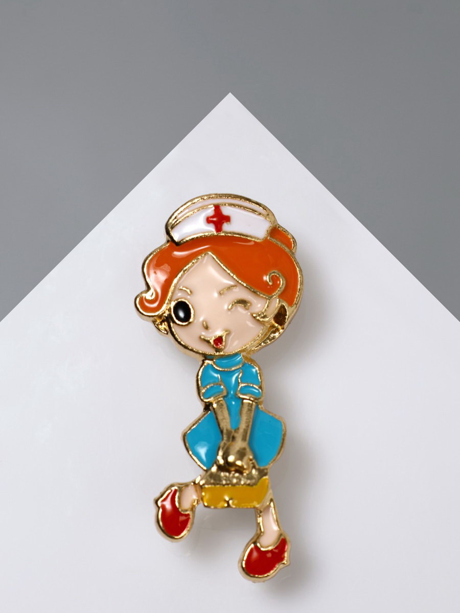 Брошь "Медсестричка", цветная в золоте, 2.3x5x1 см., QF, Китай