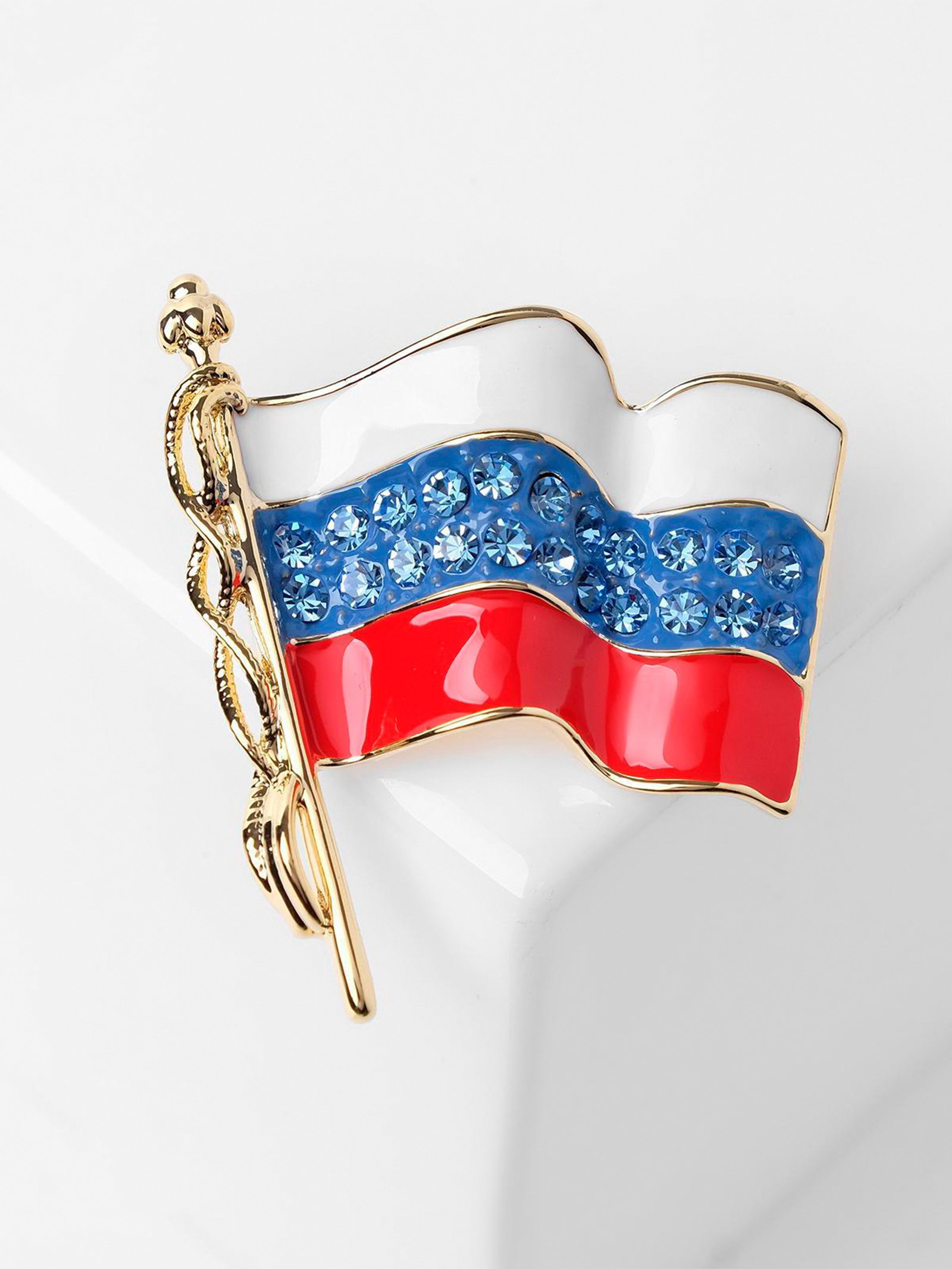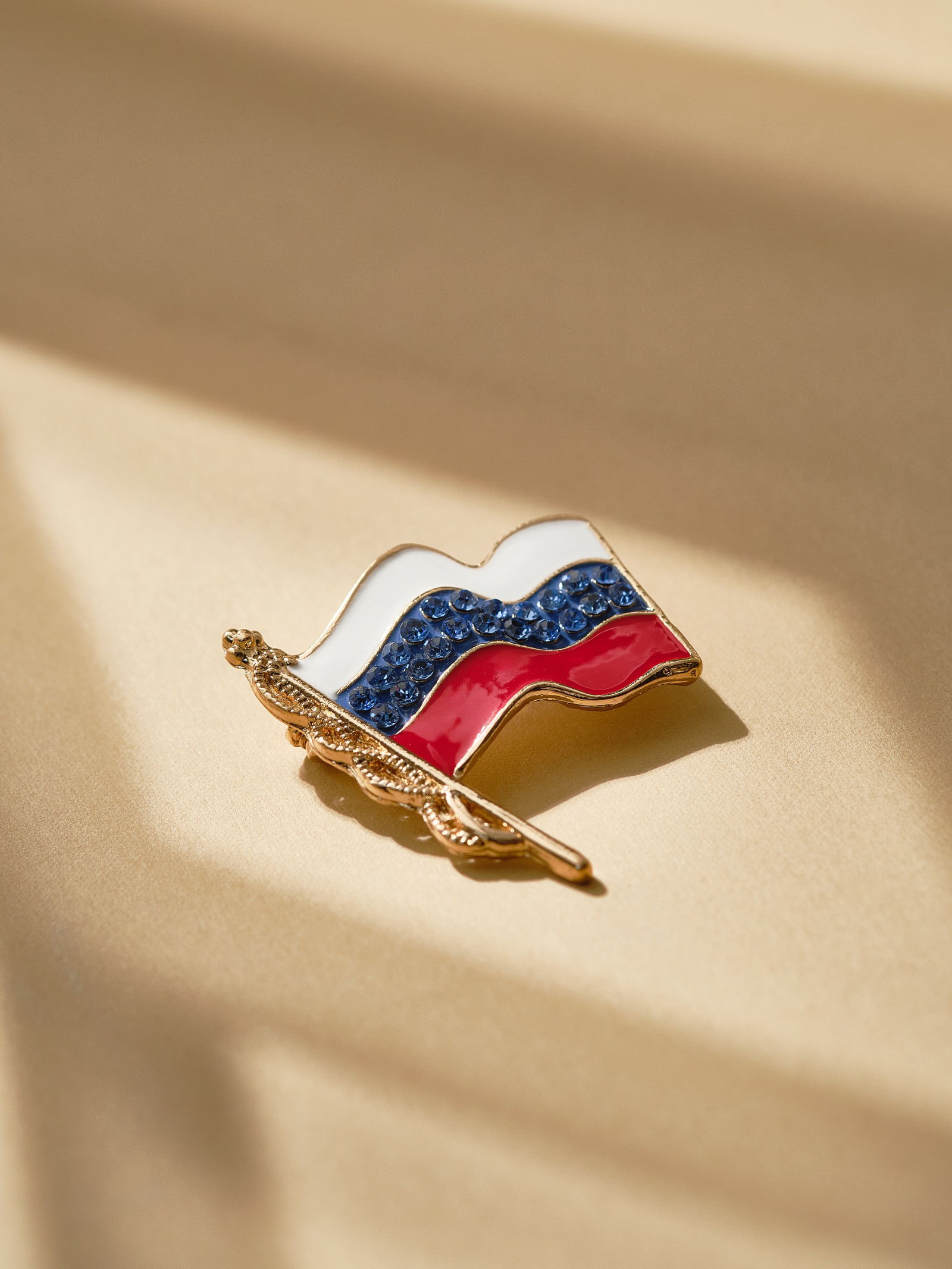Брошь "Флаг" России, цветная в золоте, 3x4x1 см., QF, Китай