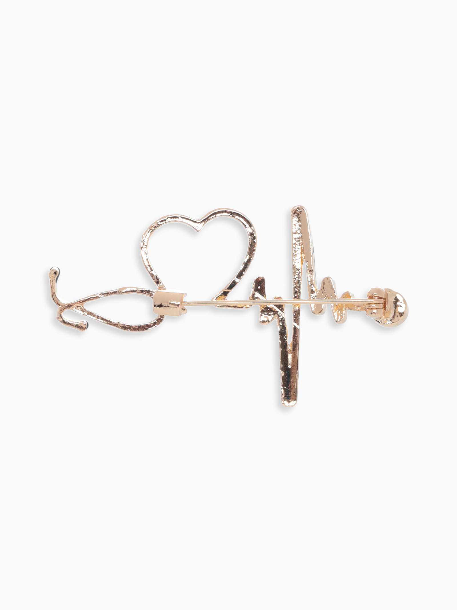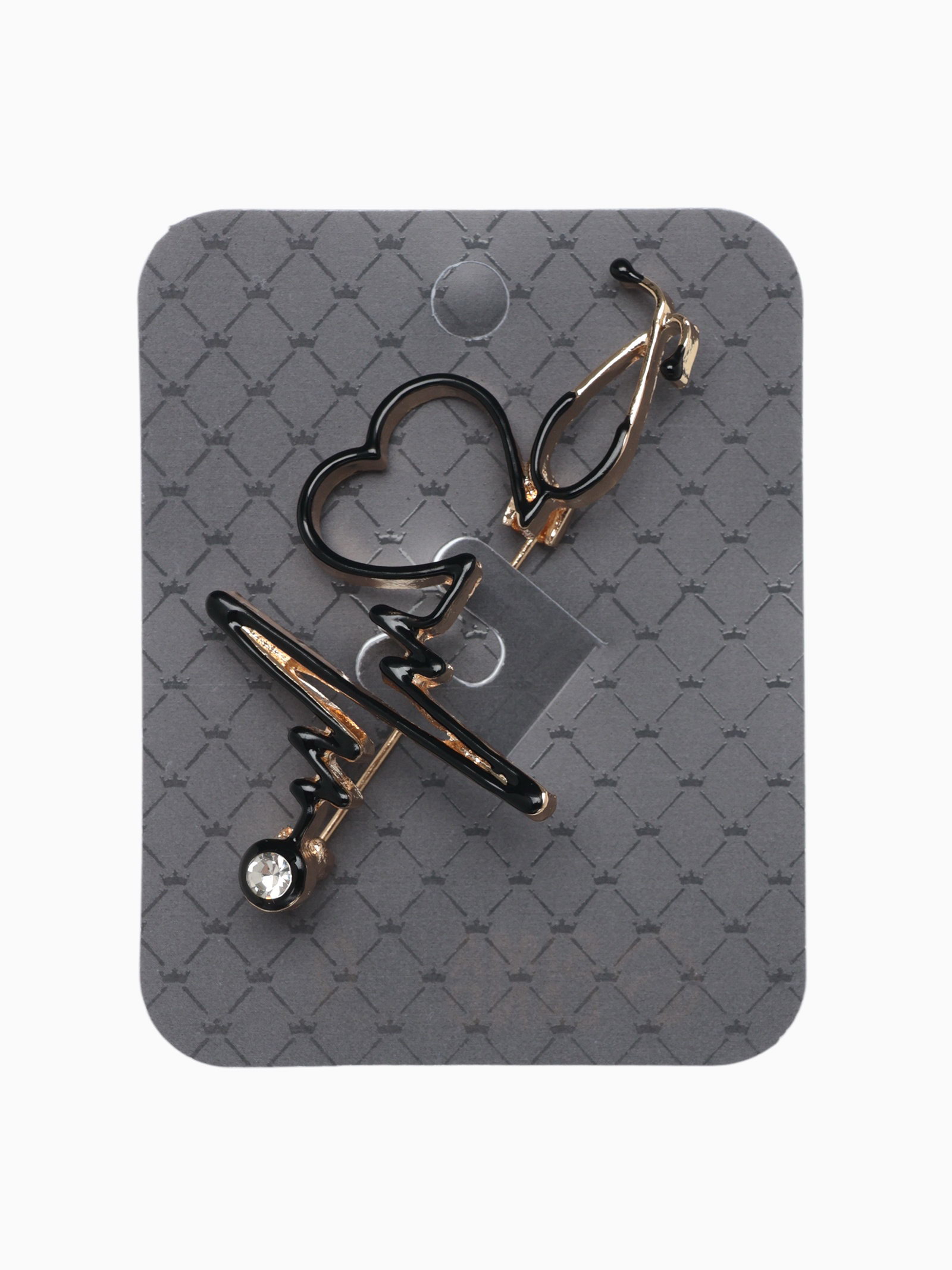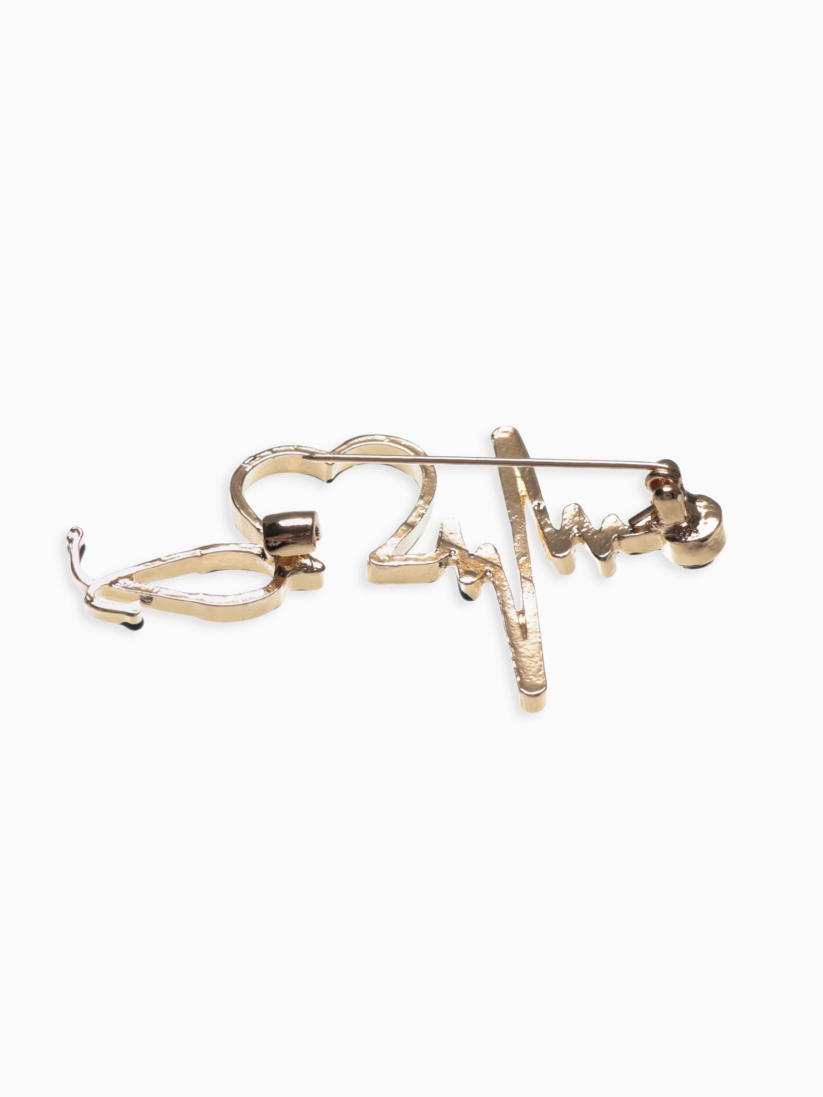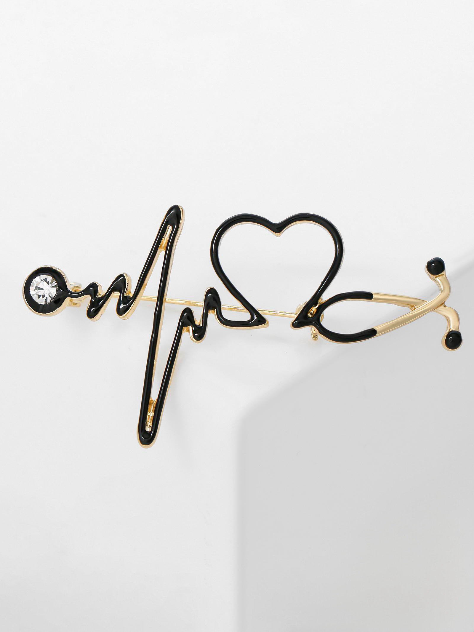 Брошь "Стетоскоп" кардиограмма, цвет чёрный в золоте, 5.5x6.6x1.5 см., QF, Китай