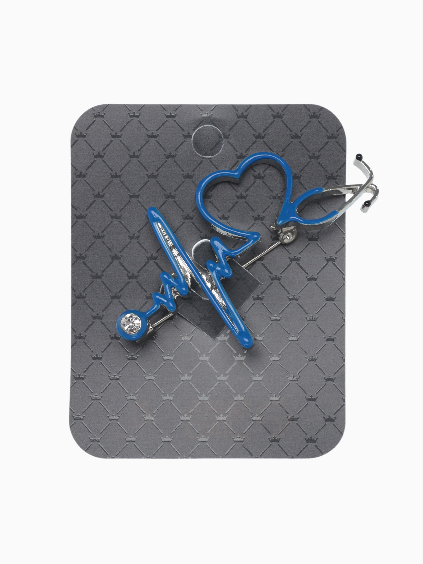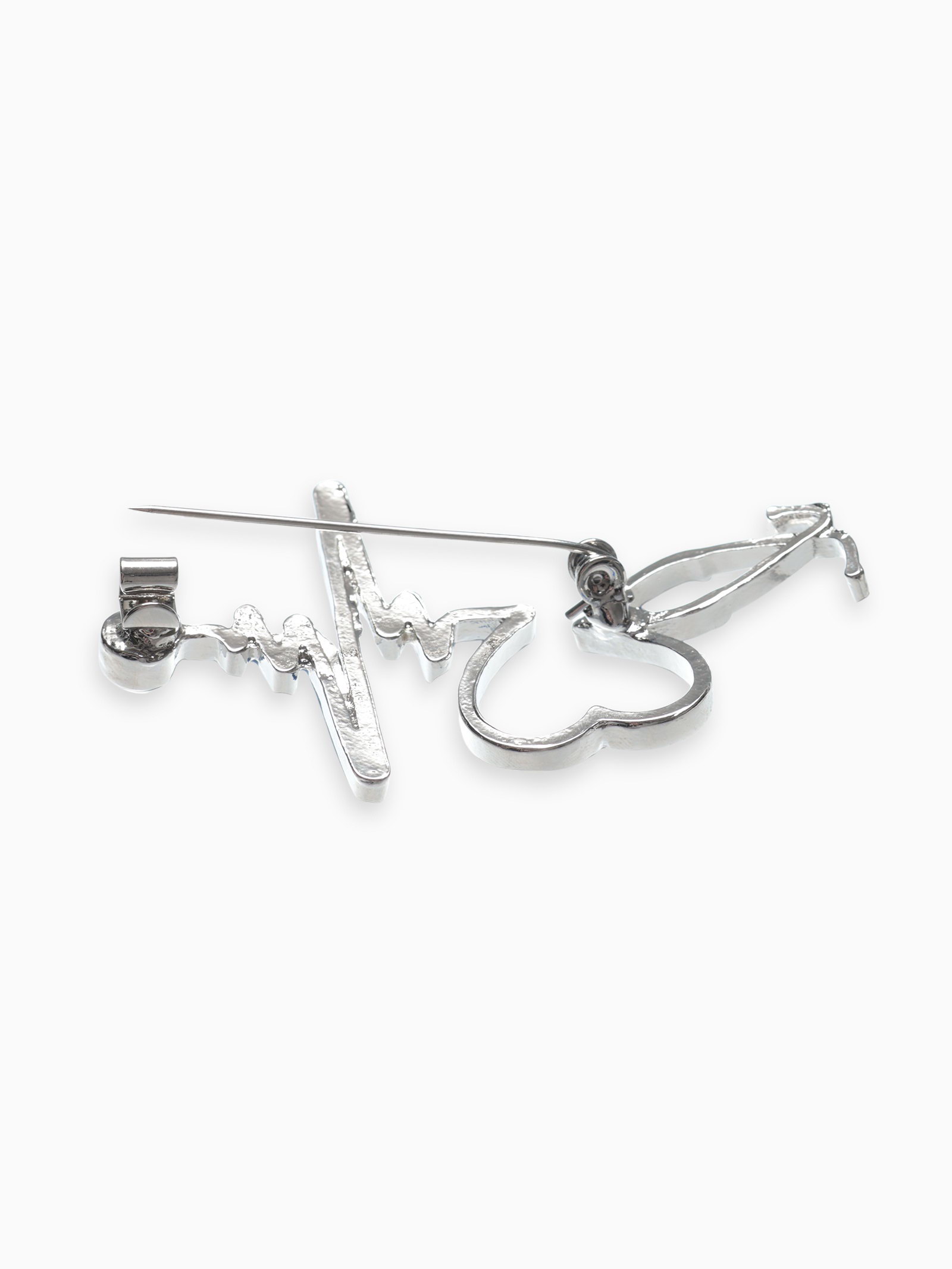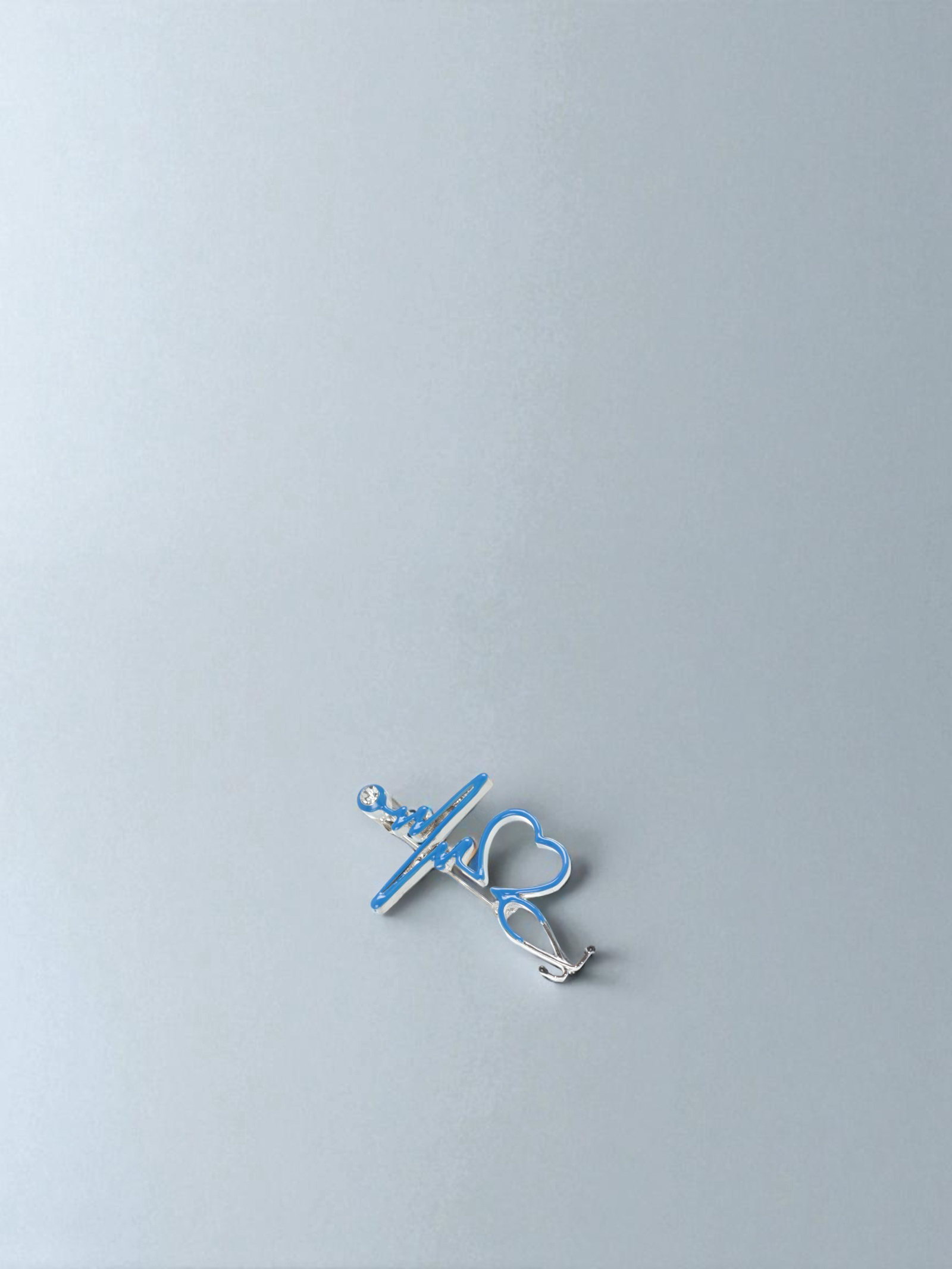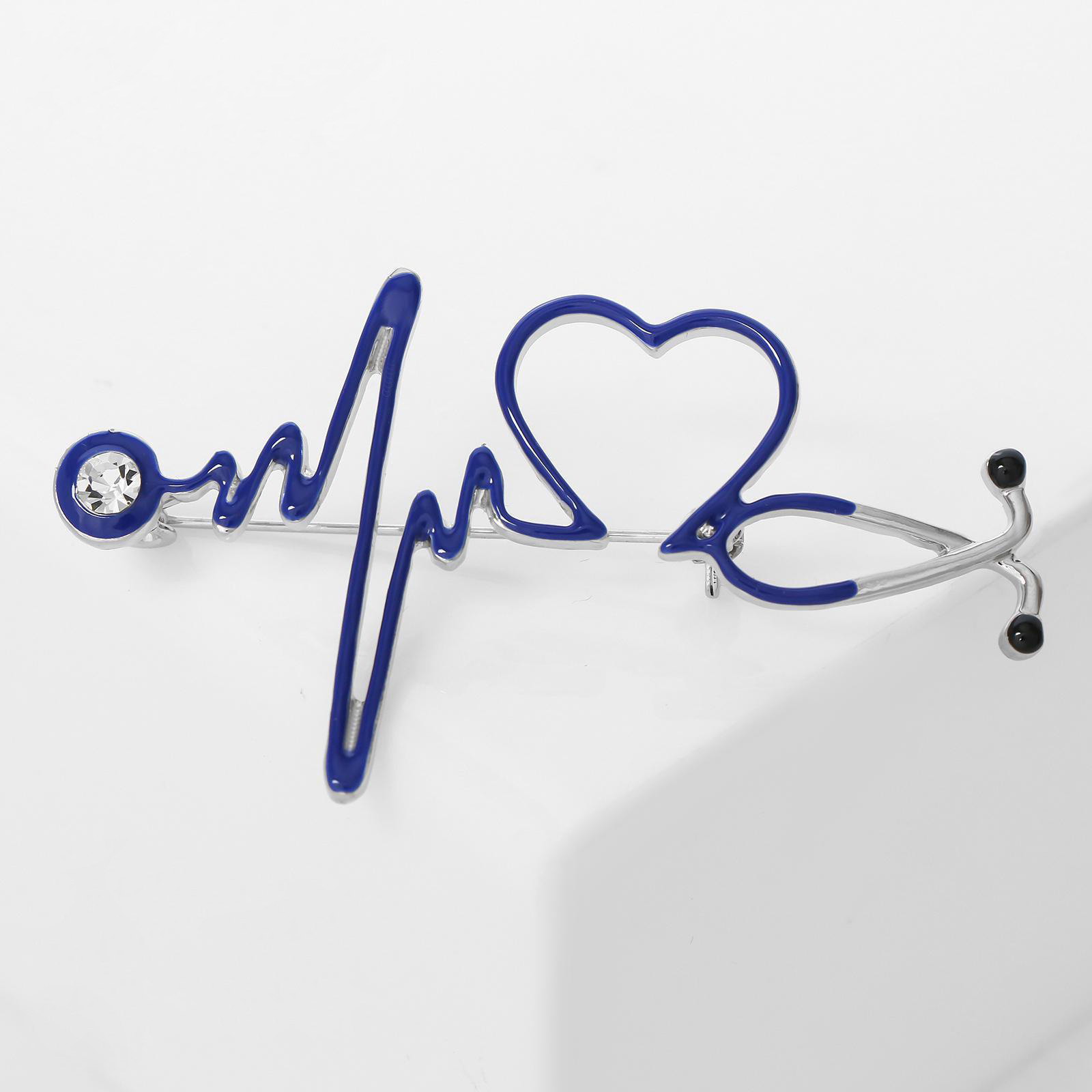 Брошь"Стетоскоп" кардиограмма, цвет синий в серебре, 5.5x6.6x1.5 см., QF, Китай