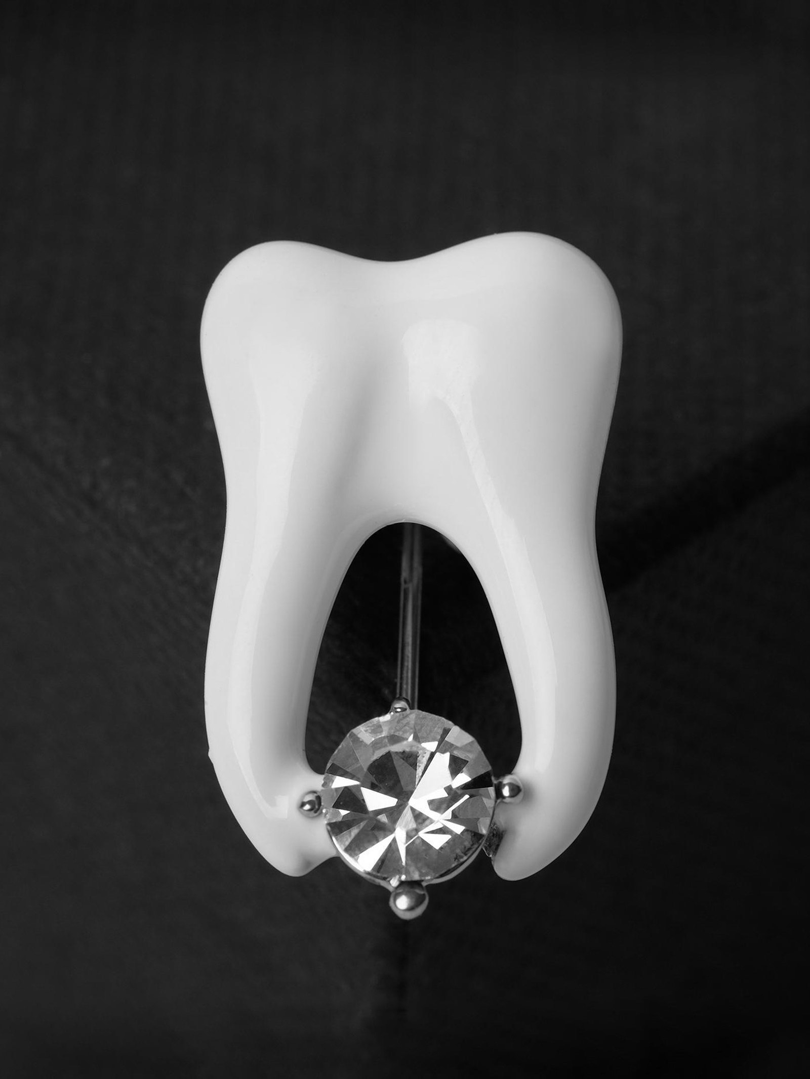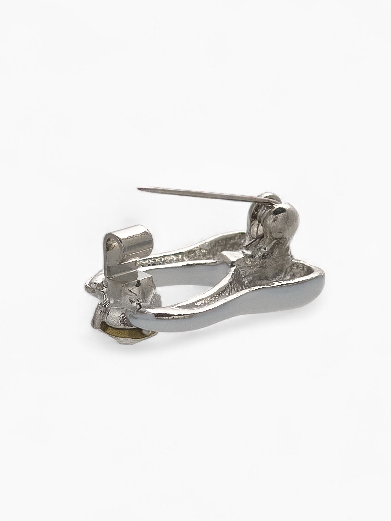 Брошь "Зуб" со стразой, цвет белый в серебре, 1.5x2.5x1 см., QF, Китай