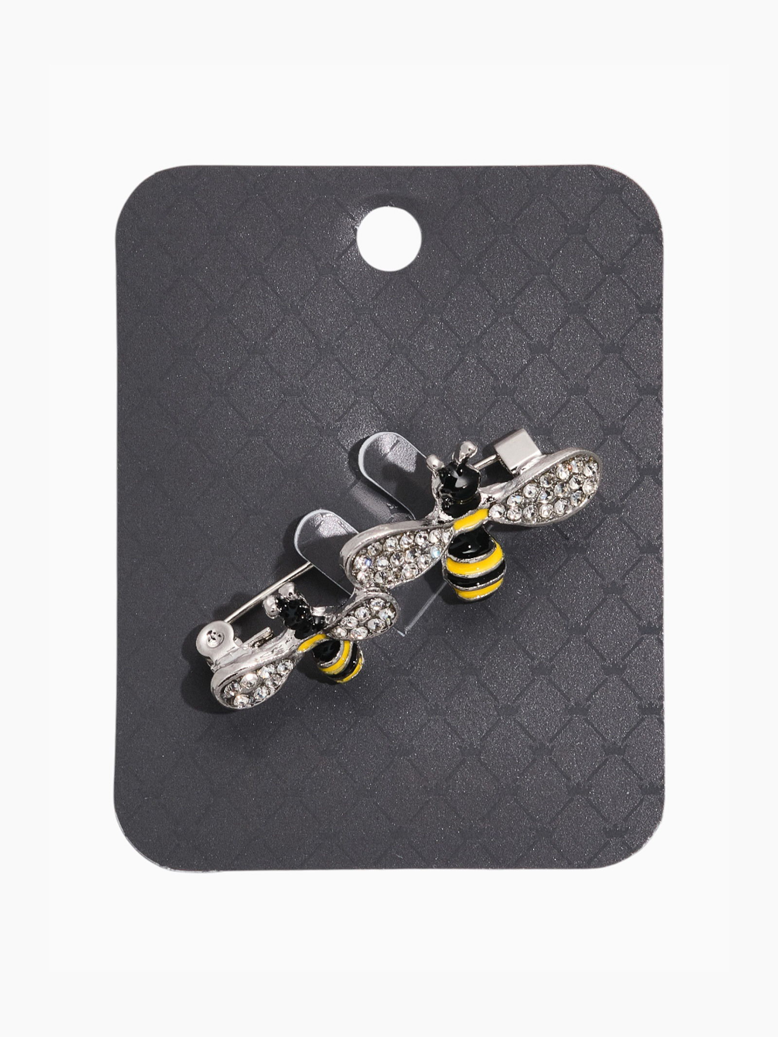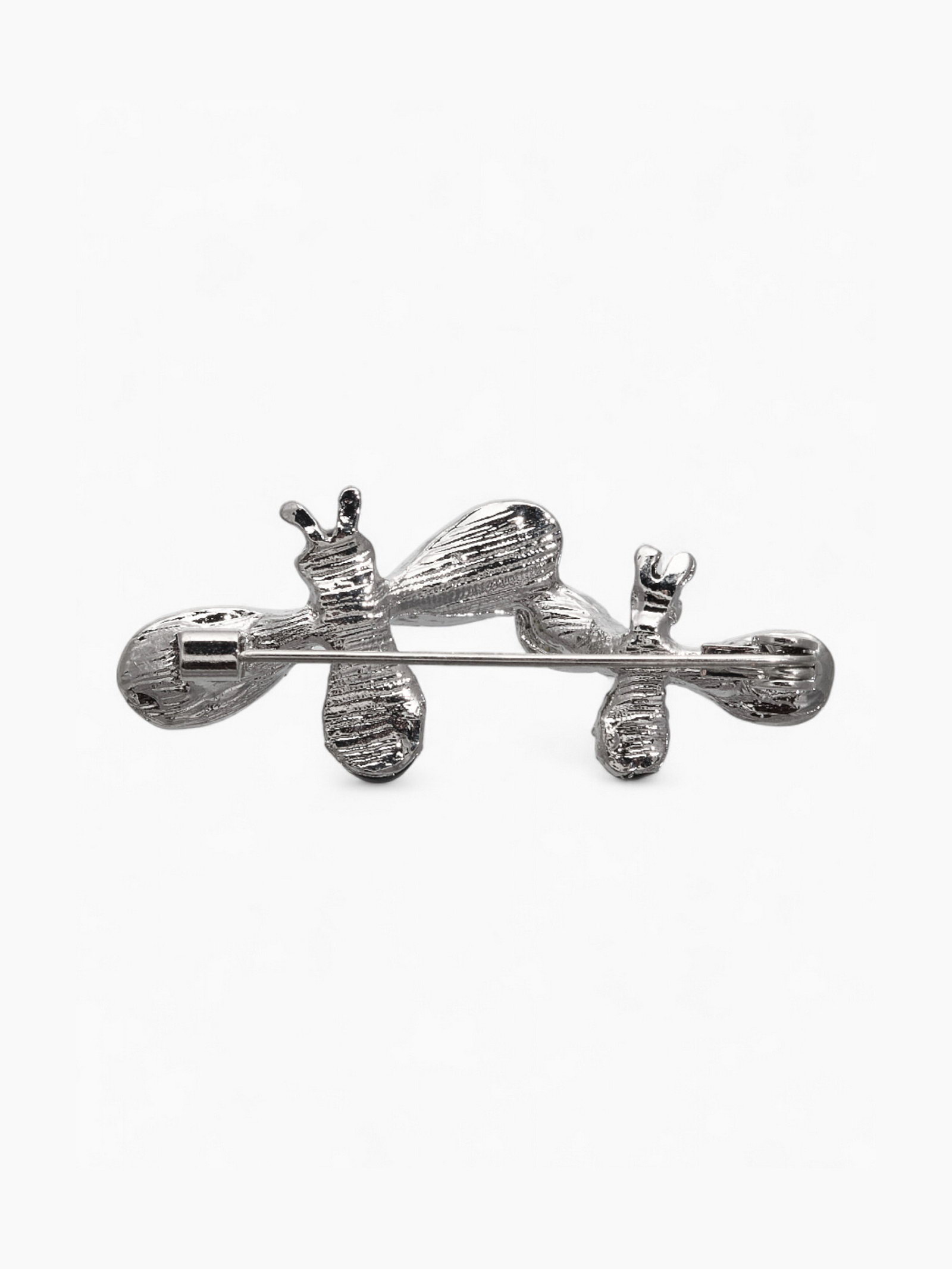 Брошь "Пчёлки", цветная в серебре, 2x4.5x1 см., QF, Китай