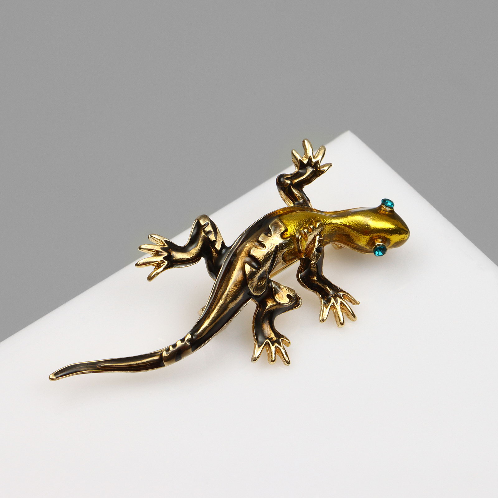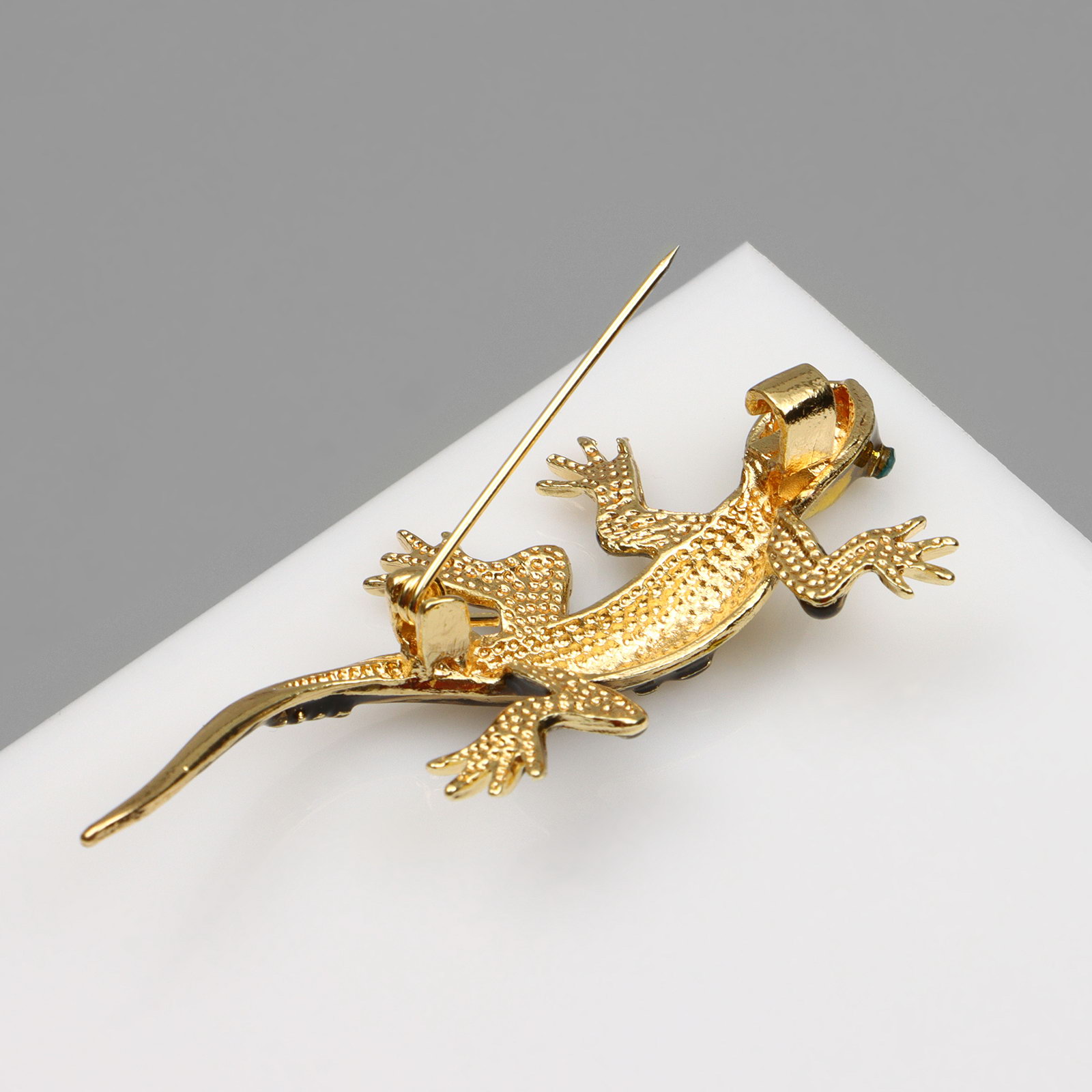 Брошь "Ящерица" дарк, цвет тёмно-зелёный в золоте, 3x6x1 см., QF, Китай