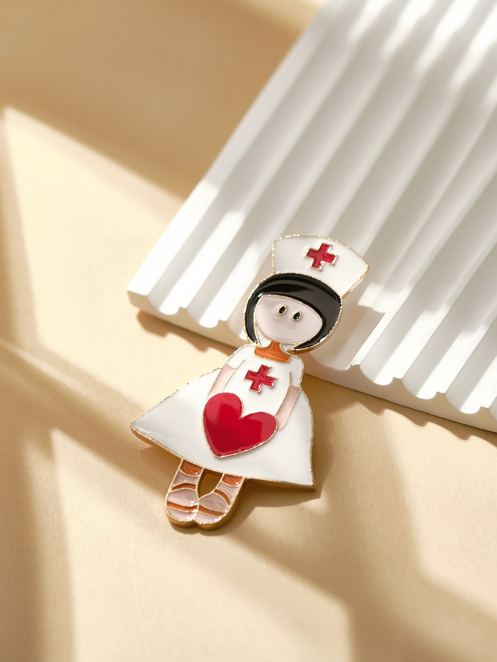 Брошь "Медсестра" с сердцем, цветная в золоте, 4x7.5x1 см., QF, Китай