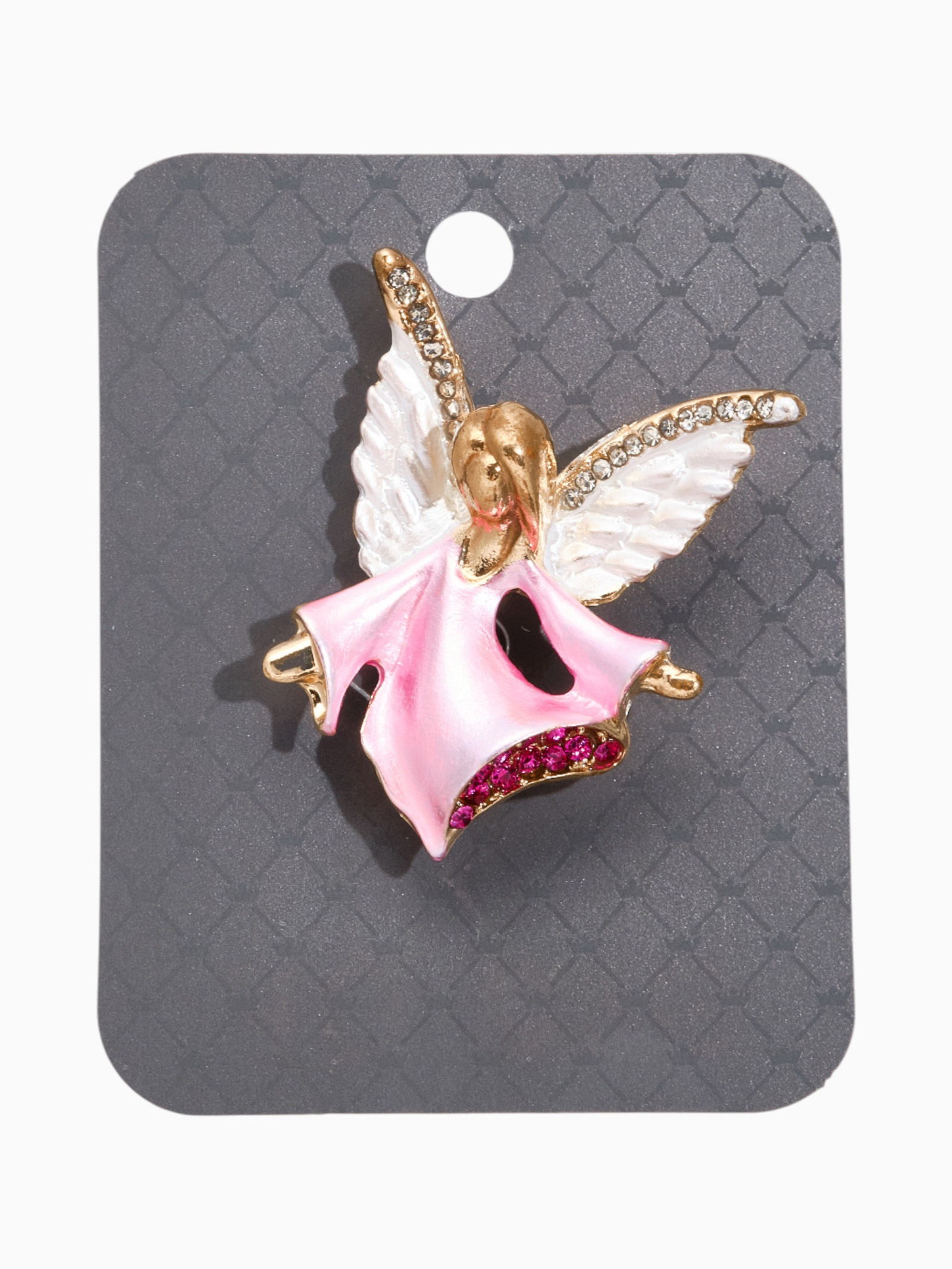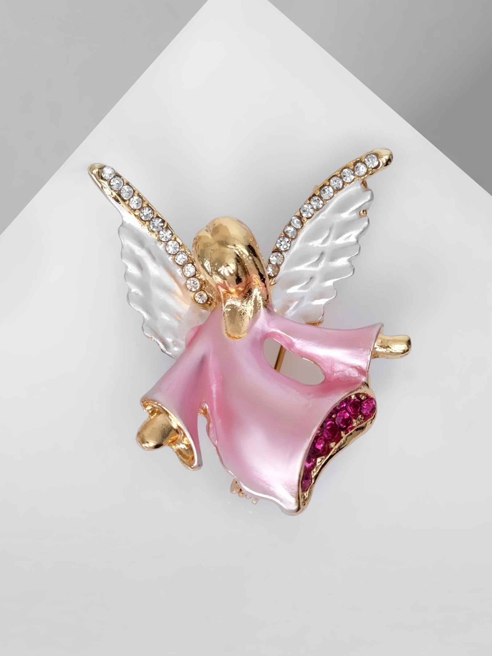 Брошь "Ангелок", цвет бело-розовый в золоте, 5x5x1 см., QF, Китай