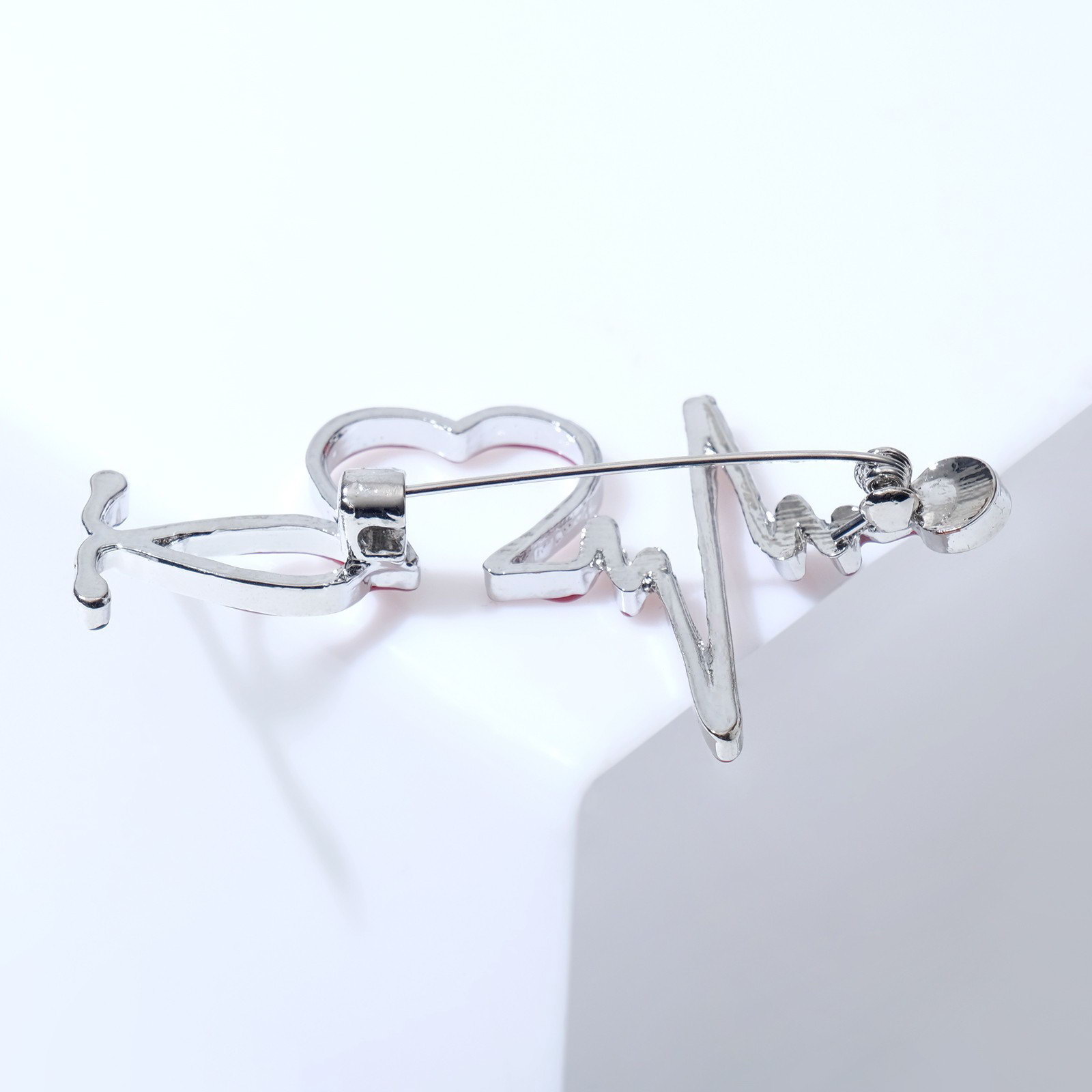 Брошь "Стетоскоп" кардиограмма, цвет красный в серебре, 5.5x6.6x1.5 см., QF, Китай