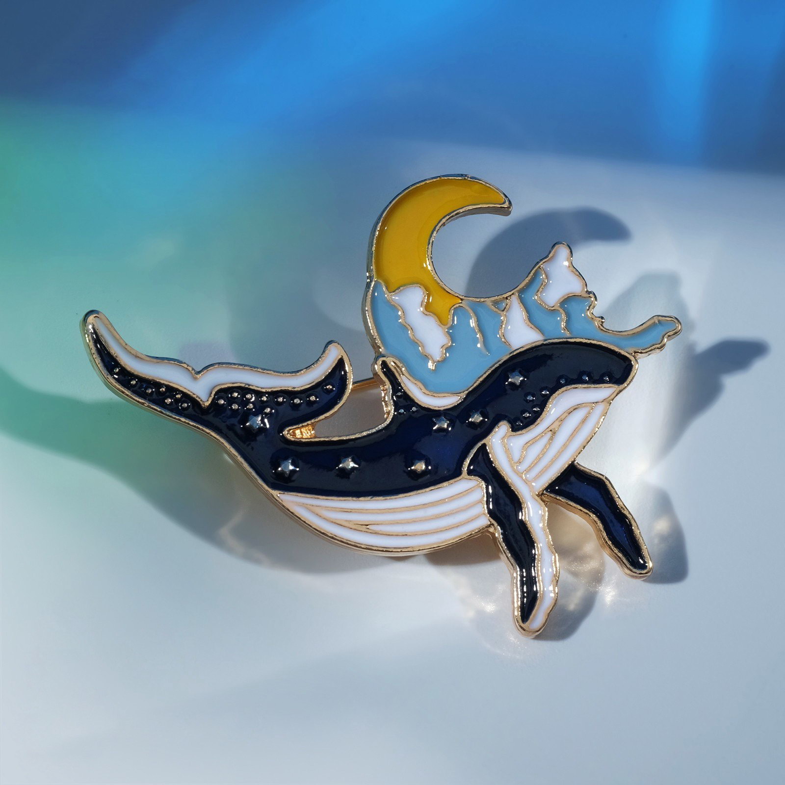 Брошь "Кит" месяц, цветная в золоте, 4.5x3.5x0.5 см., QF, Китай