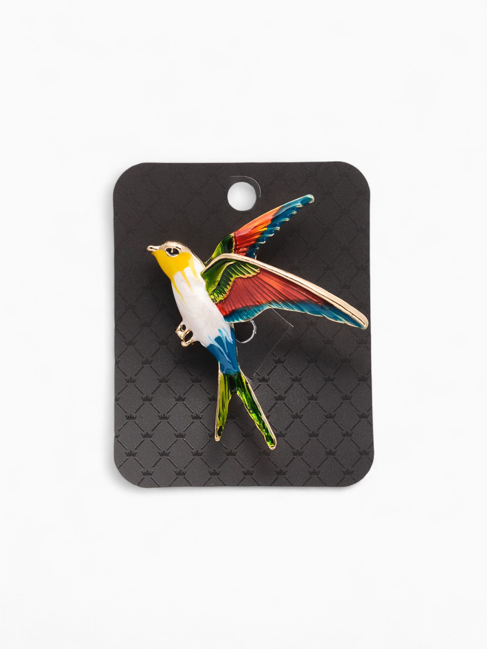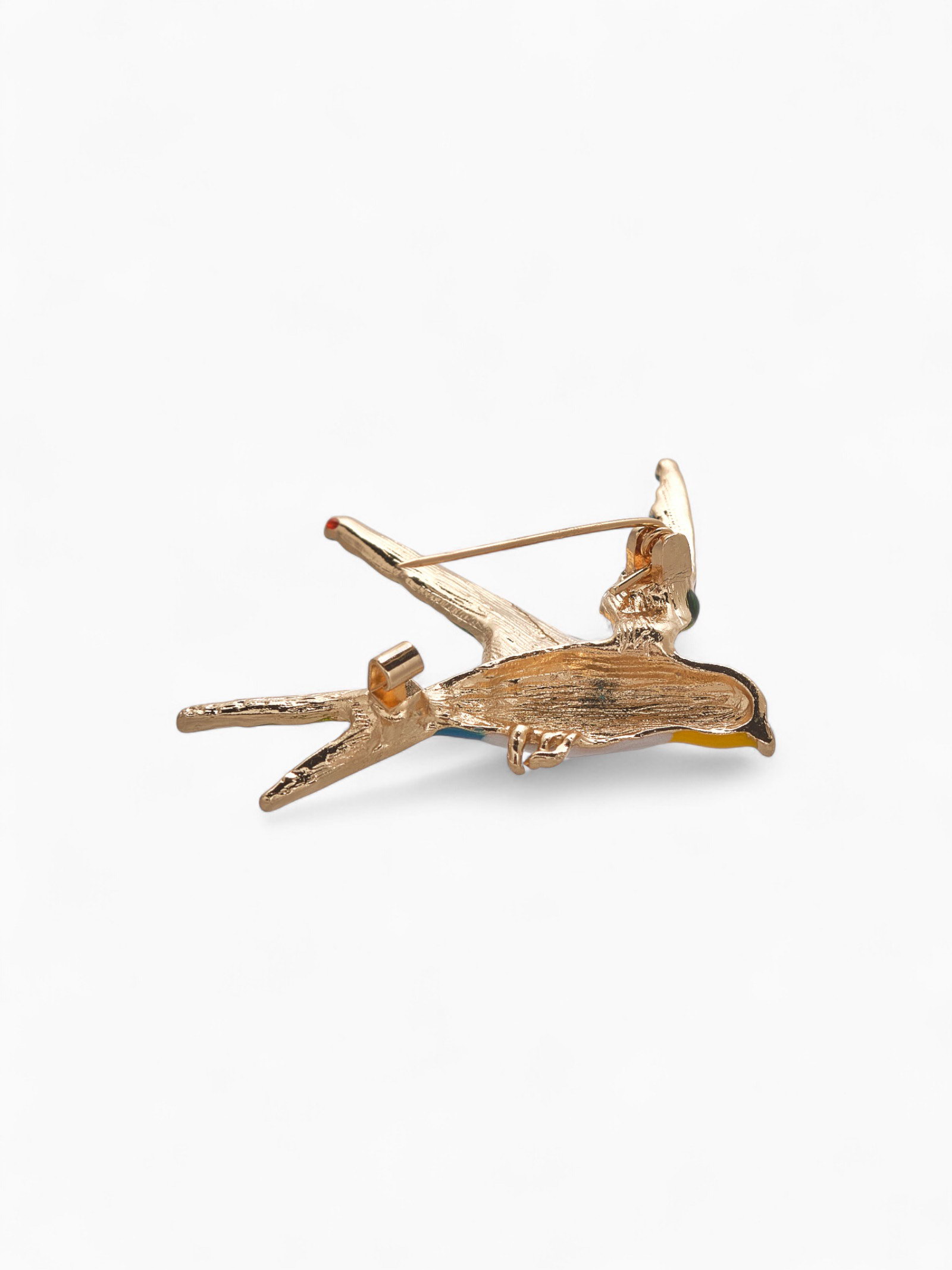 Брошь "Птичка" ласточка, цветная в золоте, 5.5x4.3x1.5 см., QF, Китай