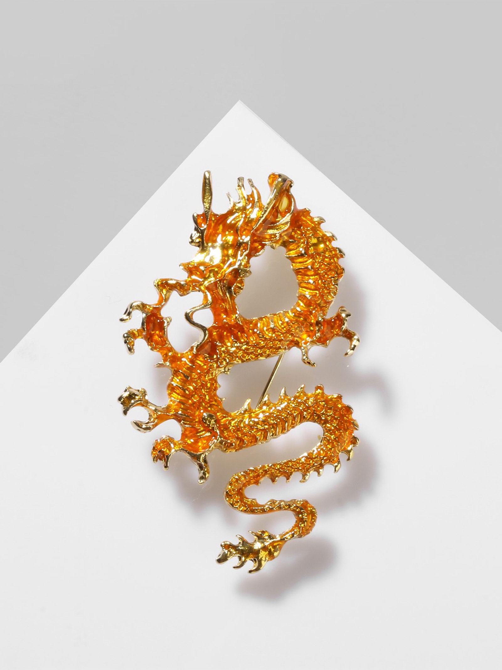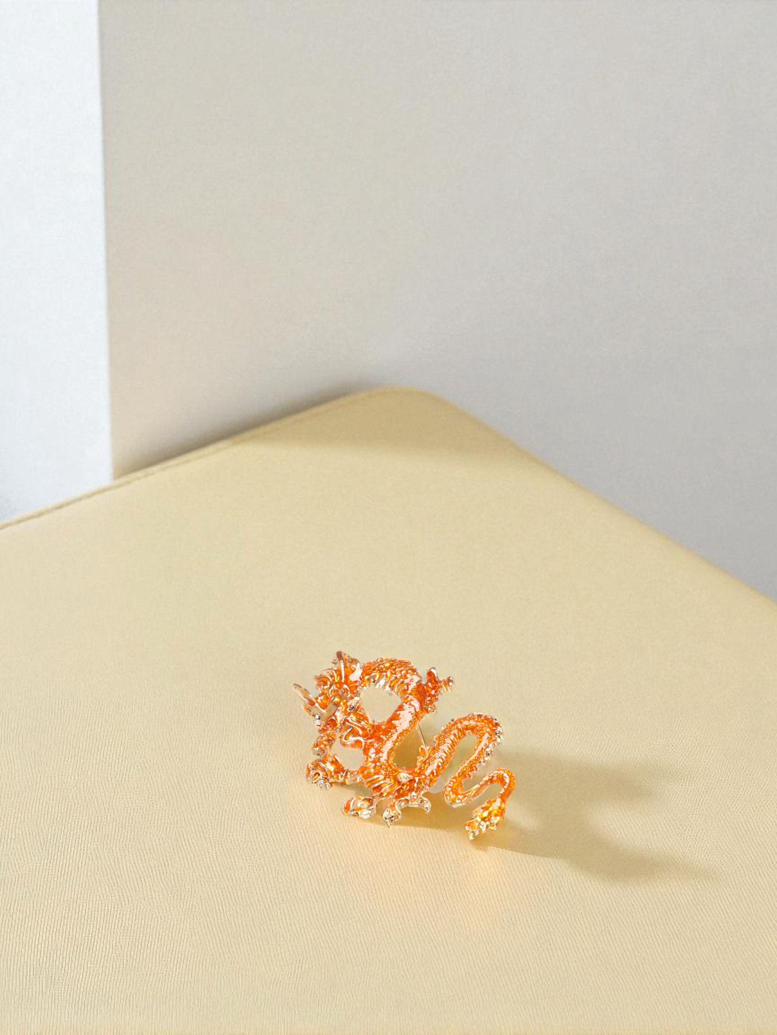 Брошь "Дракон огненный", цвет золотой, 3.2x6x1 см., QF, Китай