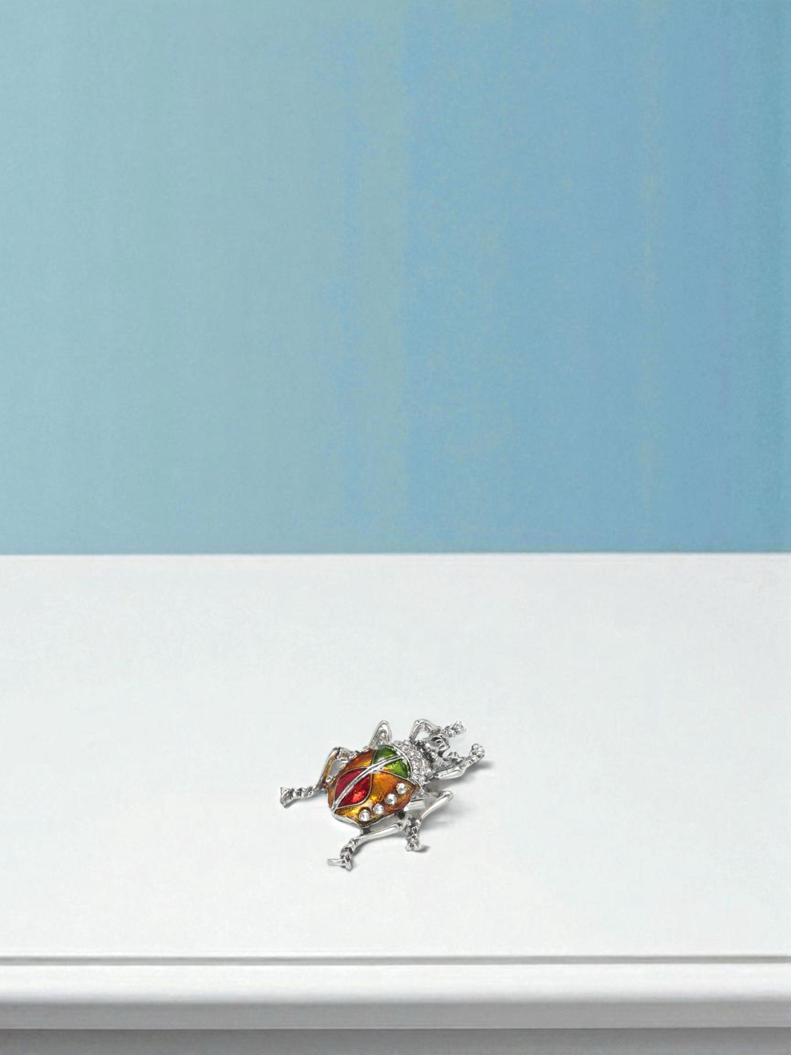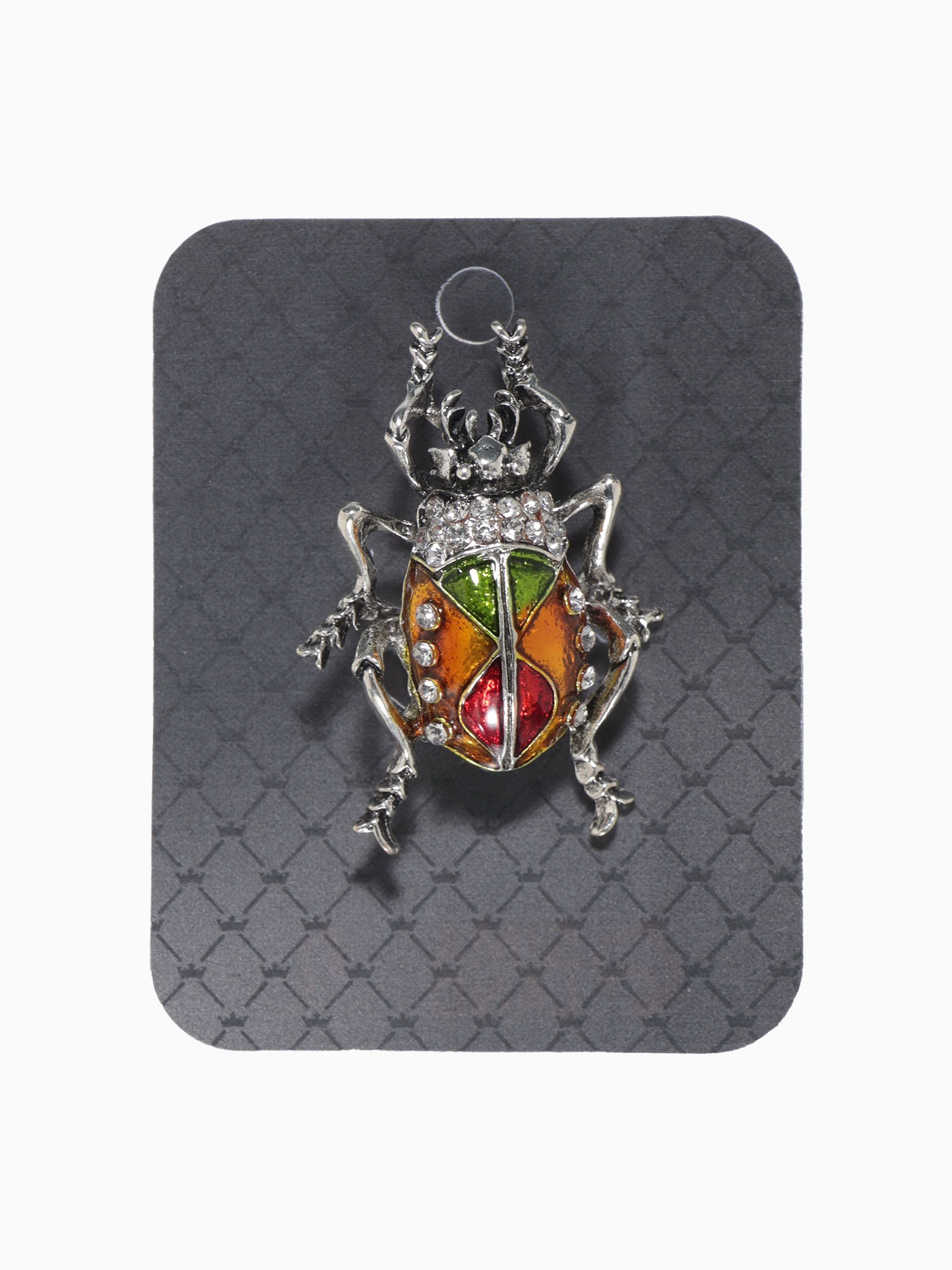 Брошь "Жук", цветной в чернёном серебре, 3.5x4.5x1.8 см., QF, Китай