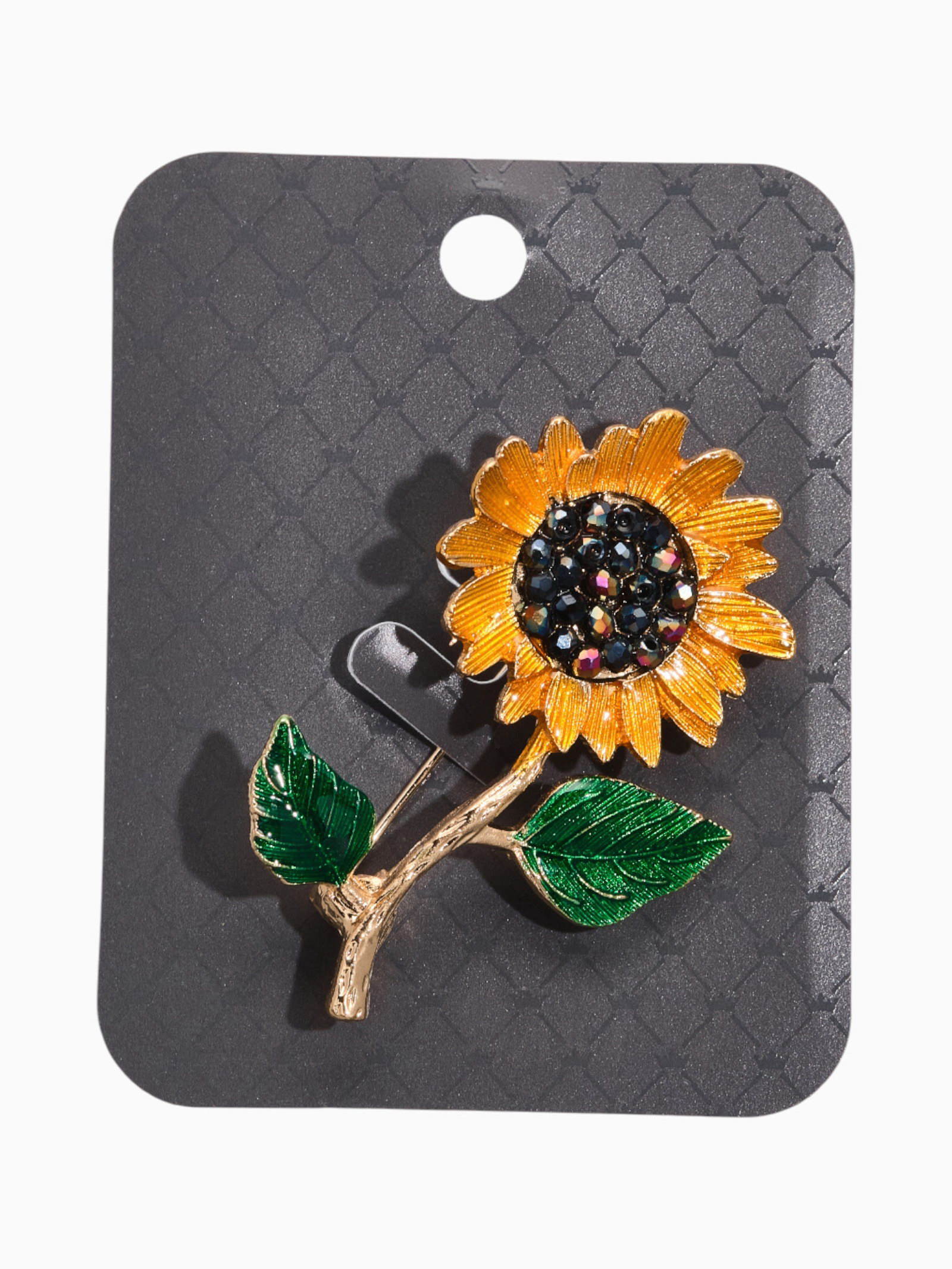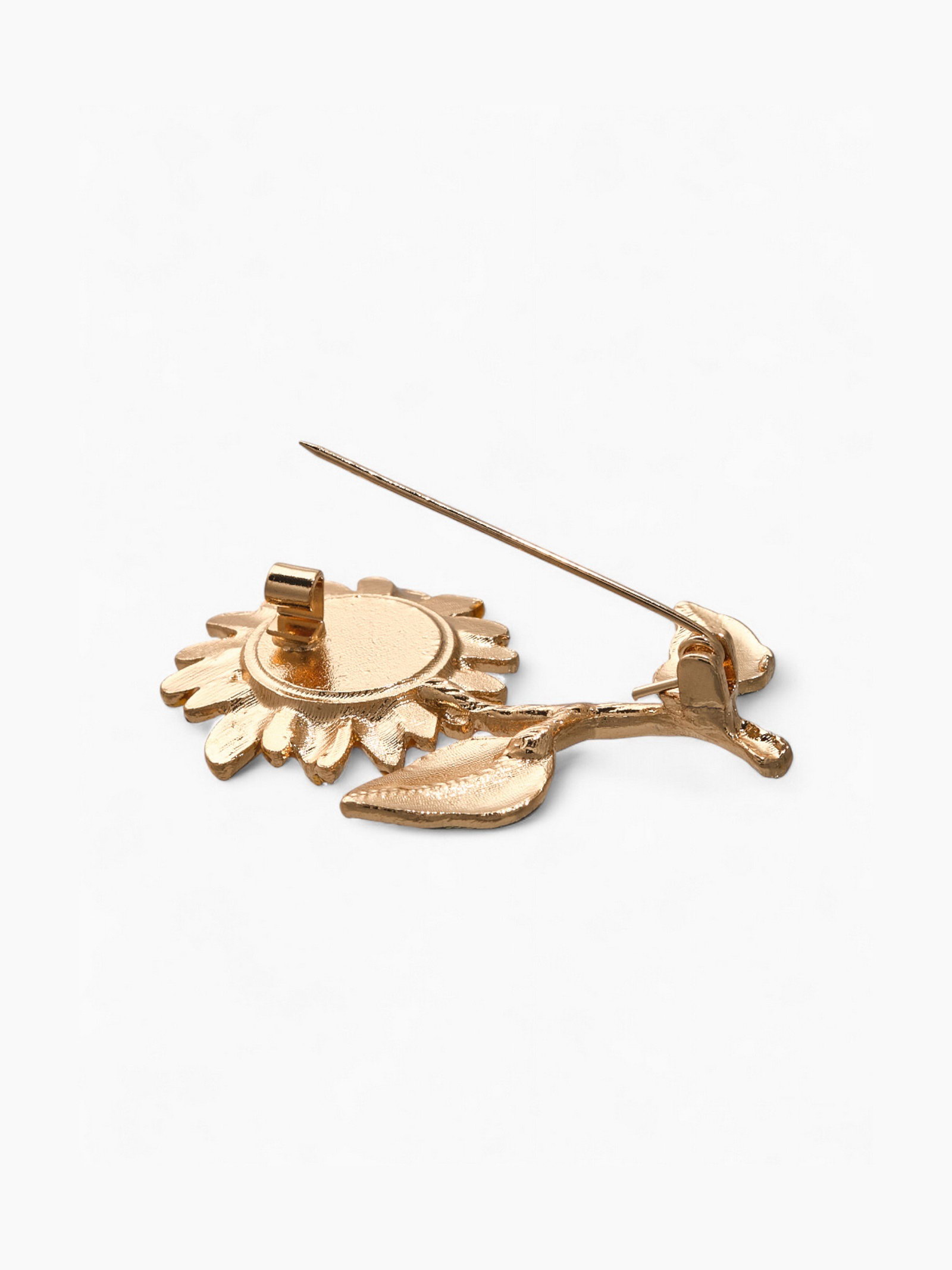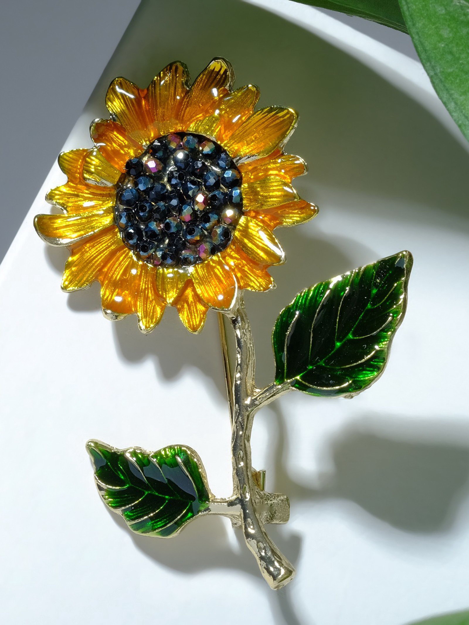 Брошь "Цветок подсолнуха" на стебле, цветная в золоте, 4.5x5.6x1 см., QF, Китай
