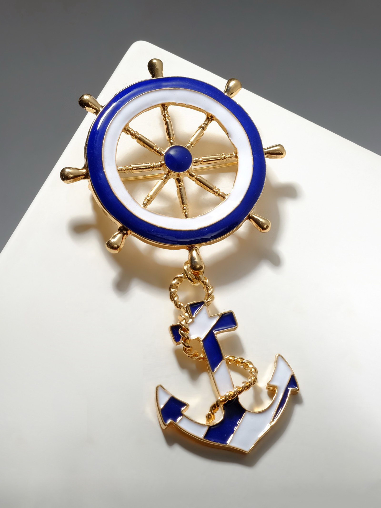 Брошь "Морской набор", цвет бело-синий в золоте, 5x7.5x1 см., QF, Китай