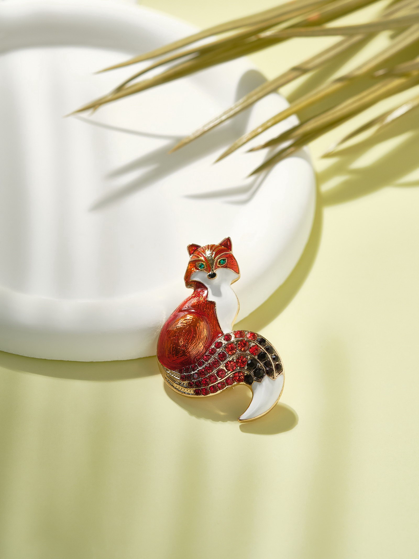 Брошь "Лисица", цветная в золоте, 3.5x5.5x1.5 см., QF, Китай