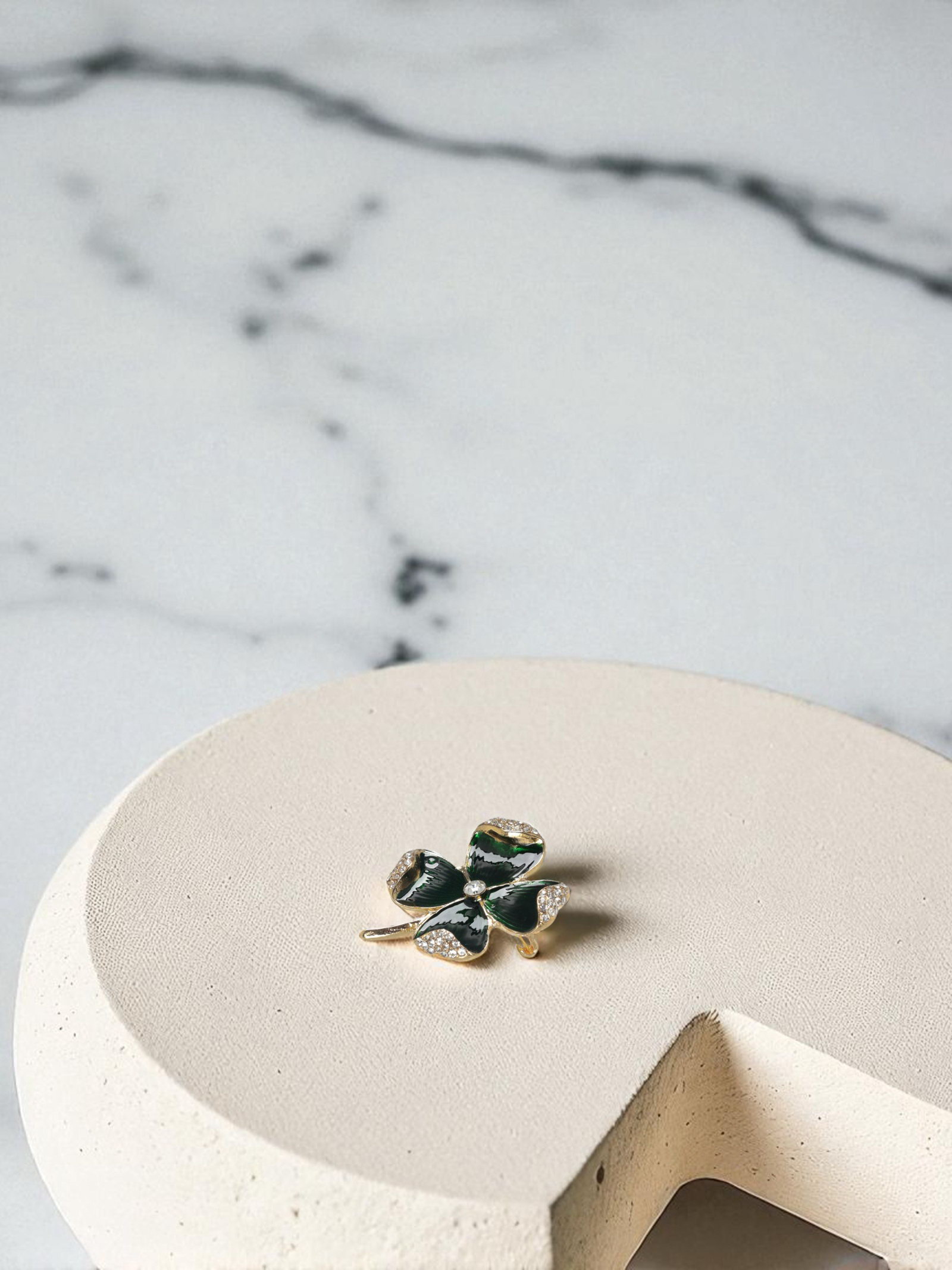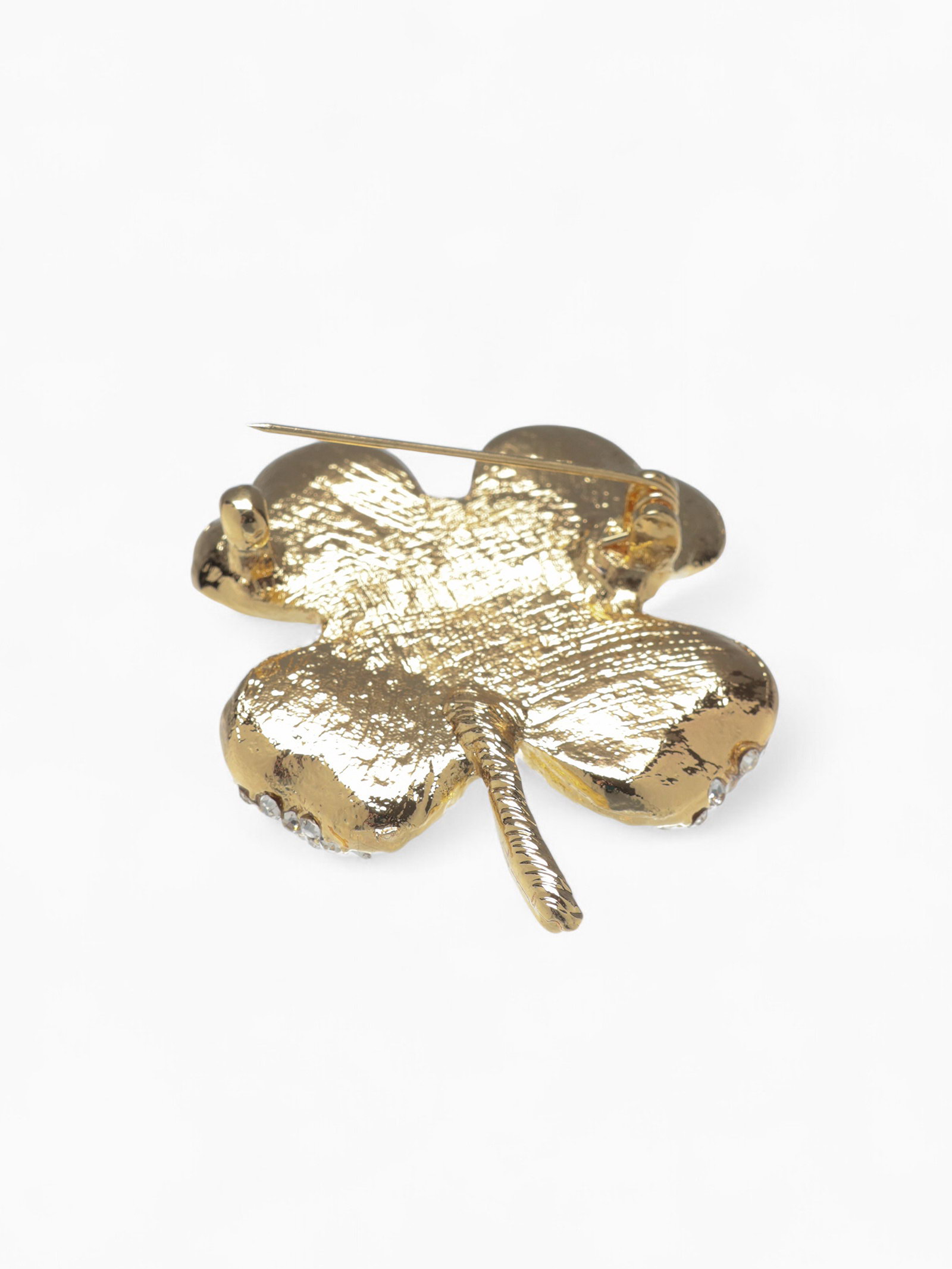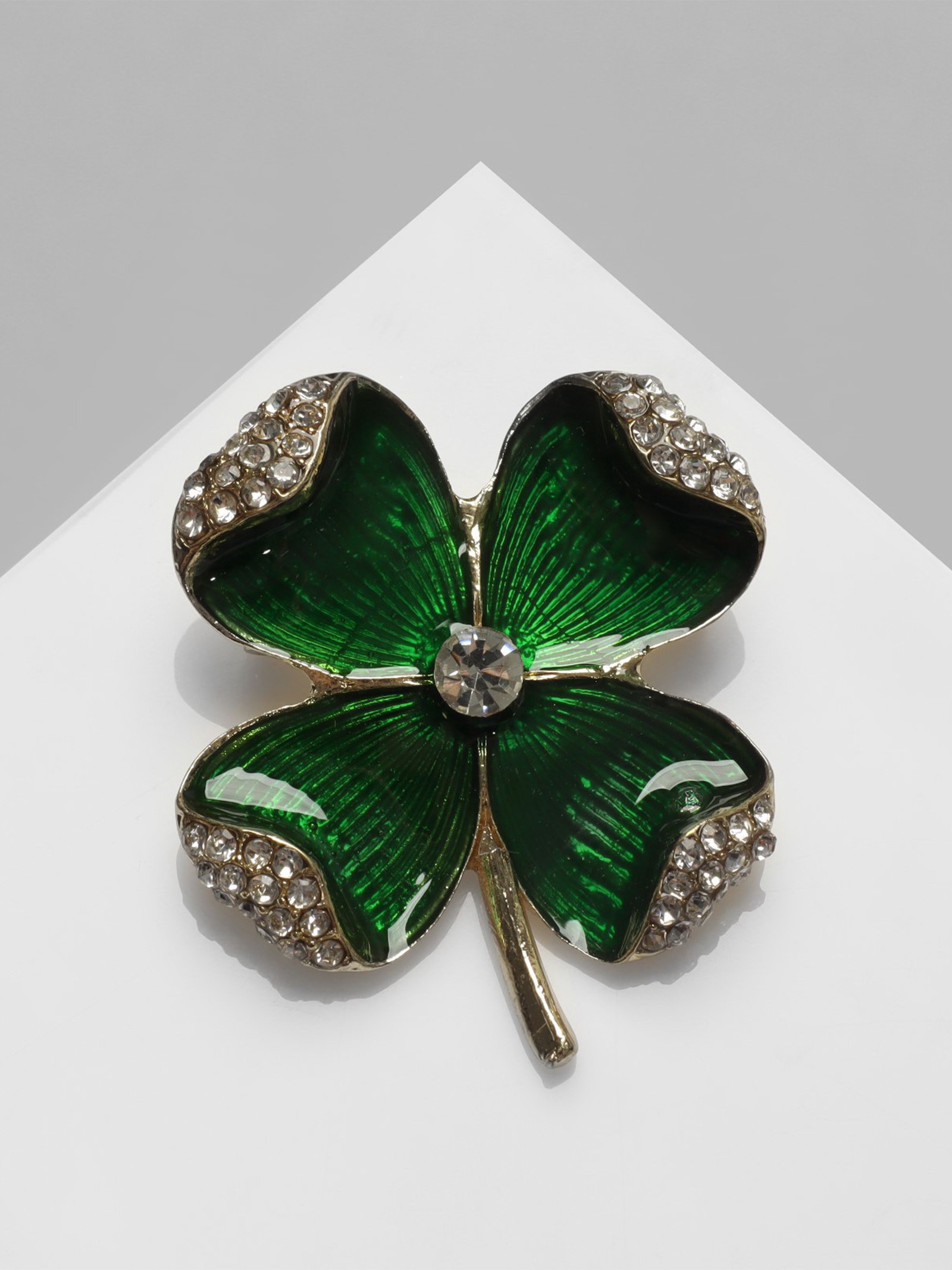Брошь "Клевер" на удачу, цвет бело-зелёный в золоте, 4x5x1.5 см., QF, Китай