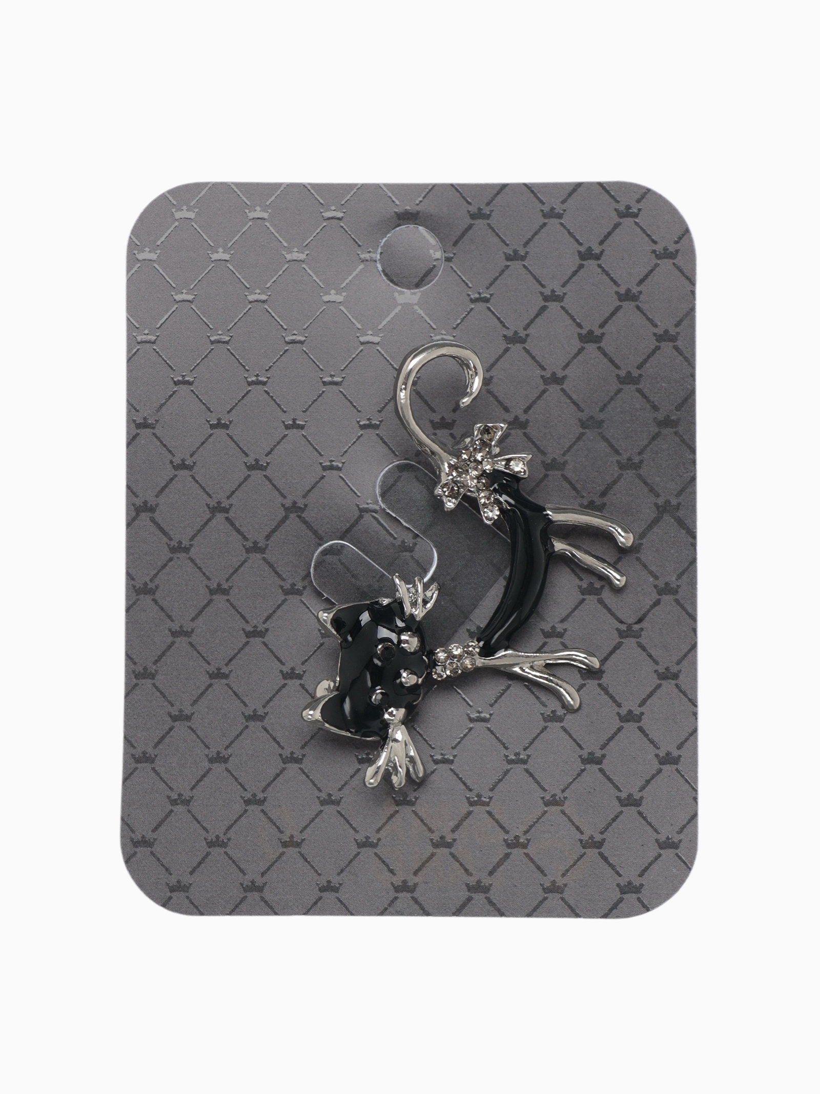 Брошь "Кошка" кокетливая с бантом, цвет чёрный в чернёном серебре, 4.5x3x1 см., QF, Китай