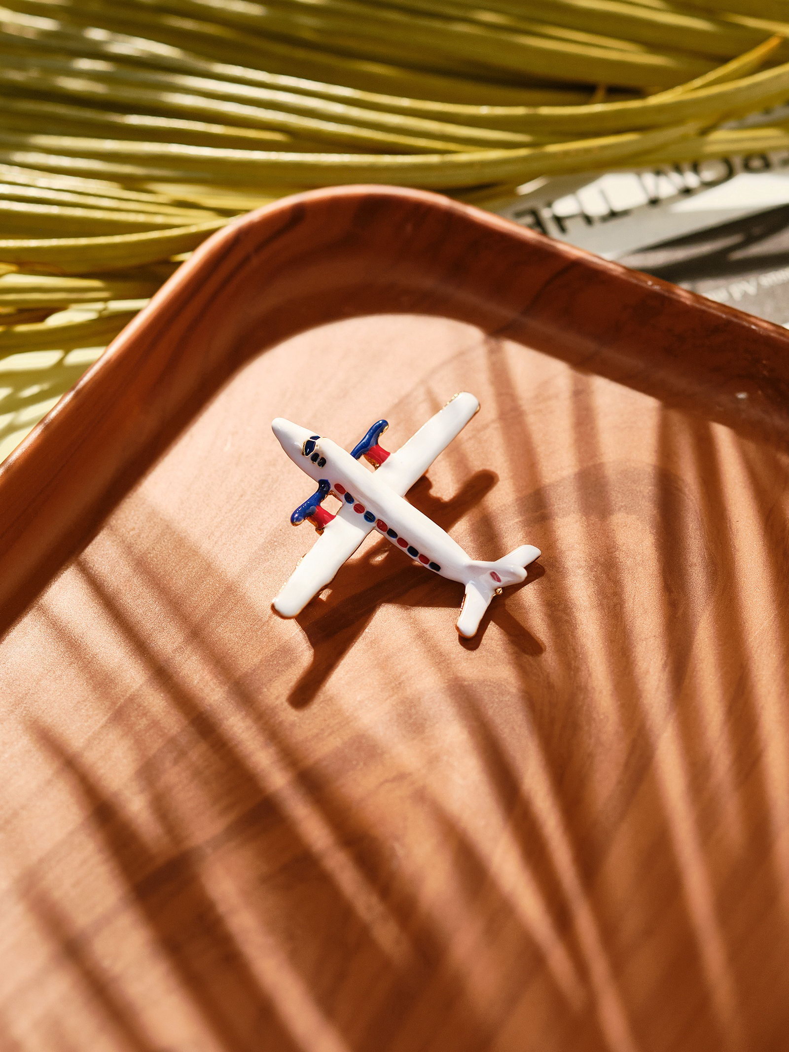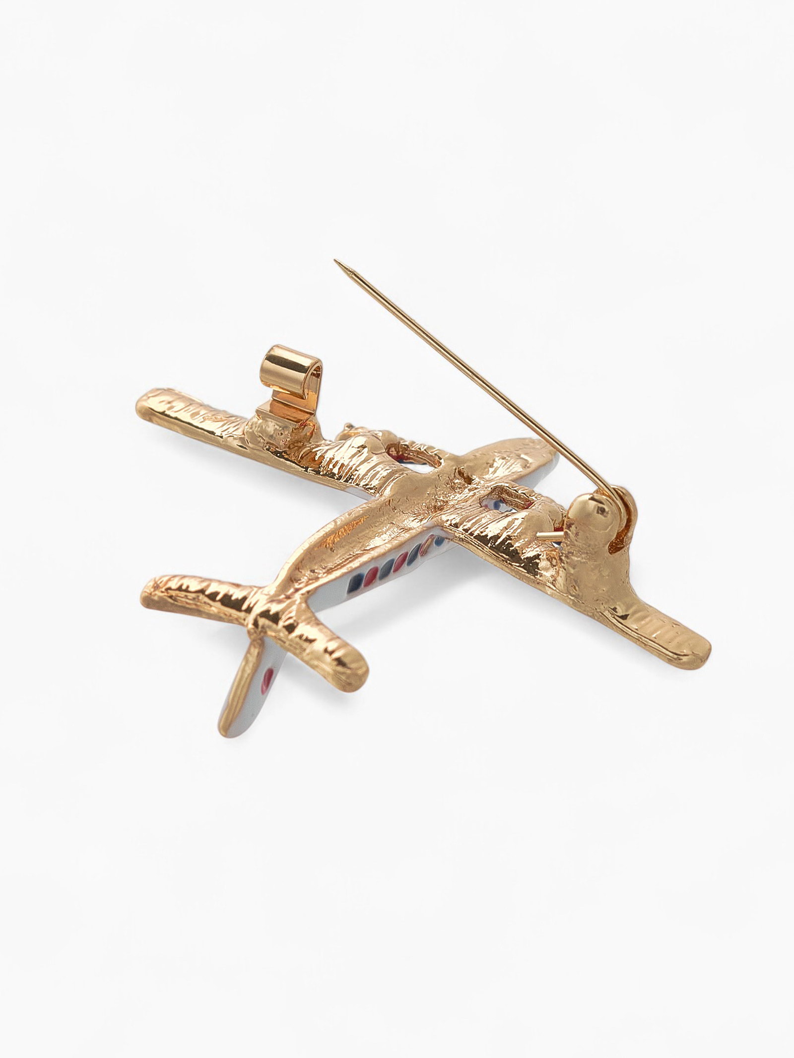 Брошь "Самолёт" лайнер, цветная в золоте, 5x4x1.5 см., QF, Китай