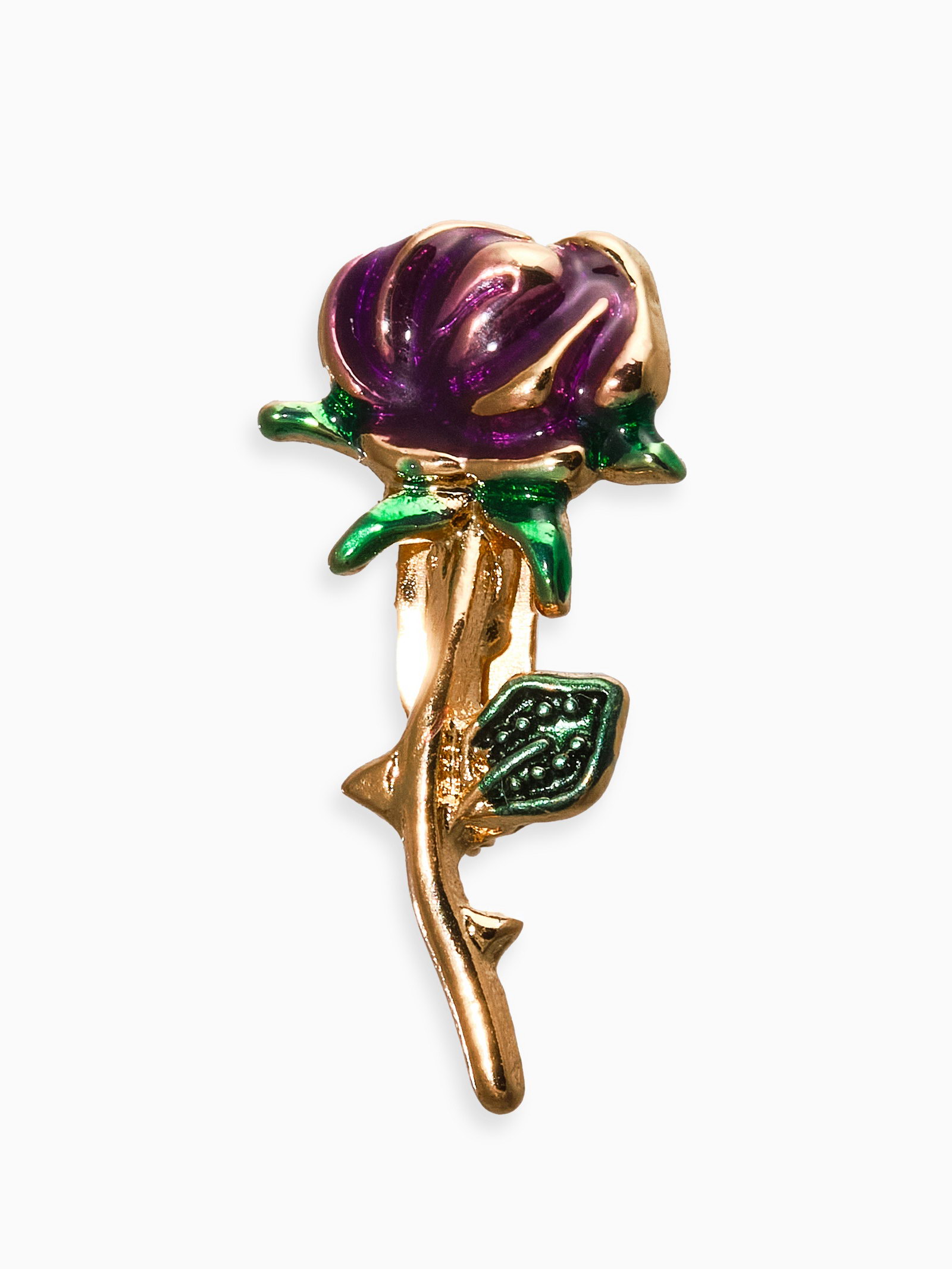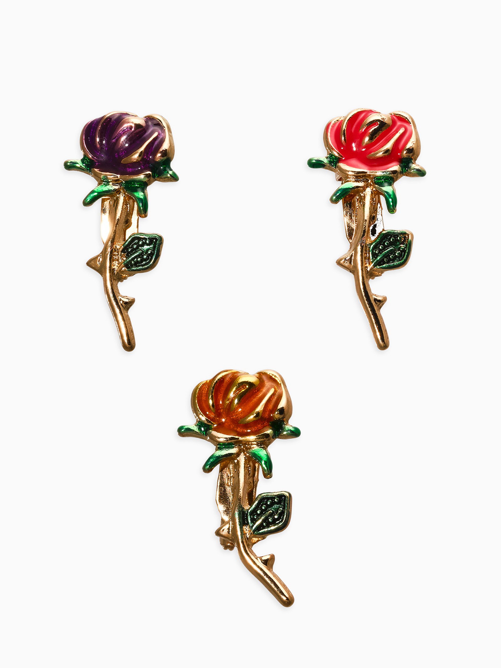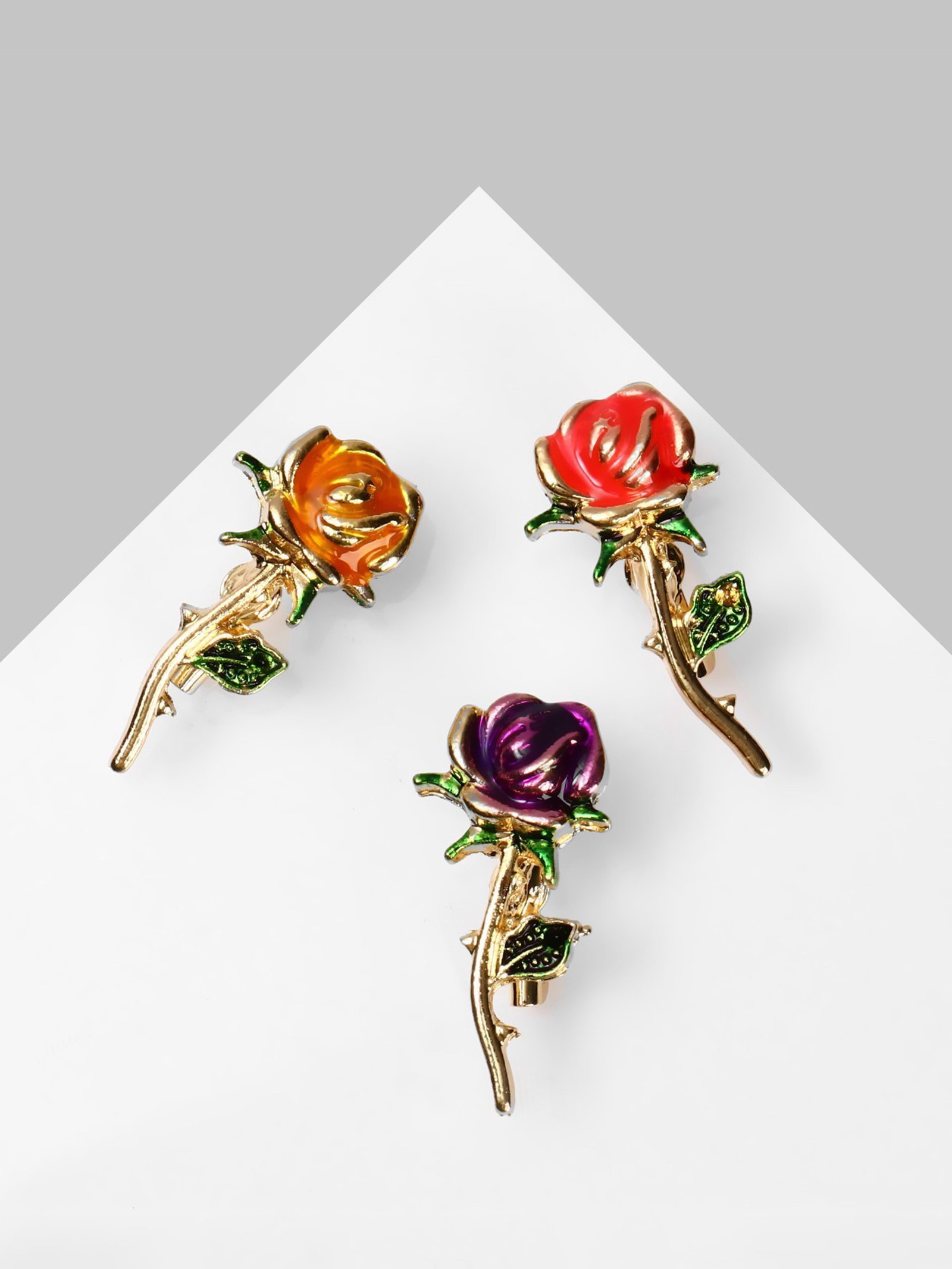Брошь "Роза" с листьями, цвет МИКС в золоте, 1.2x2.8x1 см., QF, Китай