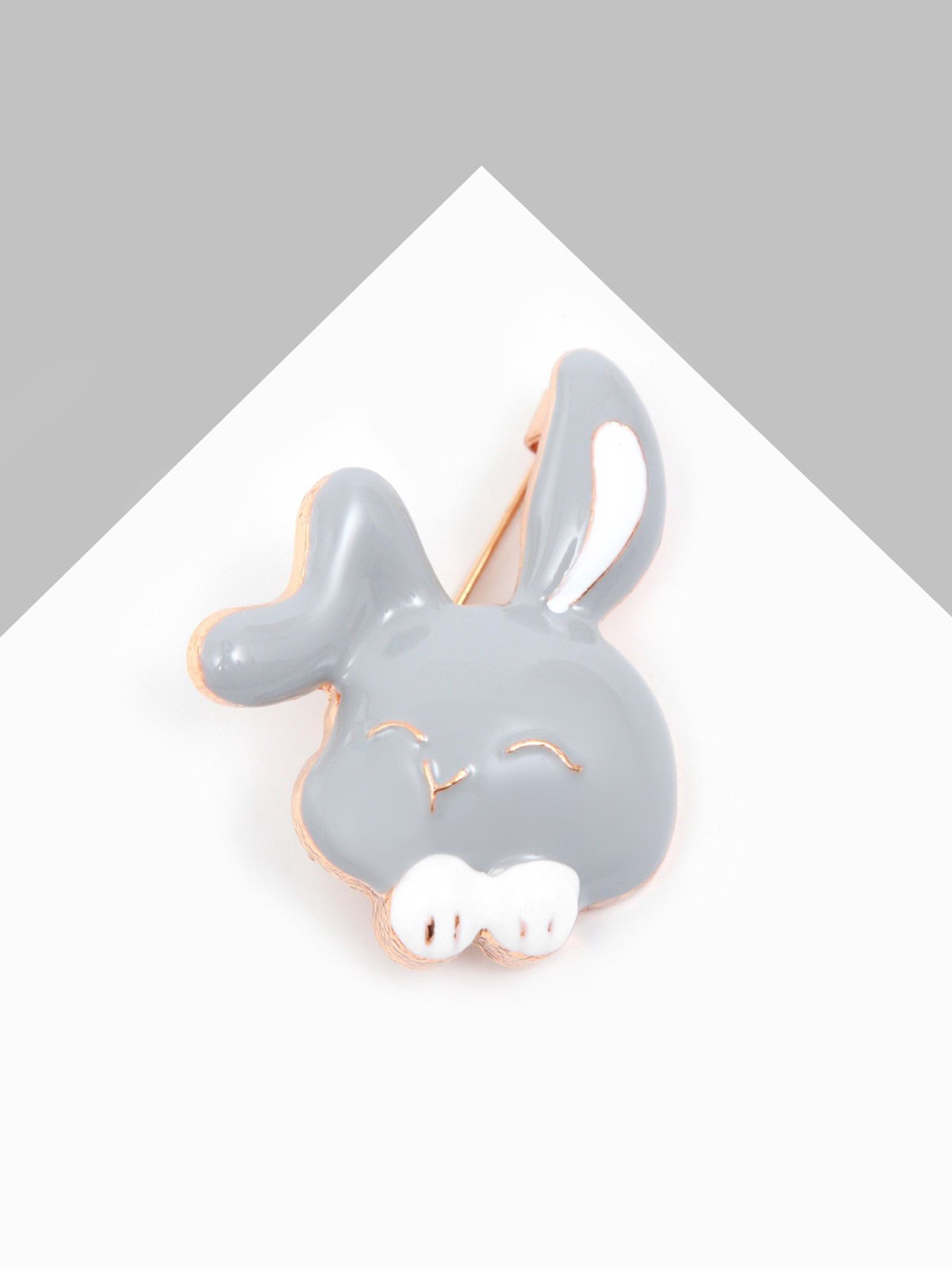 Брошь "Крольчонок" с лапками, цвет серо-белый в золоте, 3.6x3x1.4 см., QF, Китай