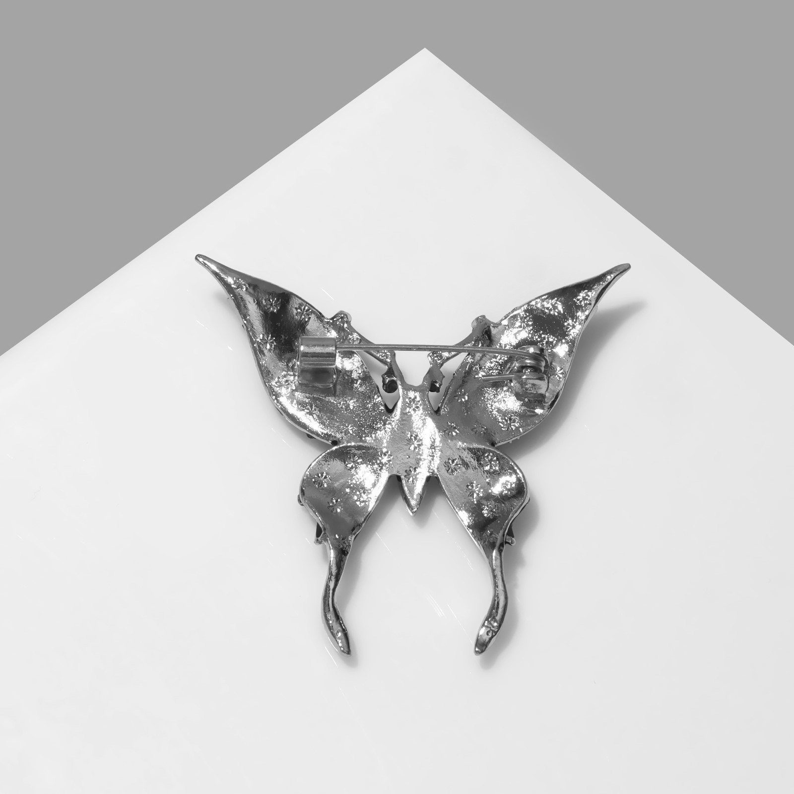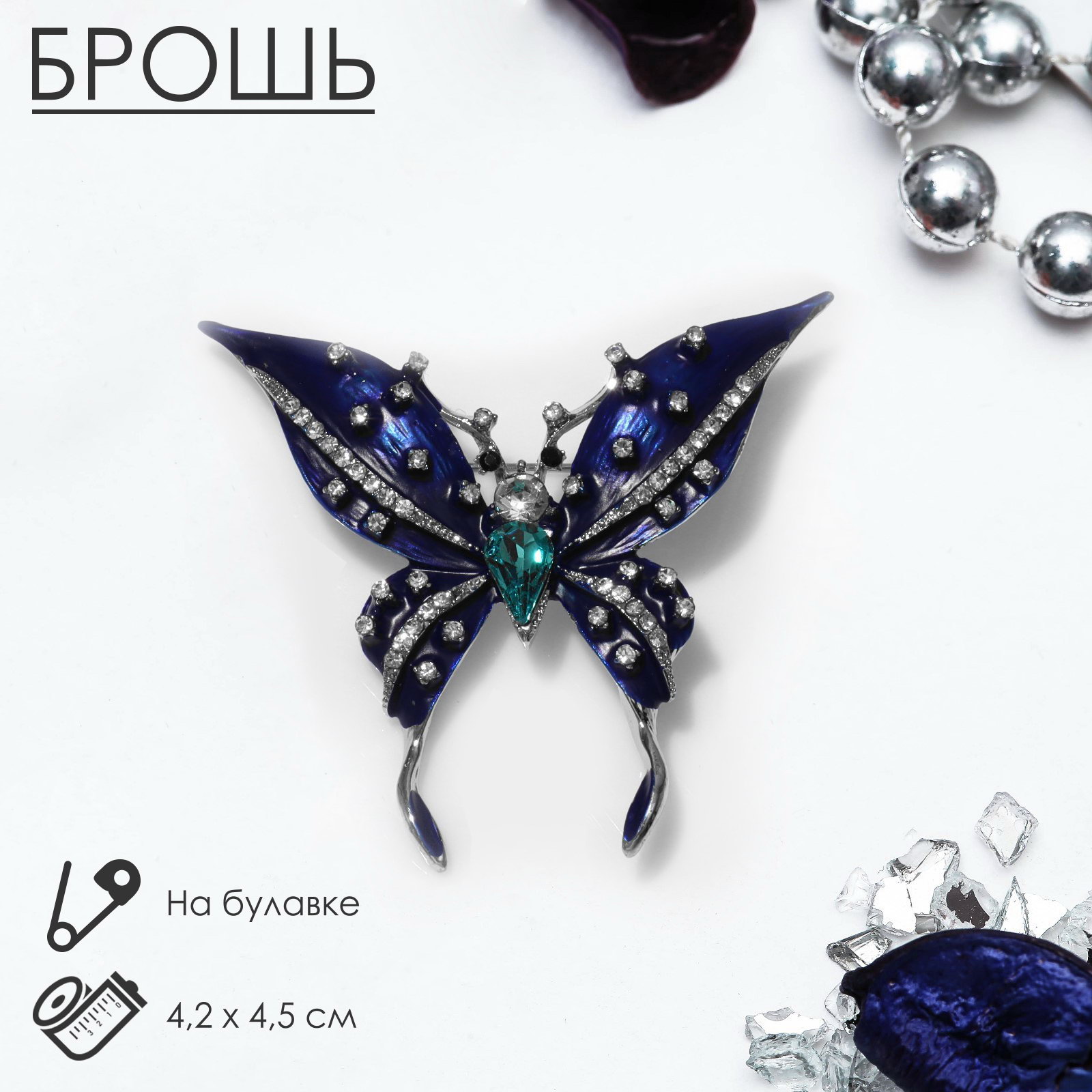Брошь "Бабочка" изящная, цвет тёмно-синий в серебре, 4.5x4.2x0.5 см., Queen fair, Китай