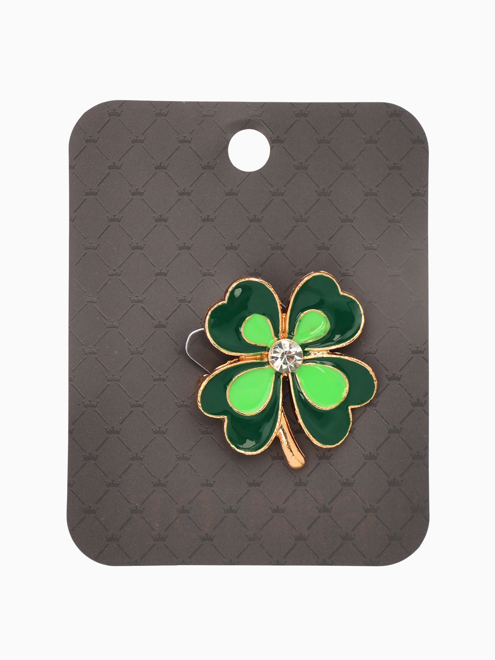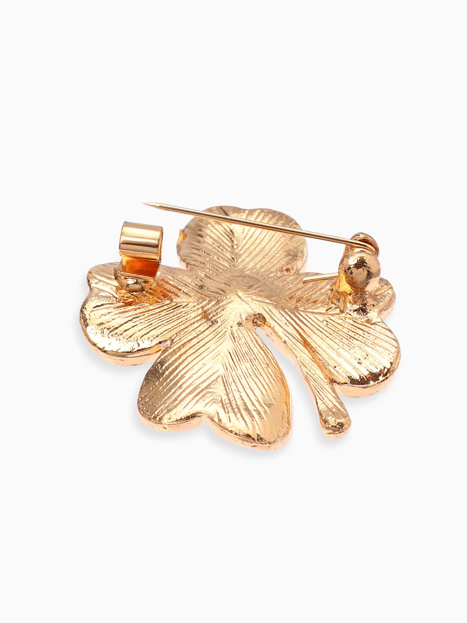 Брошь "Клевер", цвет бело-зелёный в золоте, 2.8x3x0.8 см., QF, Китай