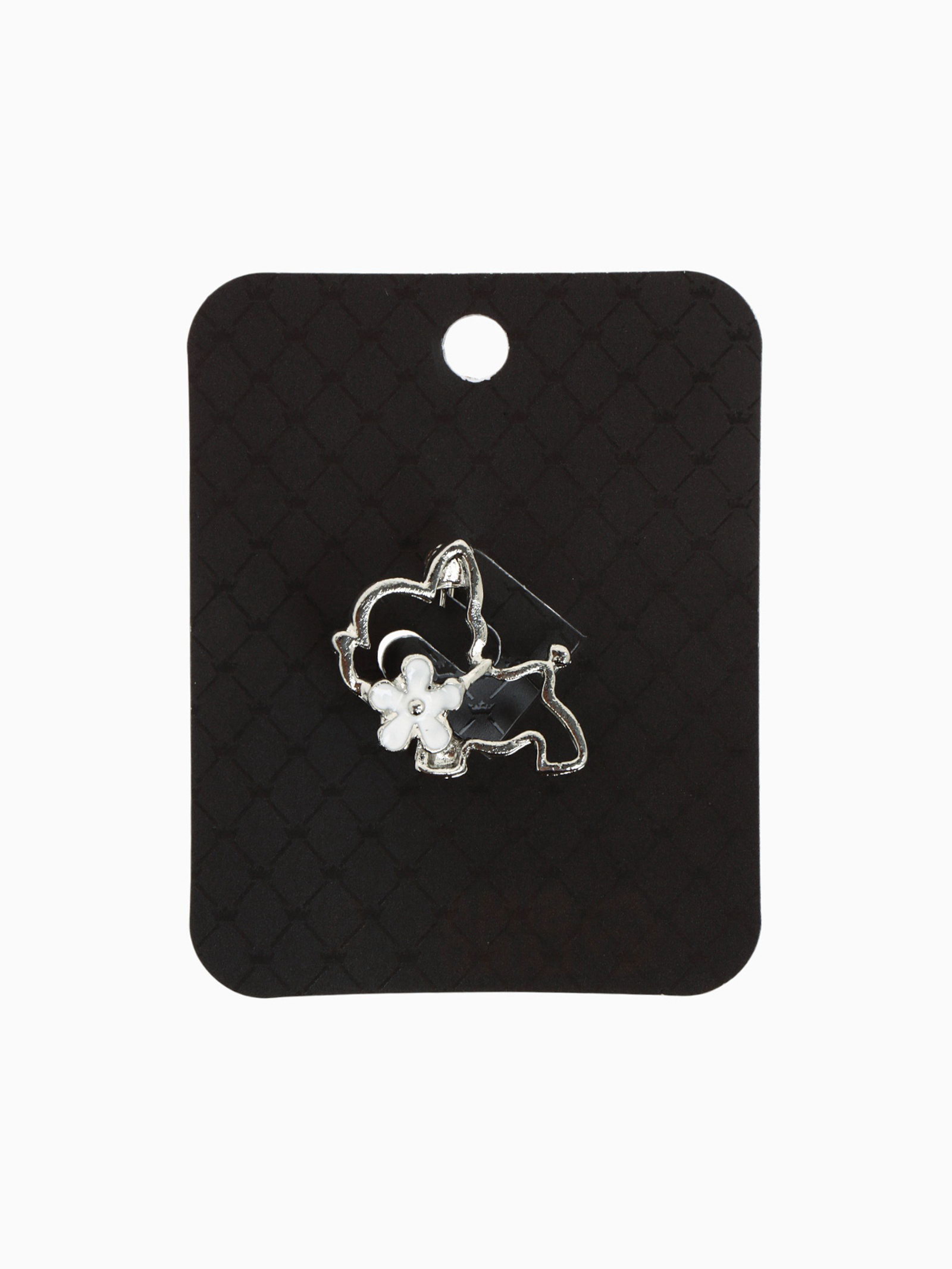 Брошь "Собачка" с цветочком, цвет белый в серебре, 2.8x2.3x0.6 см., QF, Китай