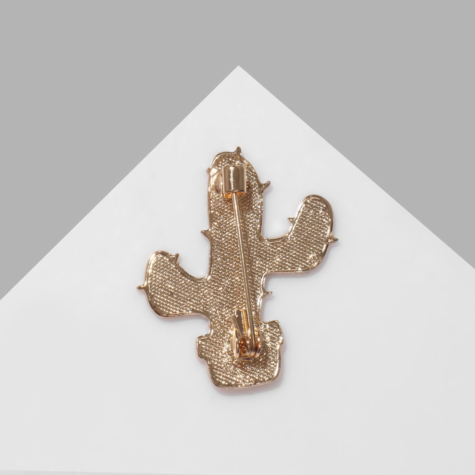 Брошь "Кактус" в горшке, цветная в золоте, 2.6x3.2x0.5 см., QF, Китай