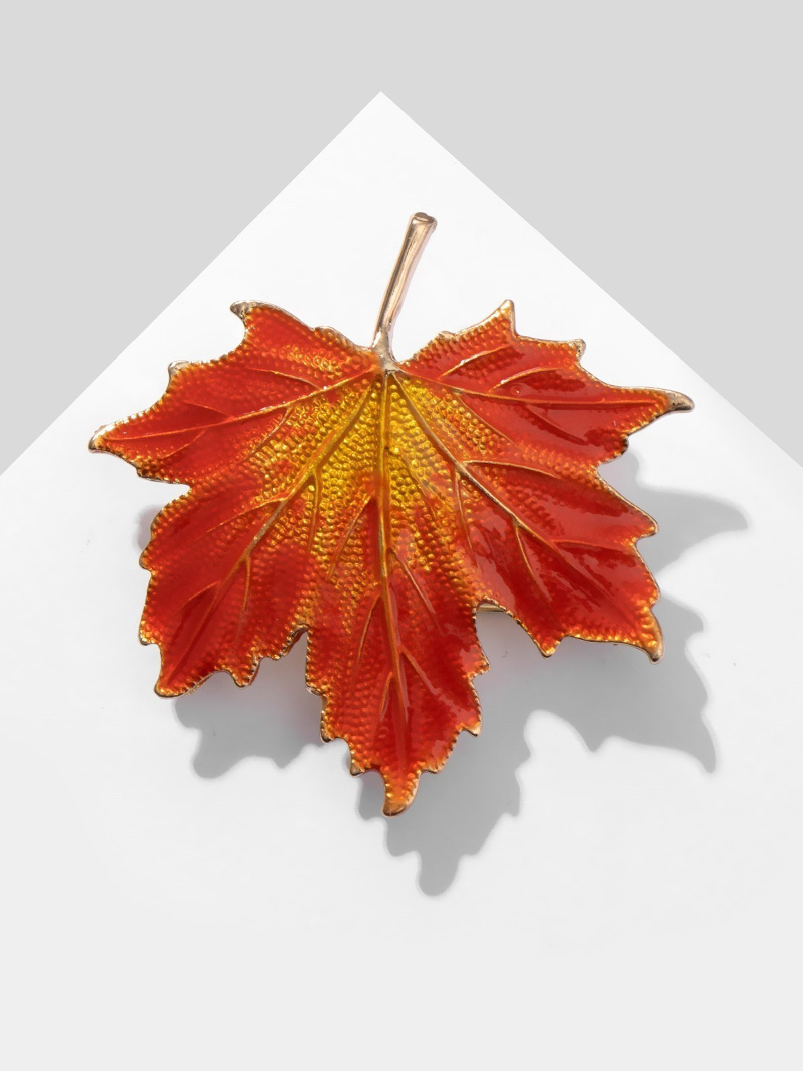 Брошь "Лист" осенняя пора, цвет оранжево-жёлтый в золоте, 5.2x5.5x0.8 см., QF, Китай