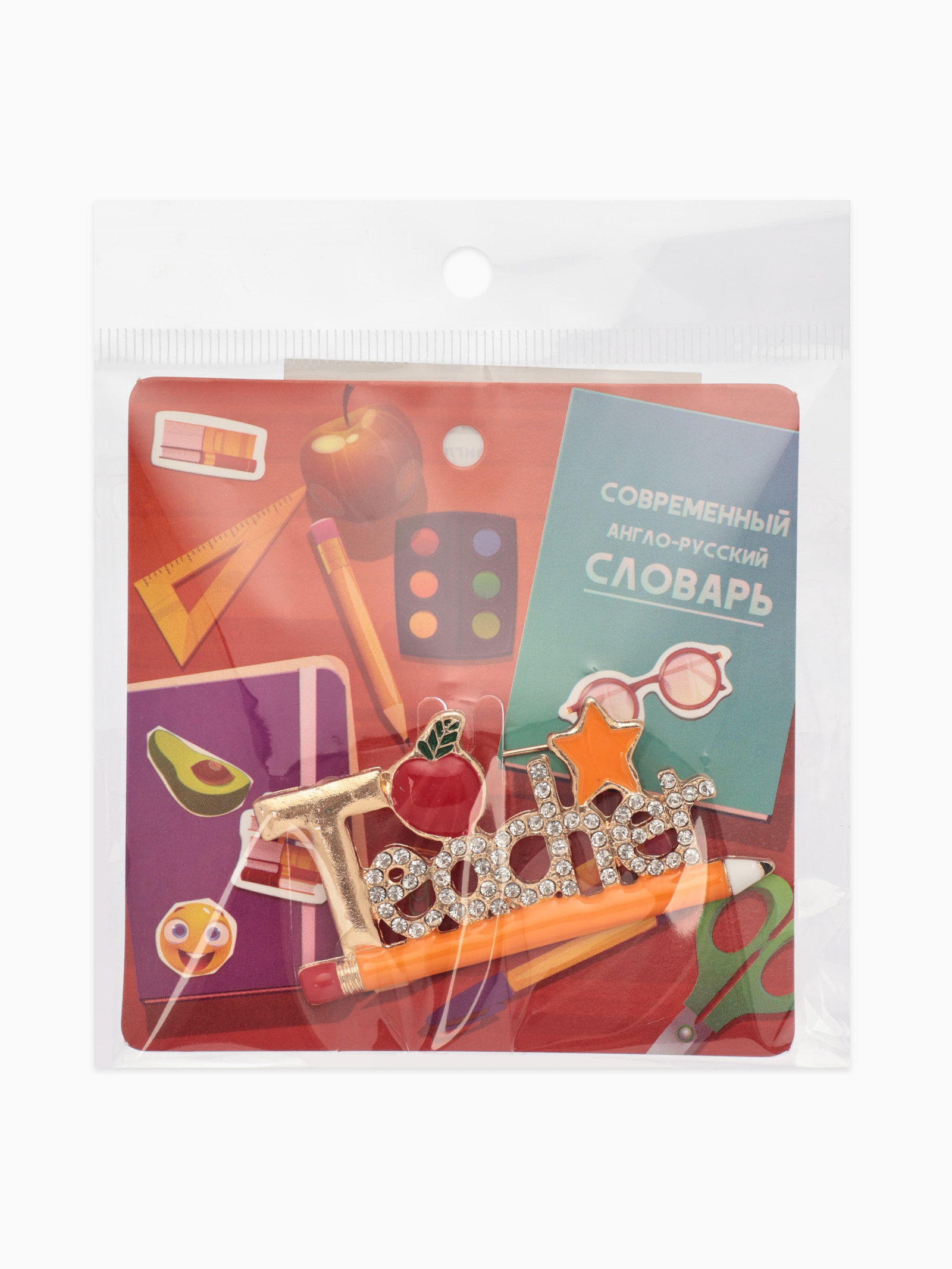 Брошь "Учитель" английского, цветная в золоте, 3.1x5.9x1 см., QF, Китай