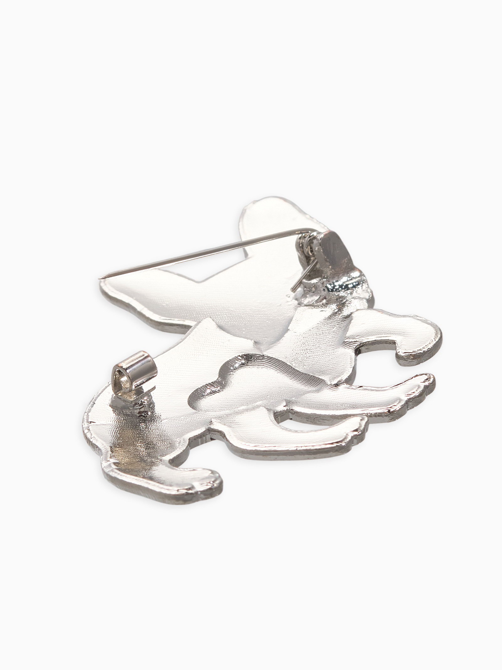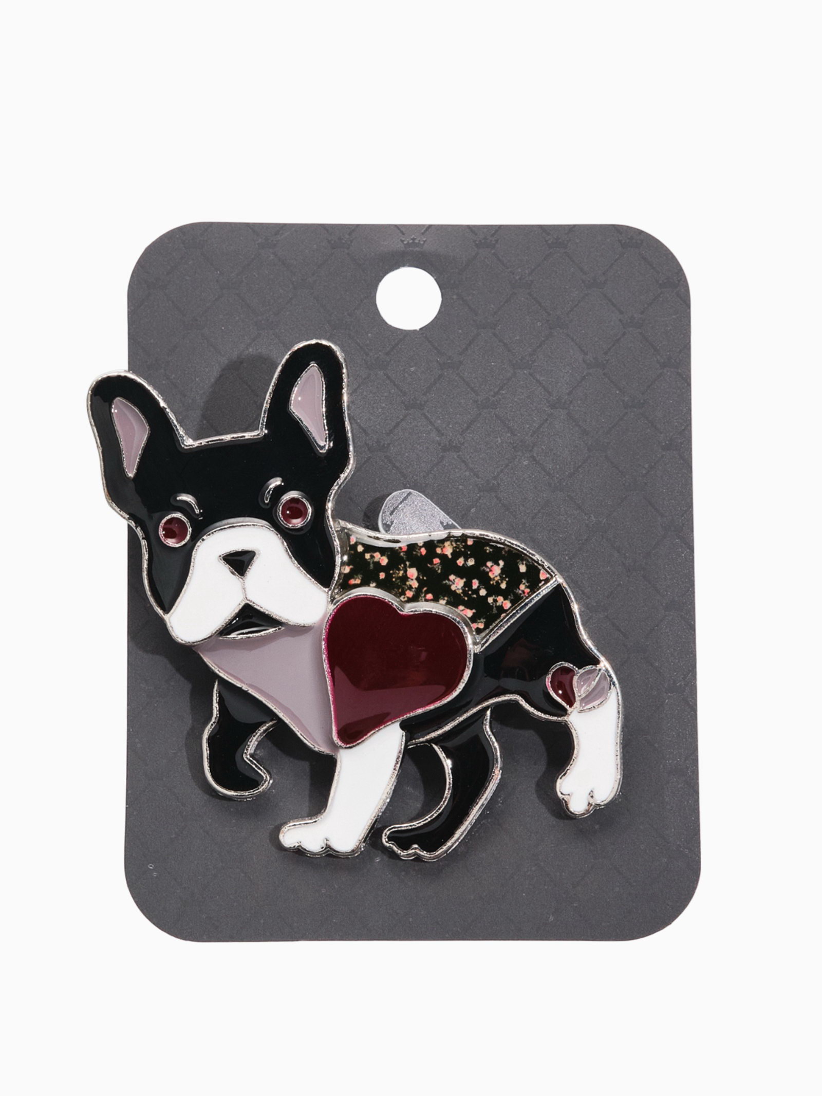 Брошь "Бульдог" французский с сердечком, цветная в серебре, 5x5x0.7 см., QF, Китай