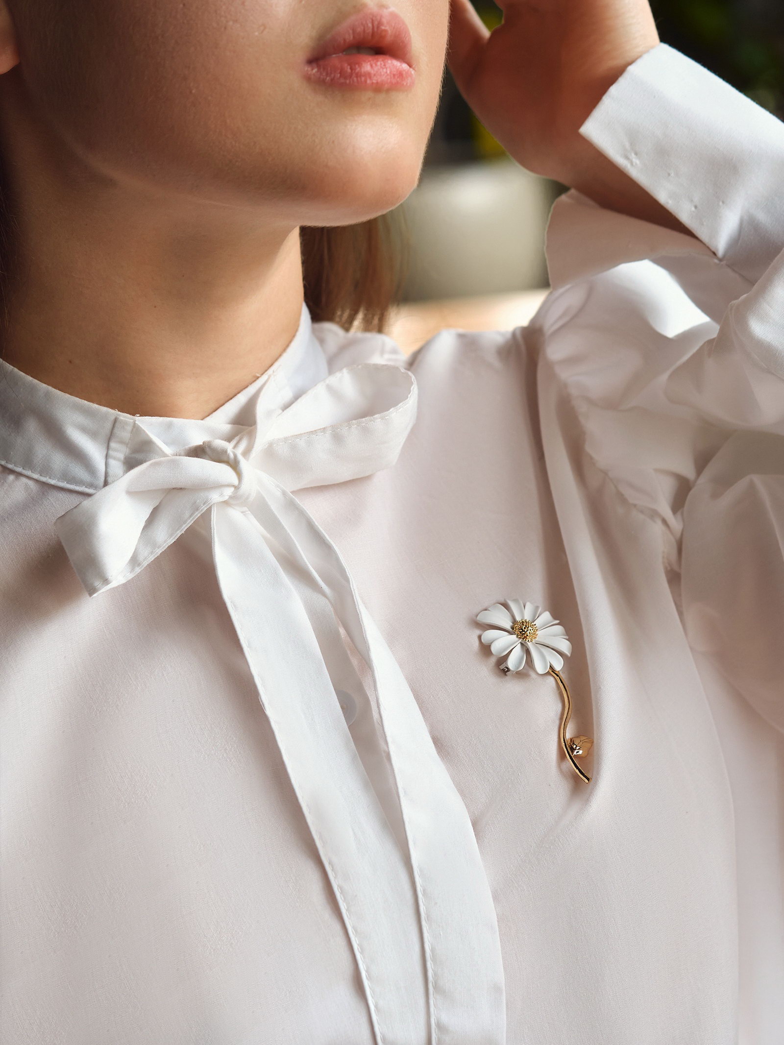 Брошь "Цветок" ромашка, цвет белый в золоте, 3.5x7.8x1.5 см., QF, Китай