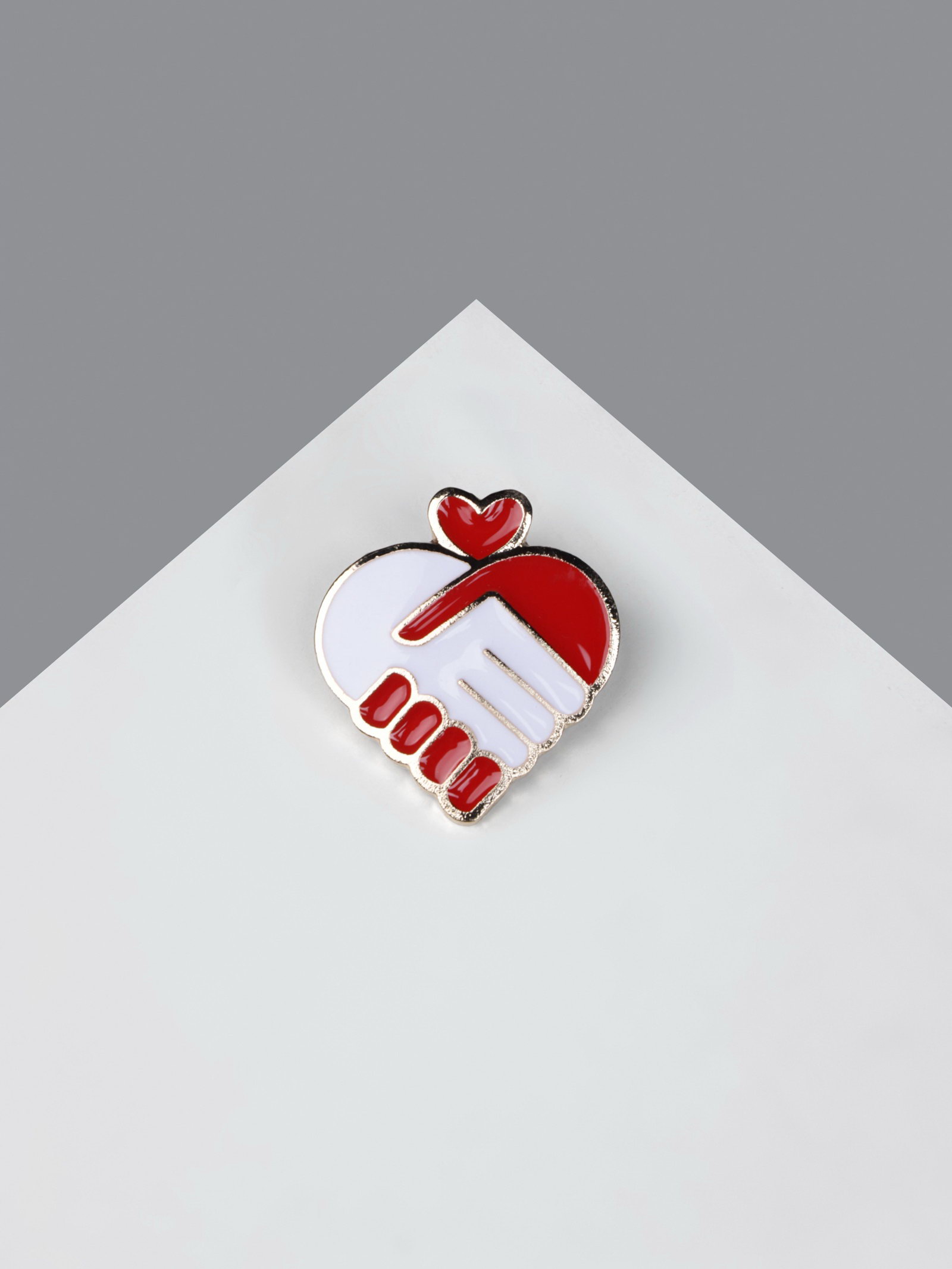 Брошь "Сердце" из рукопожатия, МИКС, 0.7x2.2x2.6 см., QF, Китай