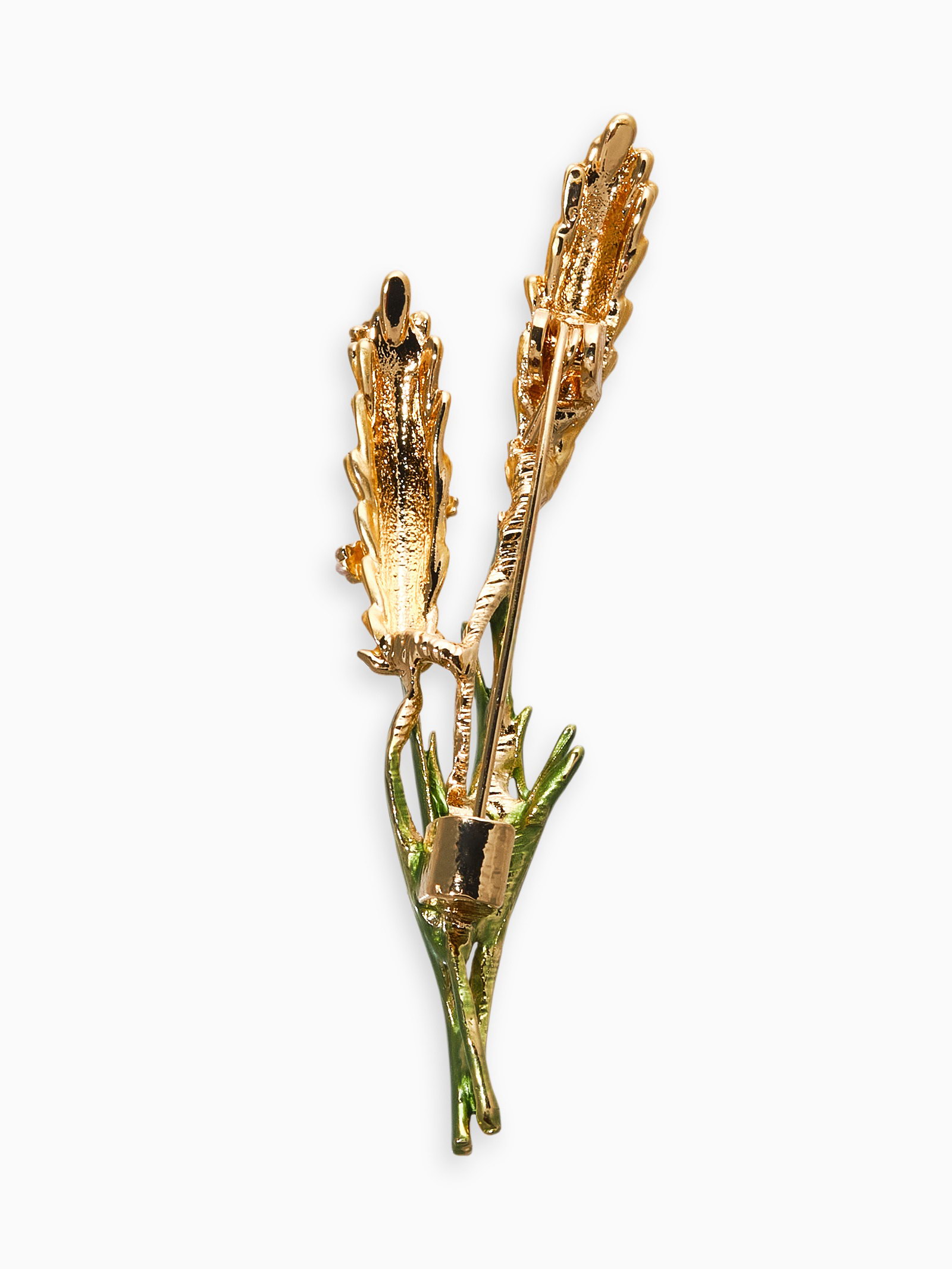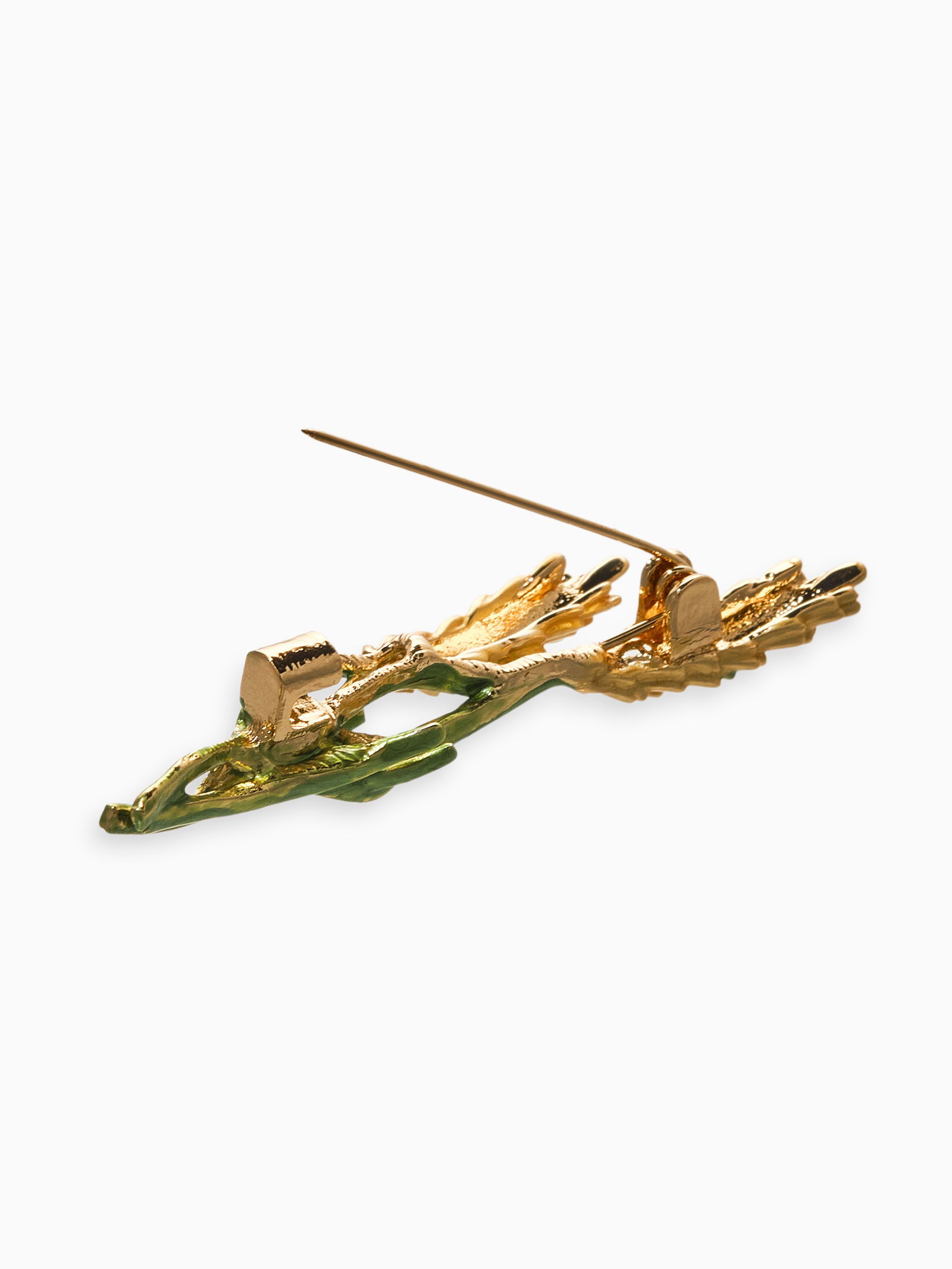 Брошь "Колосья", жёлто-зелёная в золоте, 1.5x6x1 см., QF, Китай