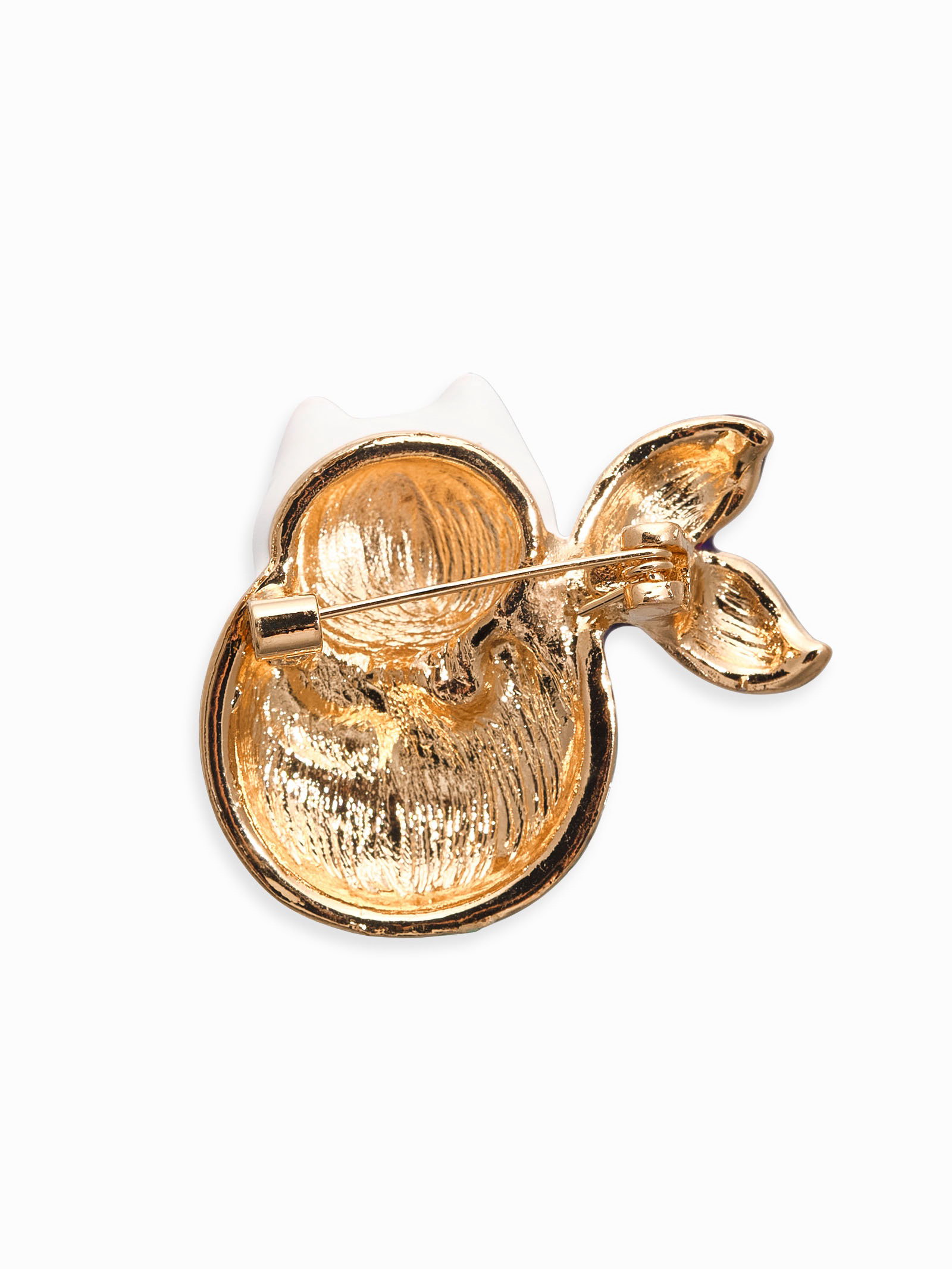 Брошь "Кошечка русалка", цветная в золоте, 3.5x3.2x2 см., QF, Китай