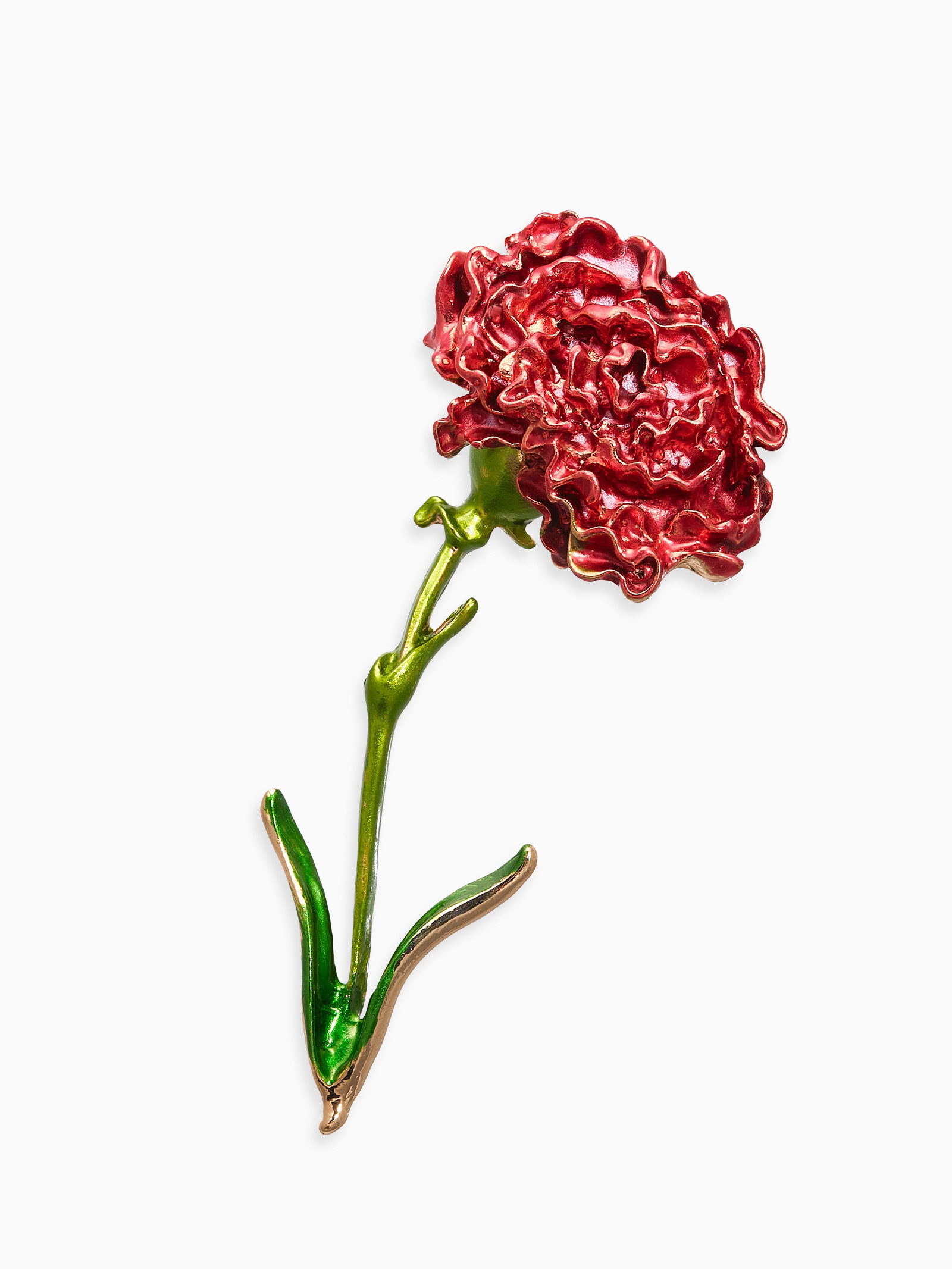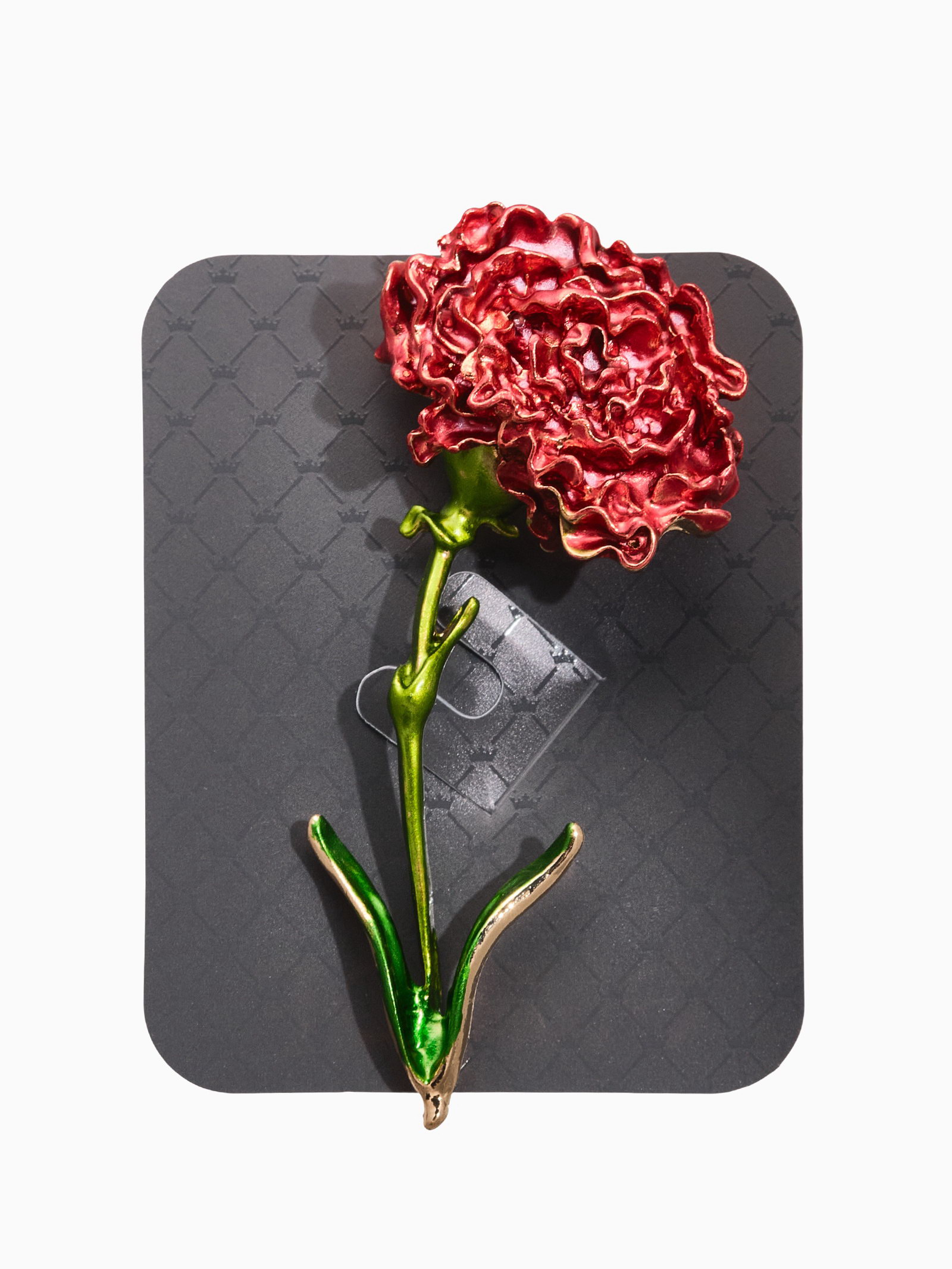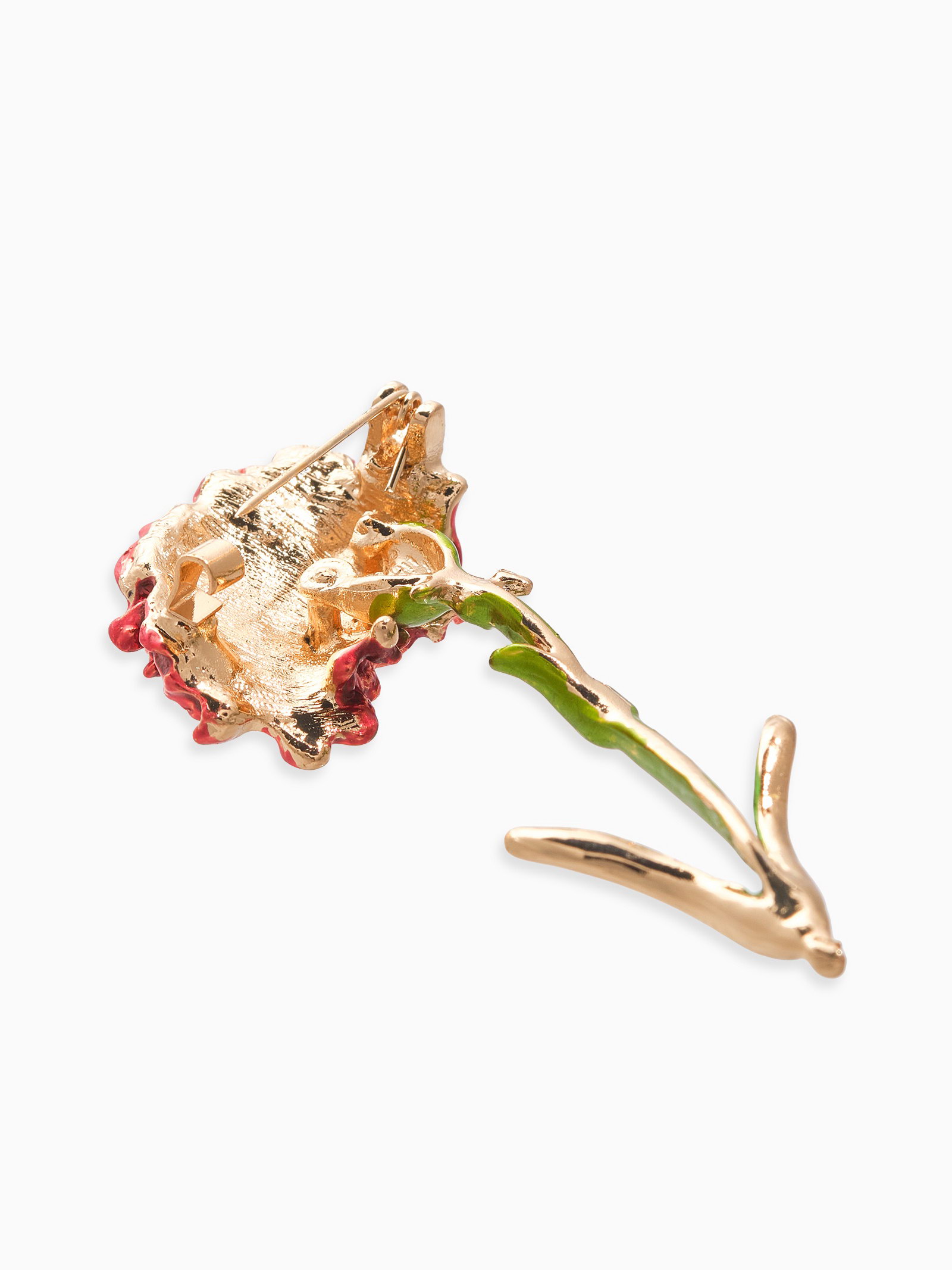 Брошь "Цветок гвоздики", красно-зелёная в золоте, 2.2x5.7x1.4 см., QF, Китай
