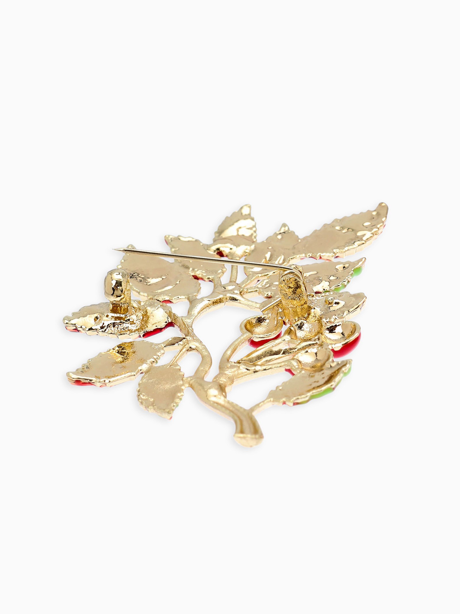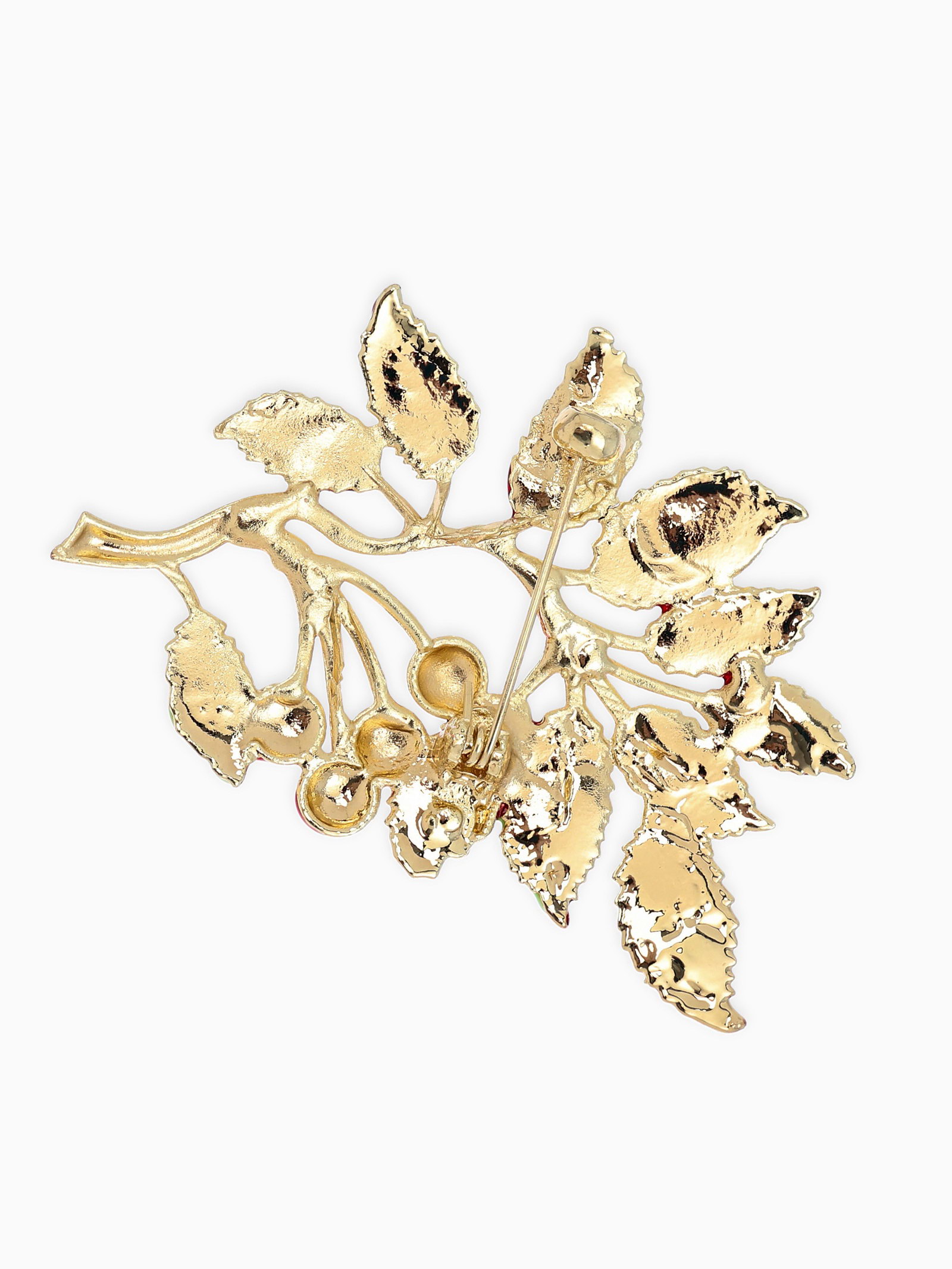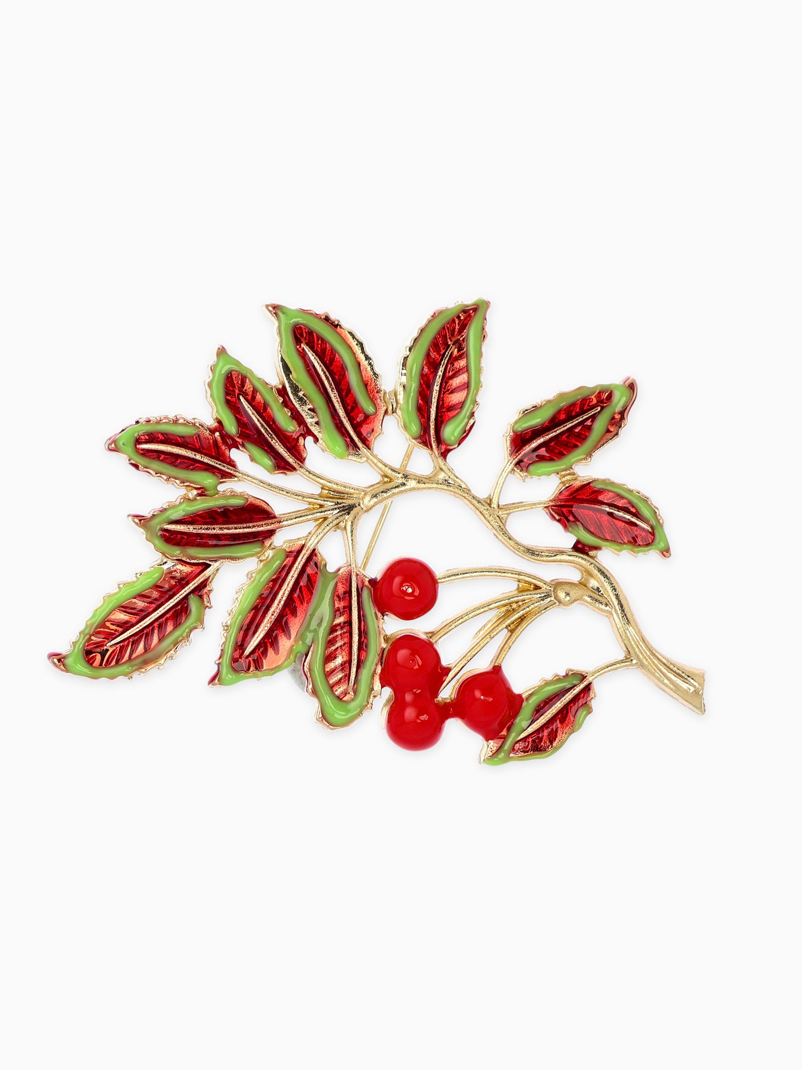 Брошь "Веточка Калины", красно-коричневая в золоте, 4x6x0.5 см., QF, Китай