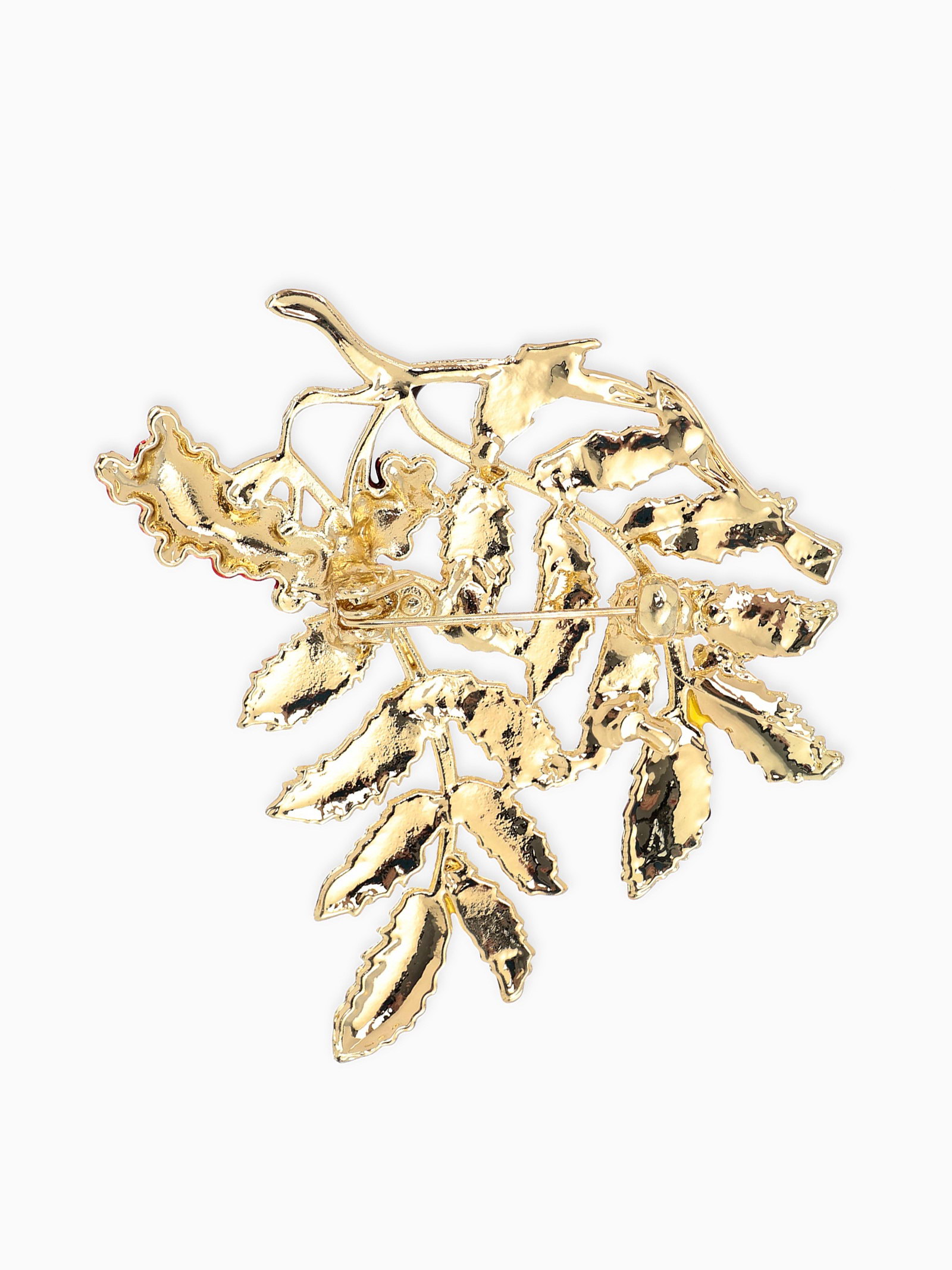 Брошь "Ветка Рябины", красно-зелёная в золоте, 4.5x6x0.5 см., QF, Китай
