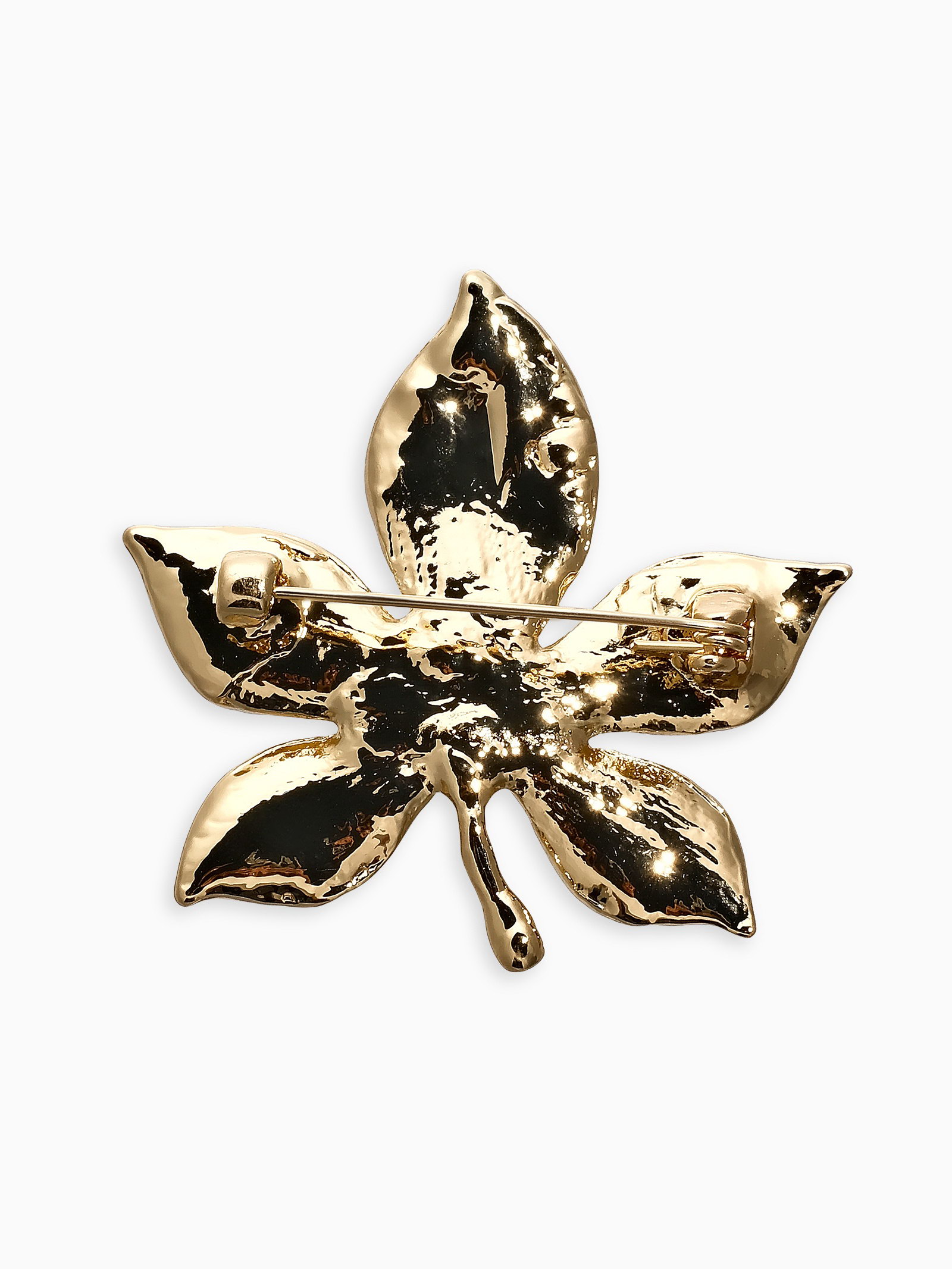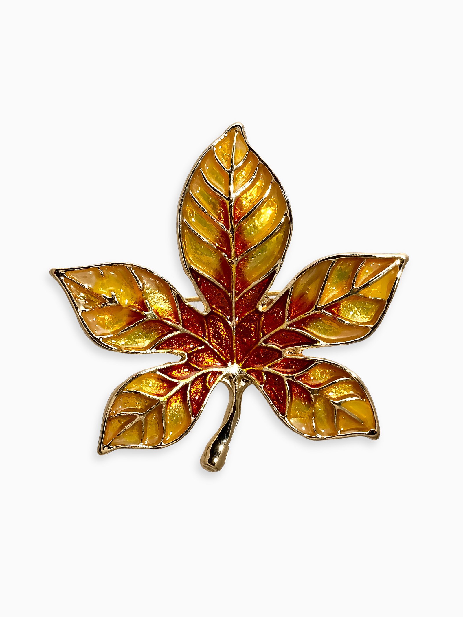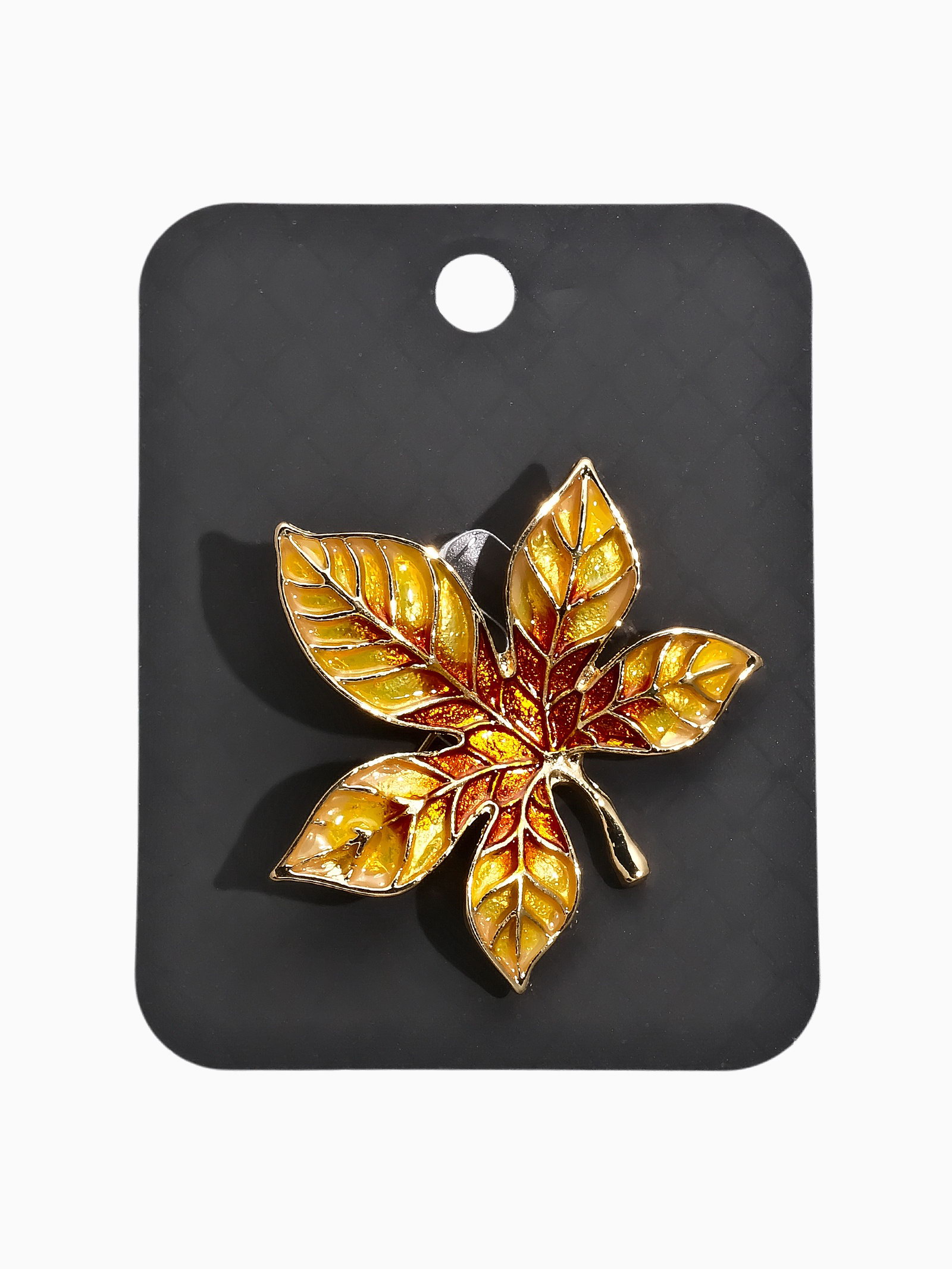 Брошь "Лист Клёна", жёлто-коричневая в золоте, 4.5x4.5x0.5 см., QF, Китай