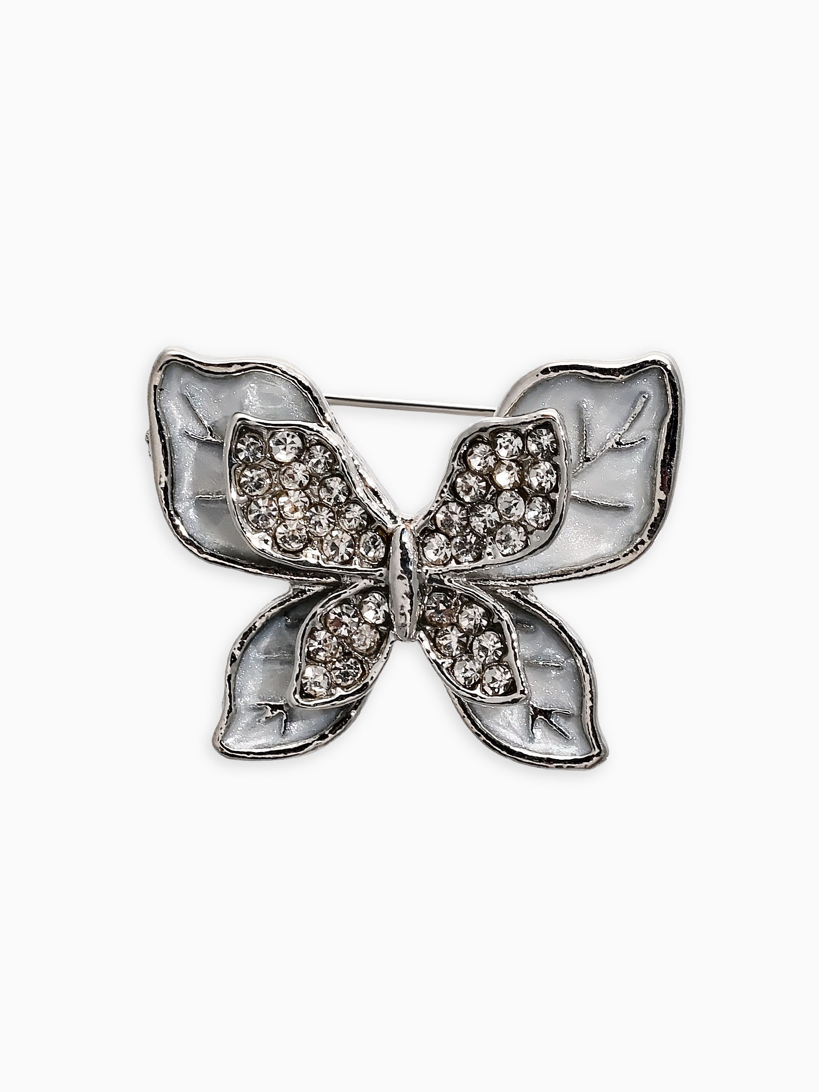 Брошь маленькая перламутровая "Бабочка", белая в серебре, 3x2x1.5 см., QF, Китай
