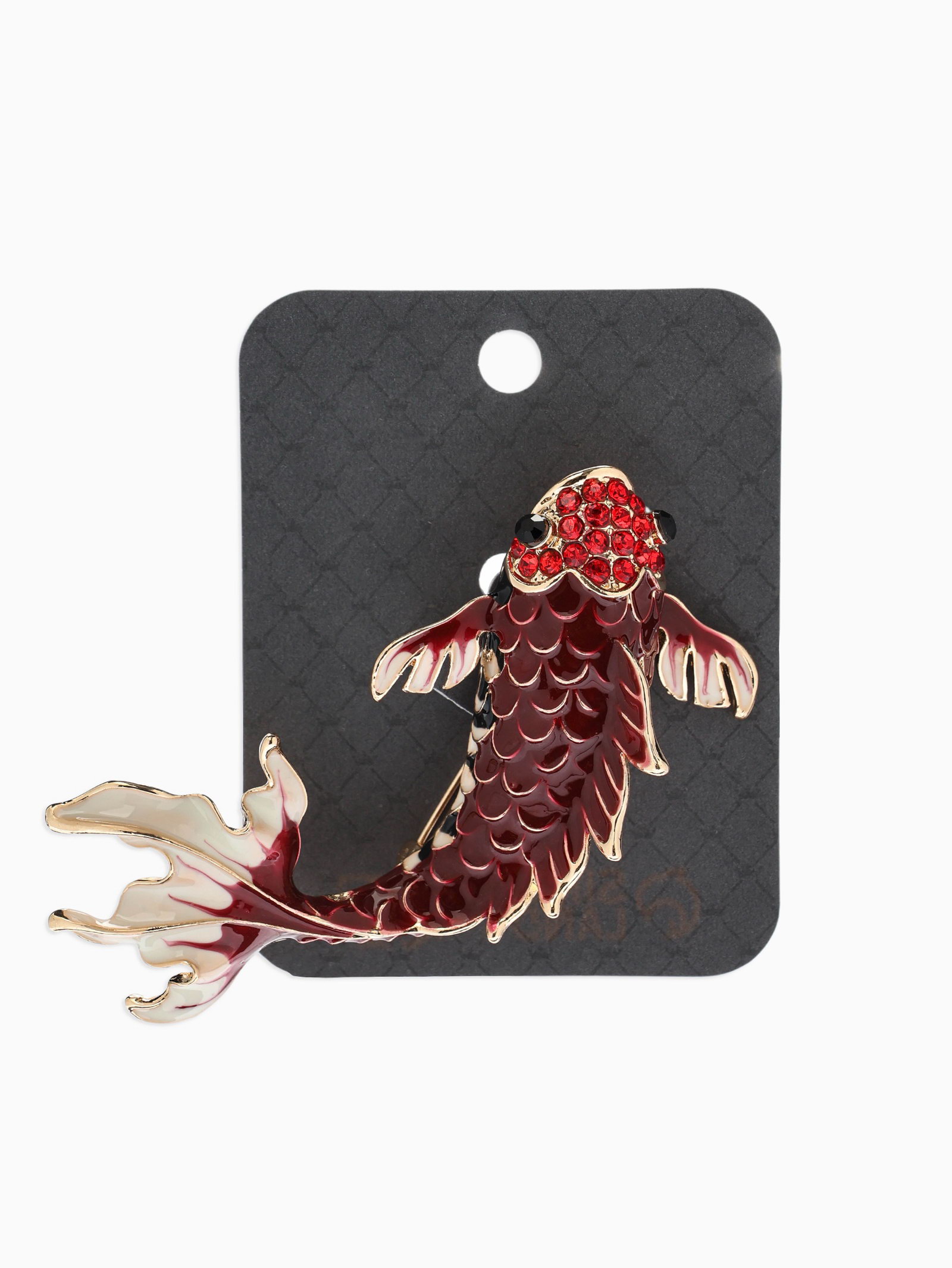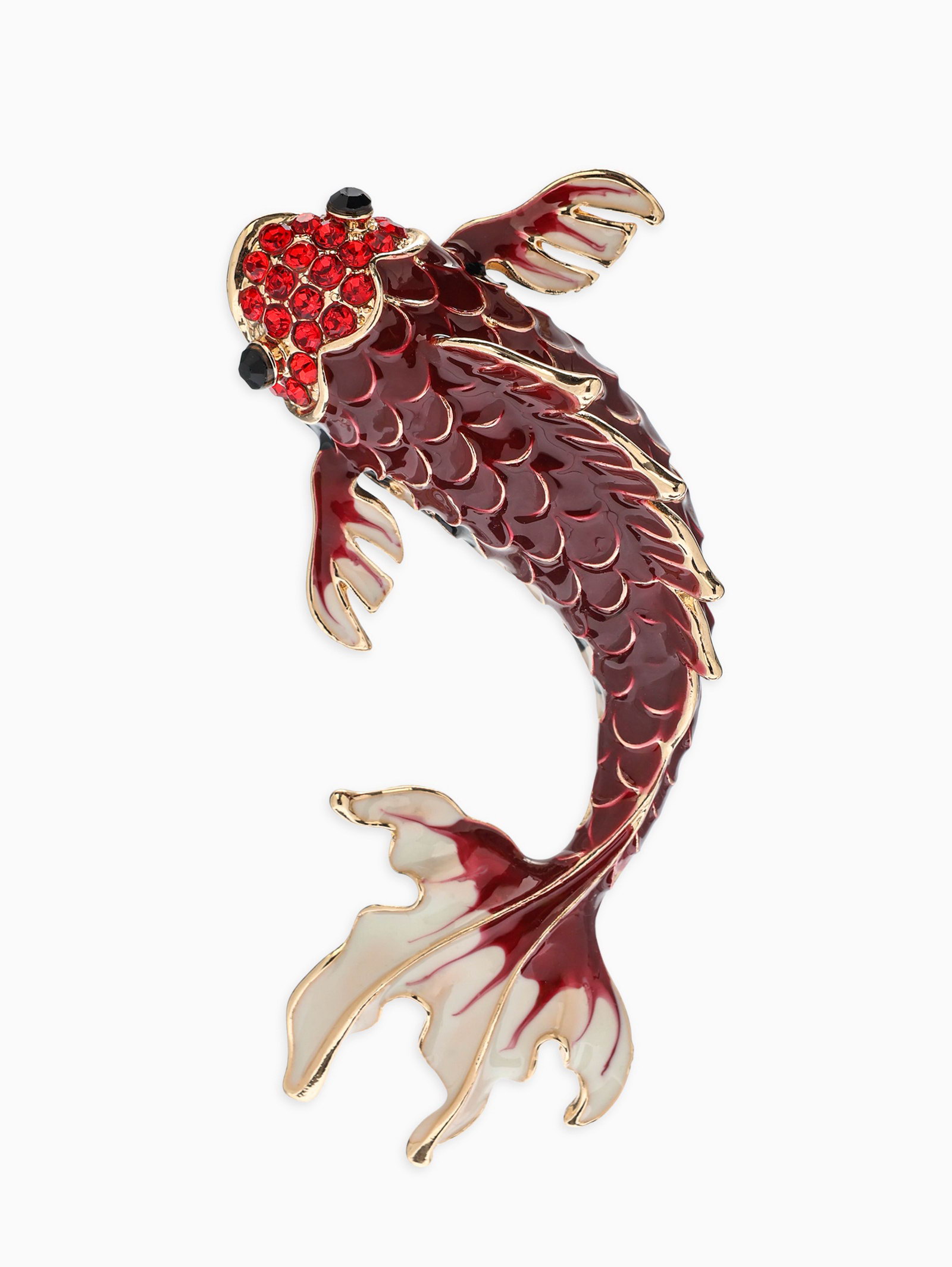 Брошь "Рыба карп", бордовая в золоте, 7x6x2.5 см., QF, Китай