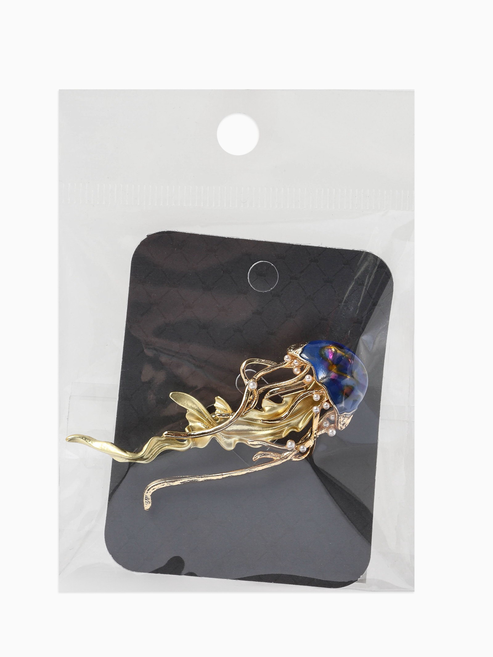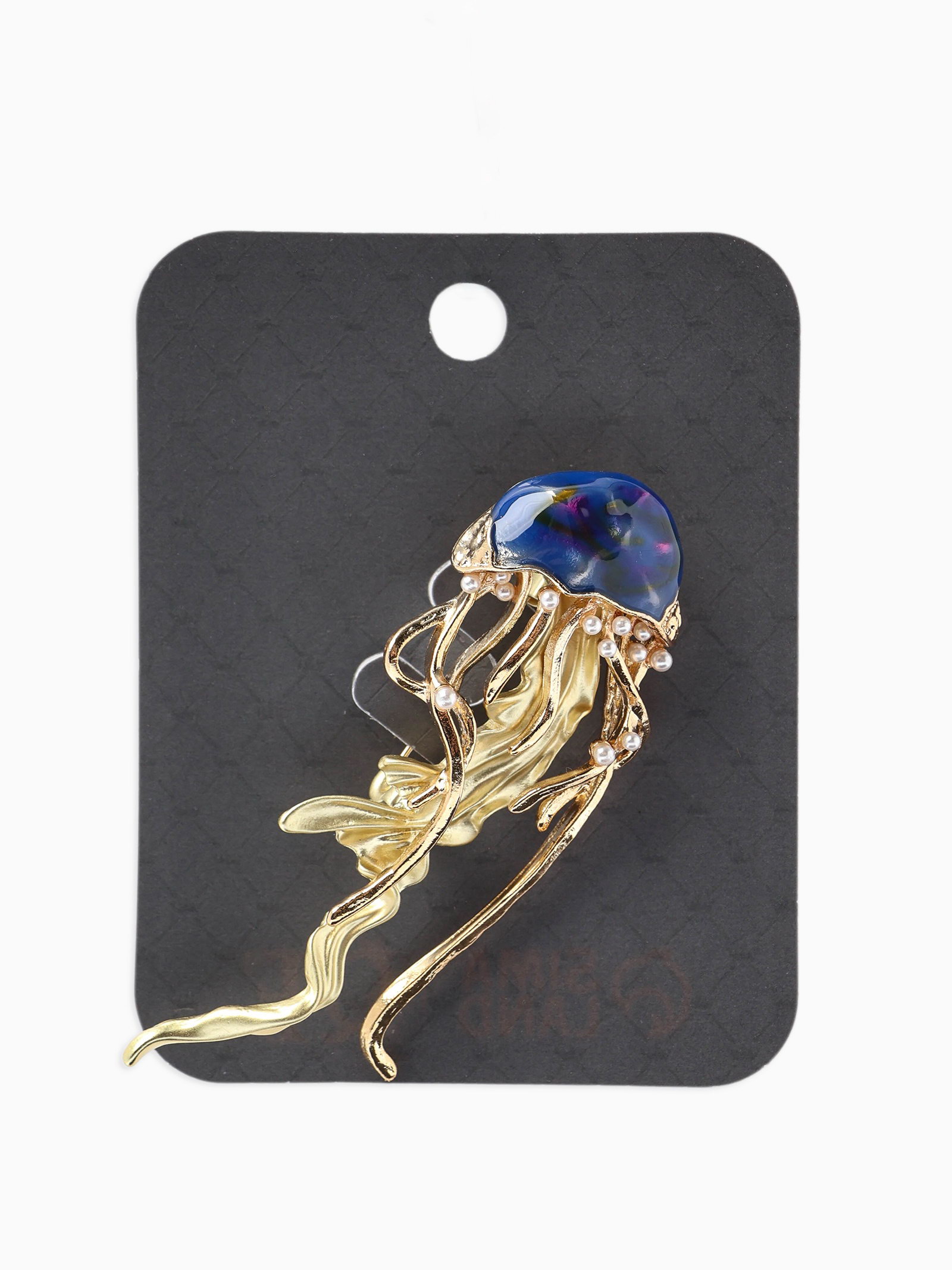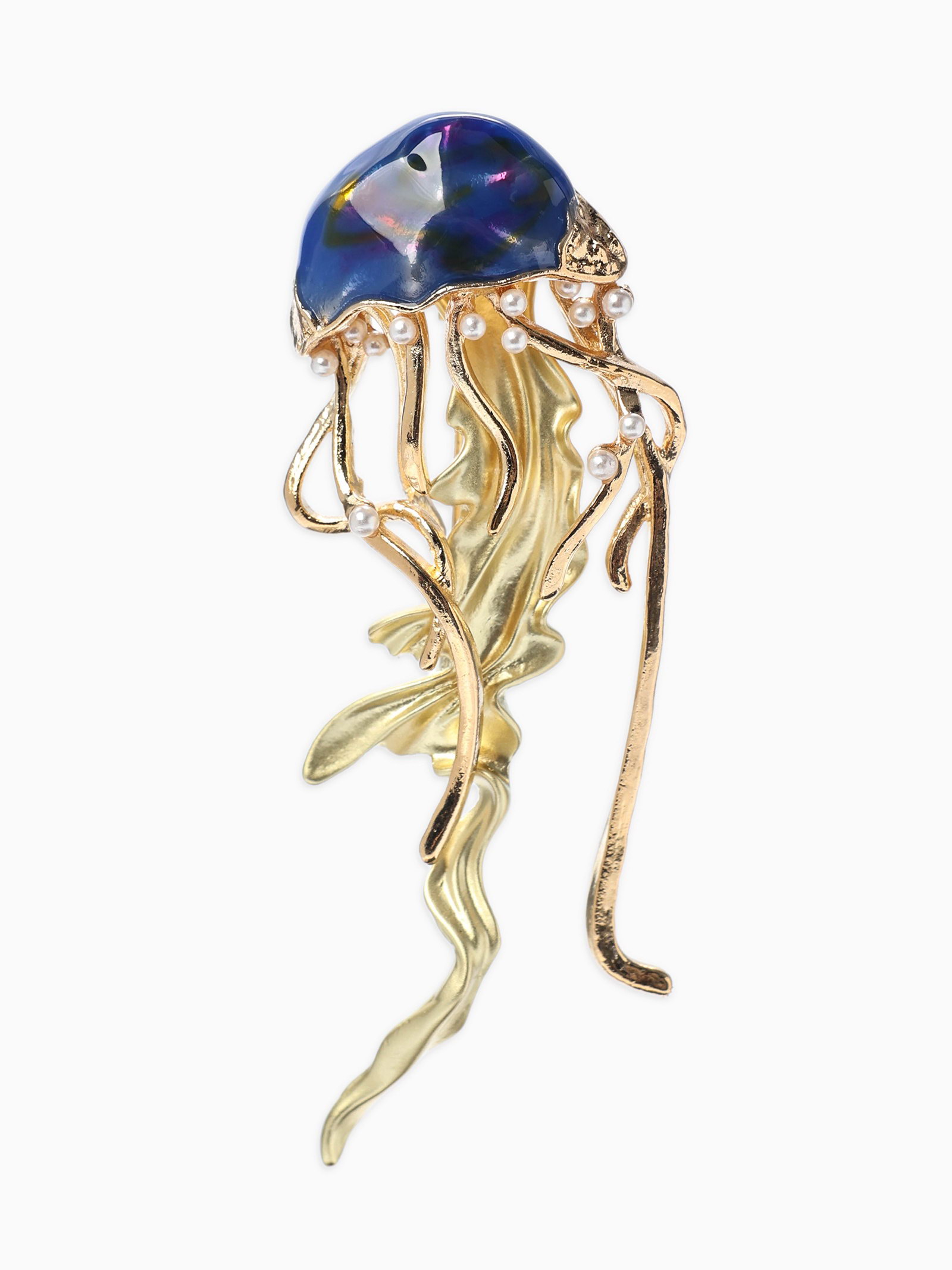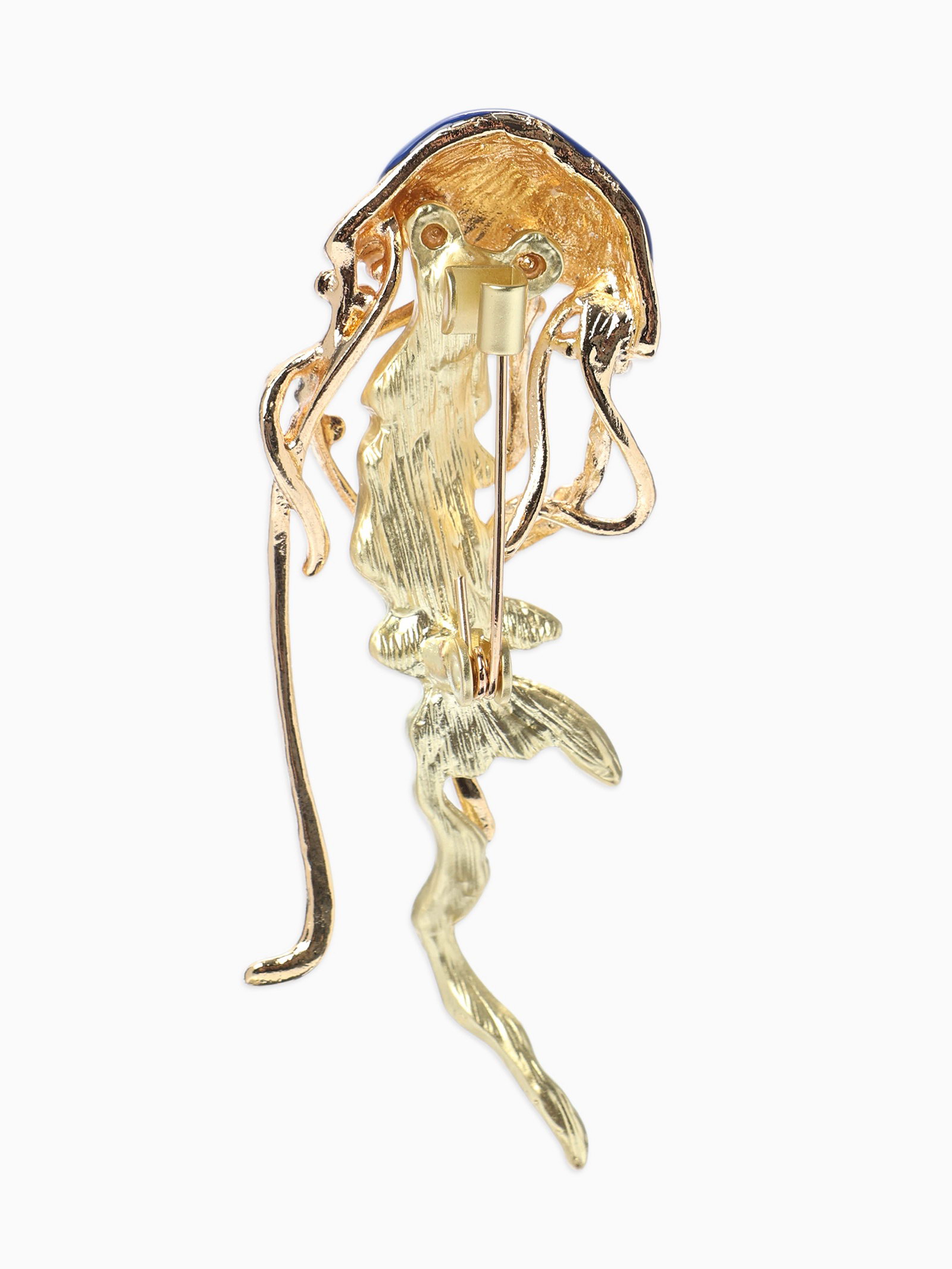 Брошь "Медуза морская", синяя в золоте, 2.3x6.5x1.5 см., QF, Китай