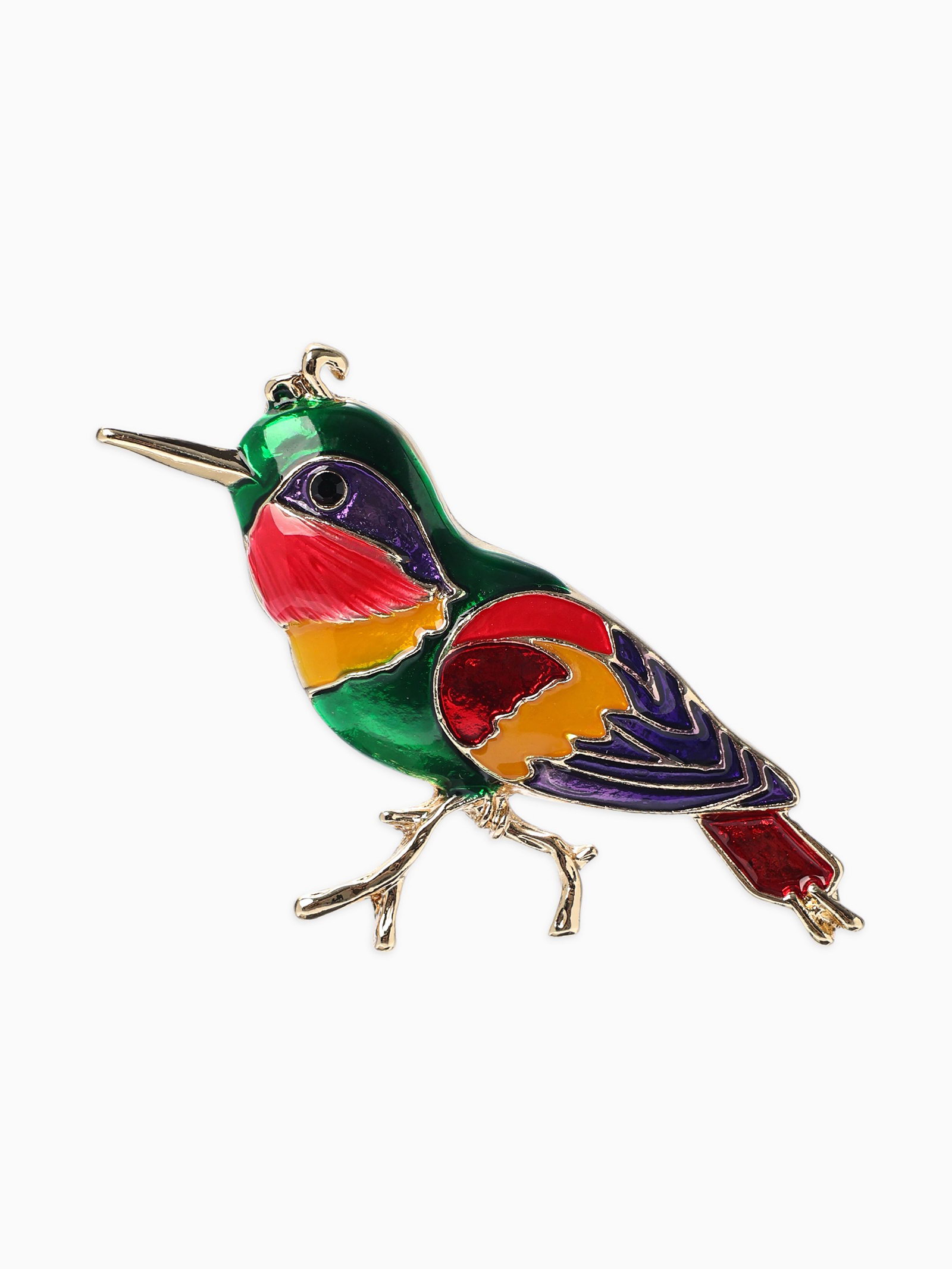 Брошь "Птица Синица", разноцветная в золоте, 4x4x0.8 см., QF, Китай
