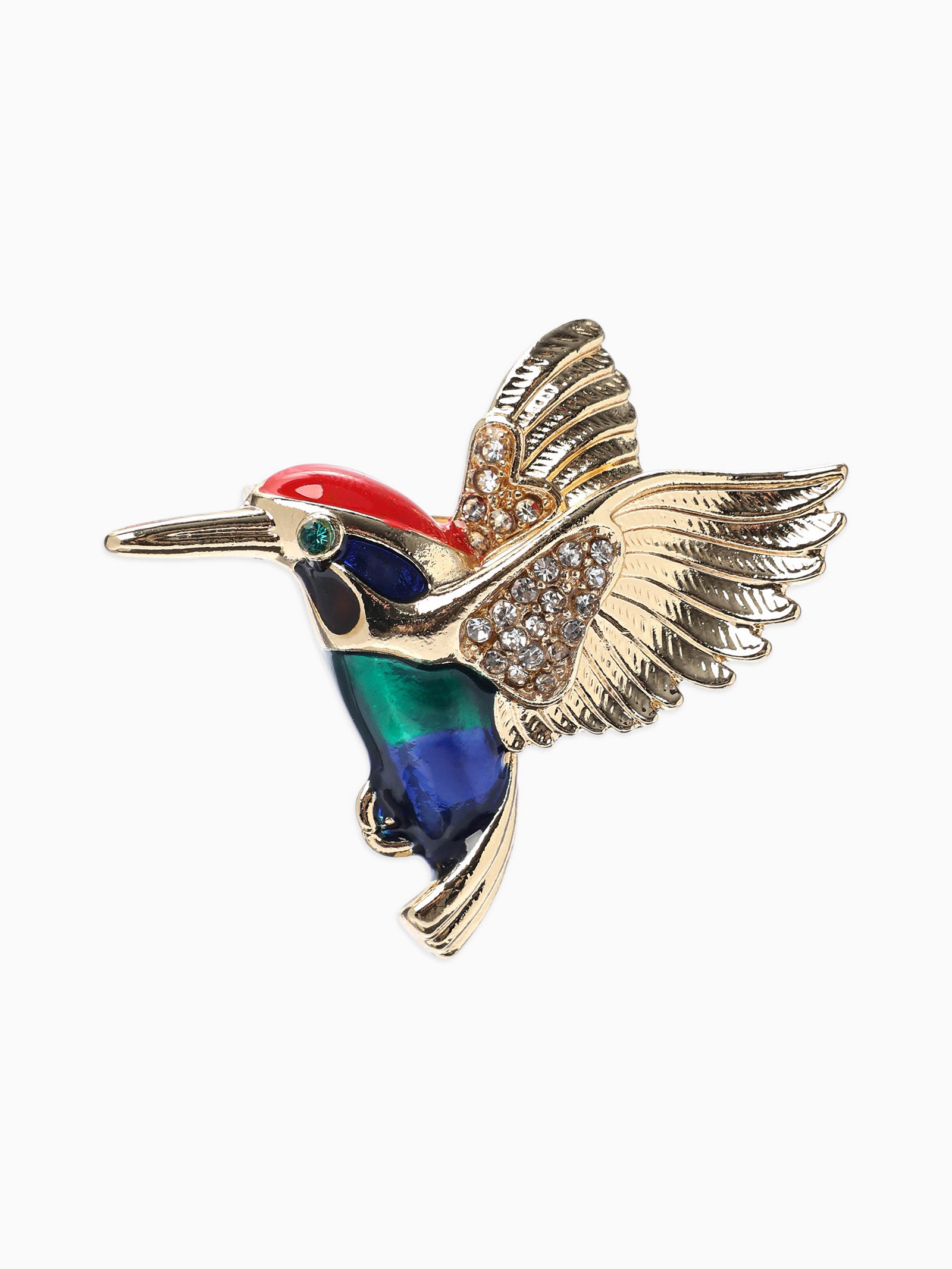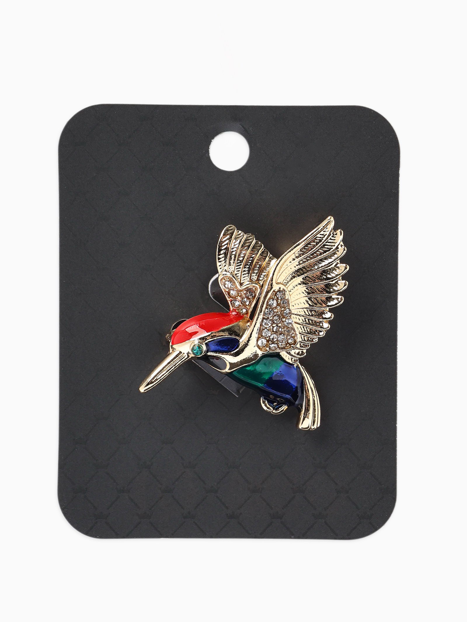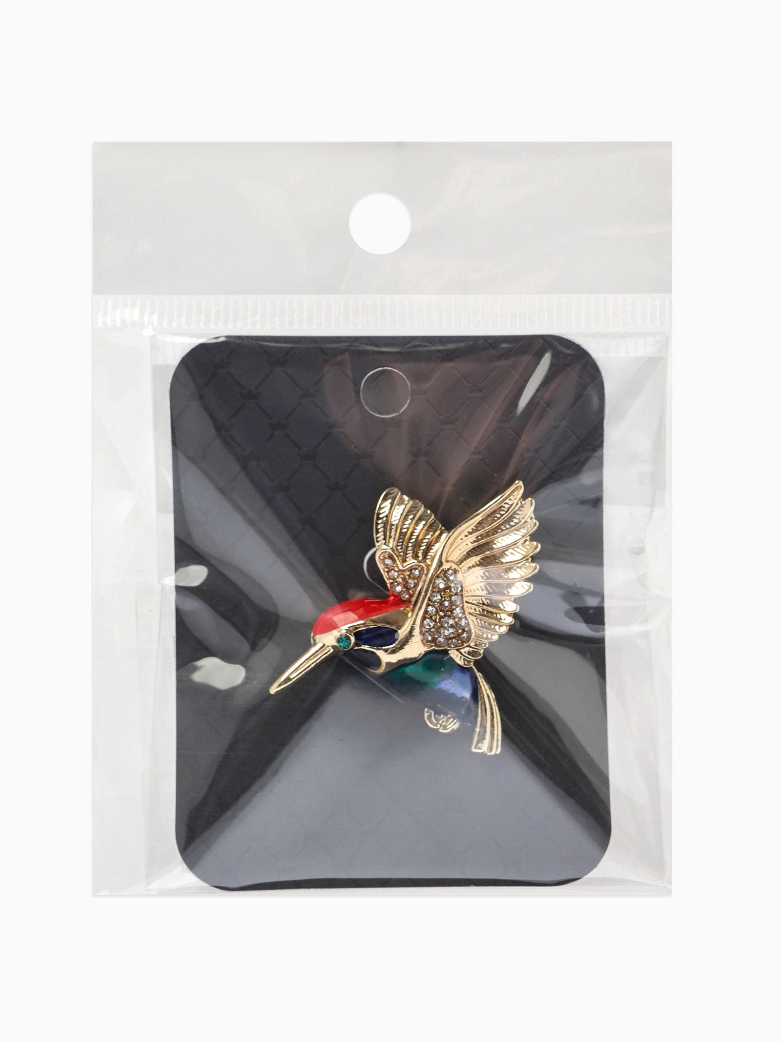 Брошь "Птица Колибри", разноцветная в золоте, 3x3x1.5 см., QF, Китай