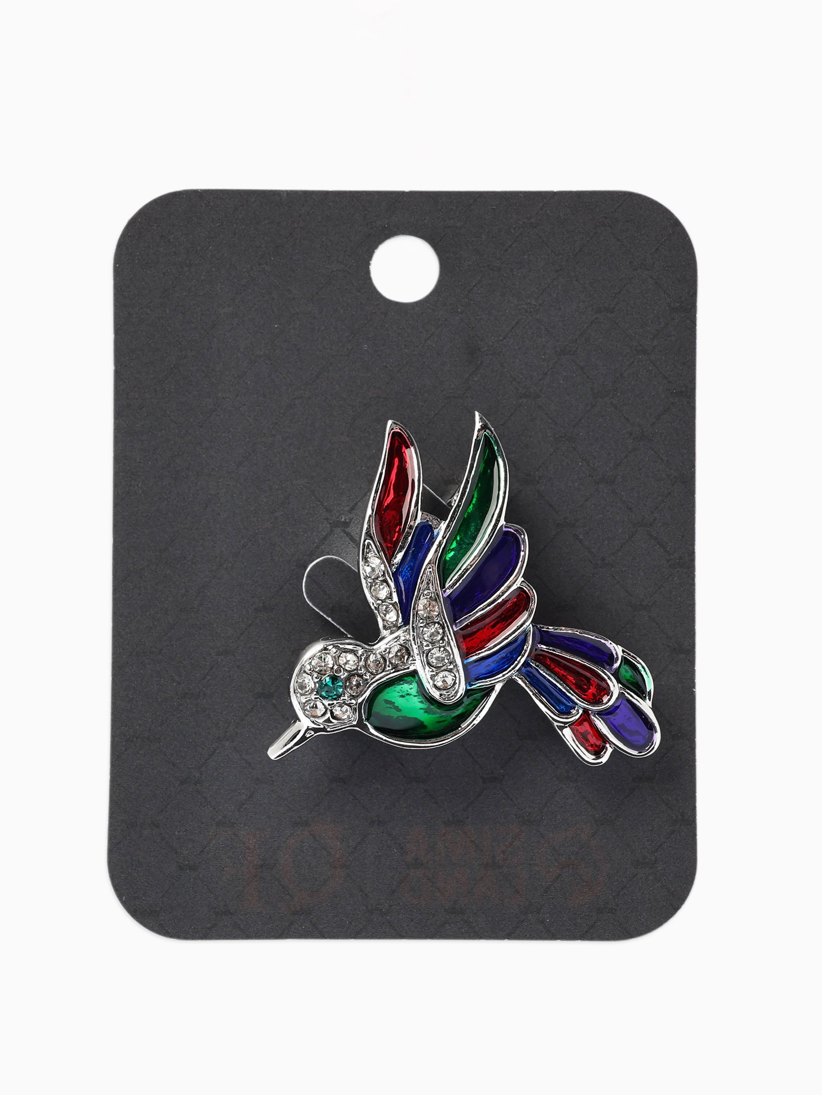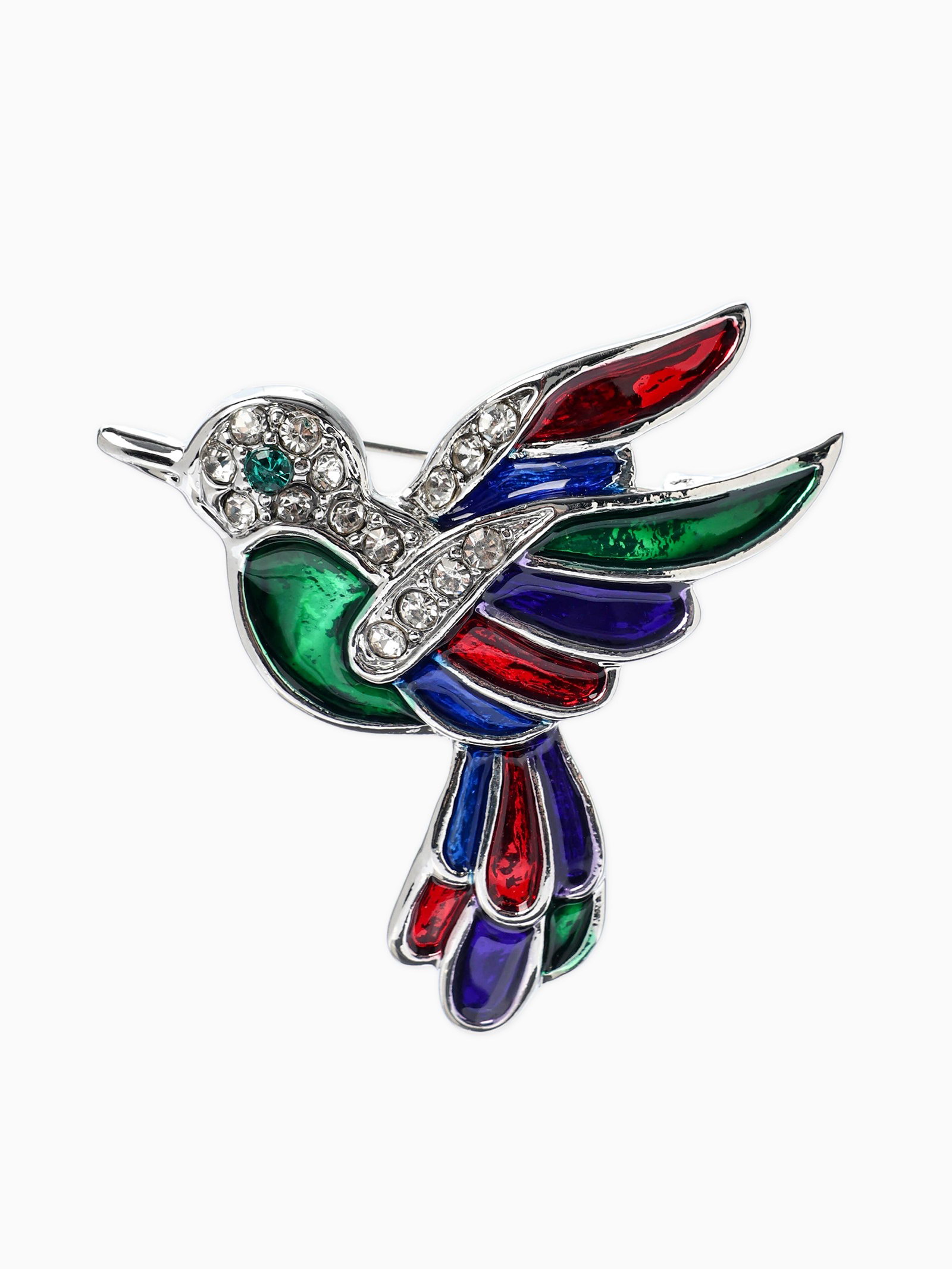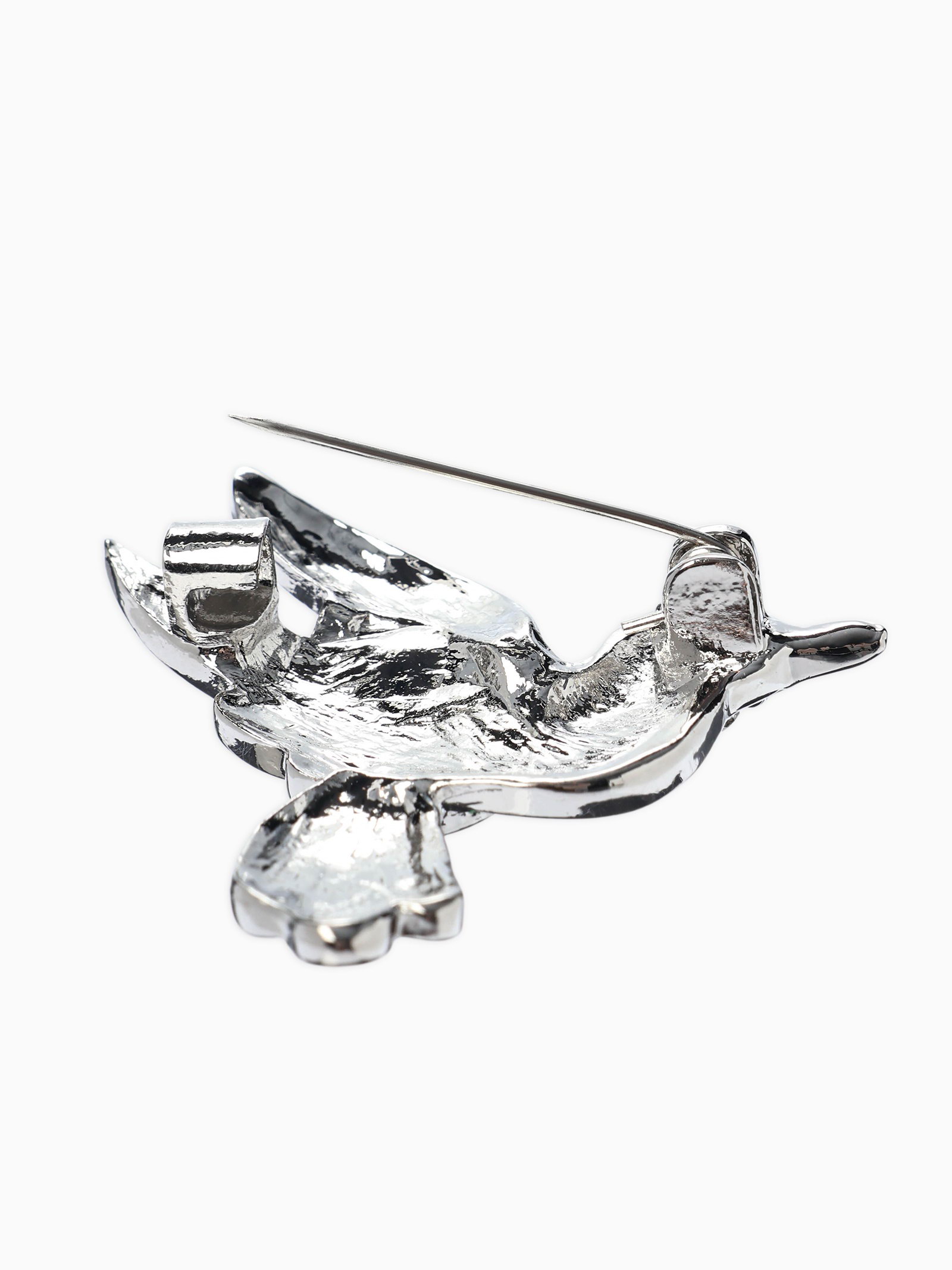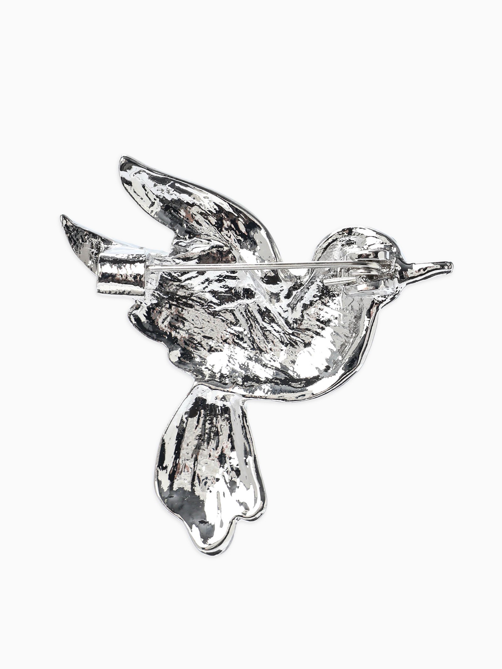 Брошь "Птица голубка", разноцветная в серебре, 3.6x3.6x1 см., QF, Китай
