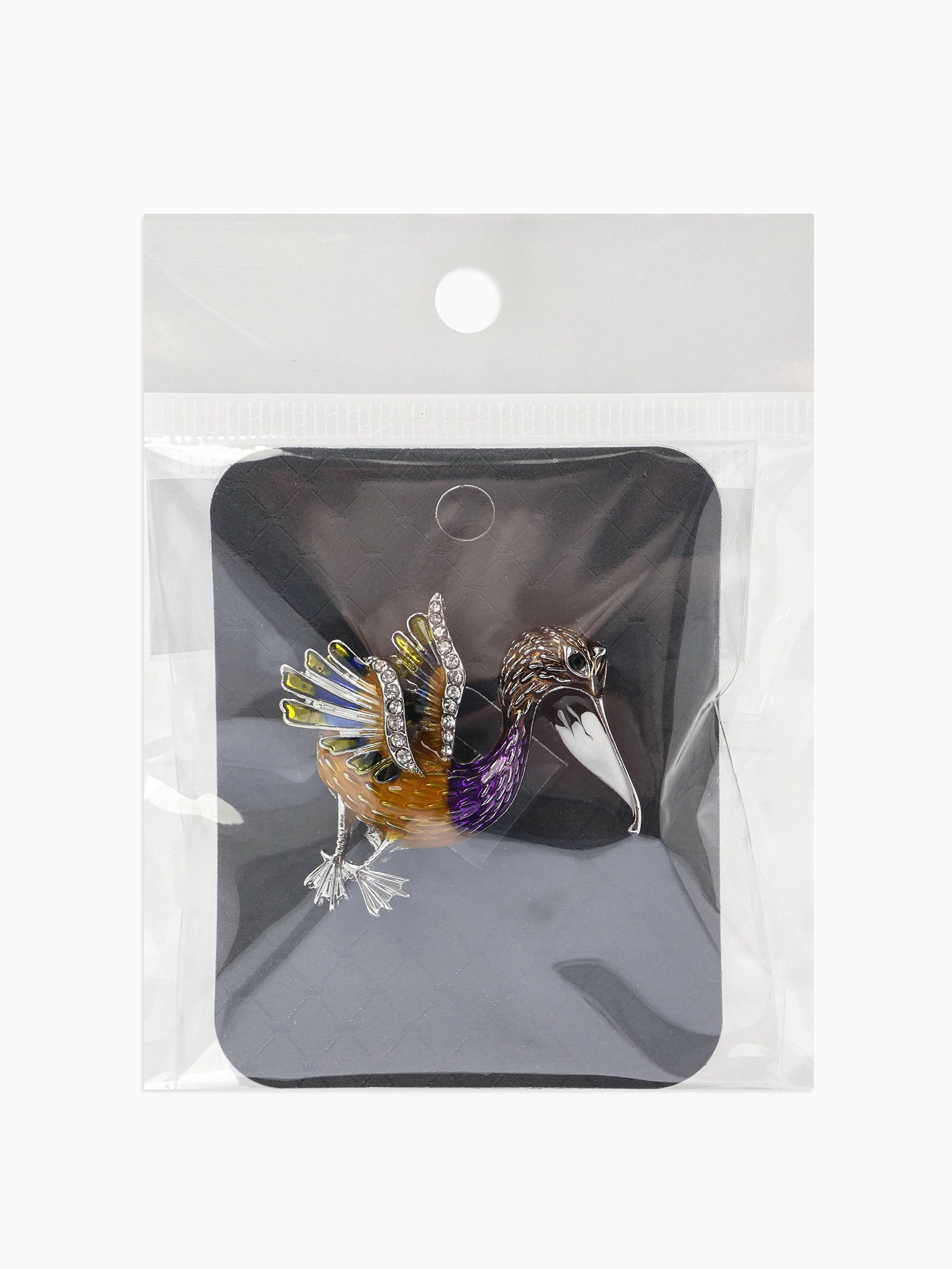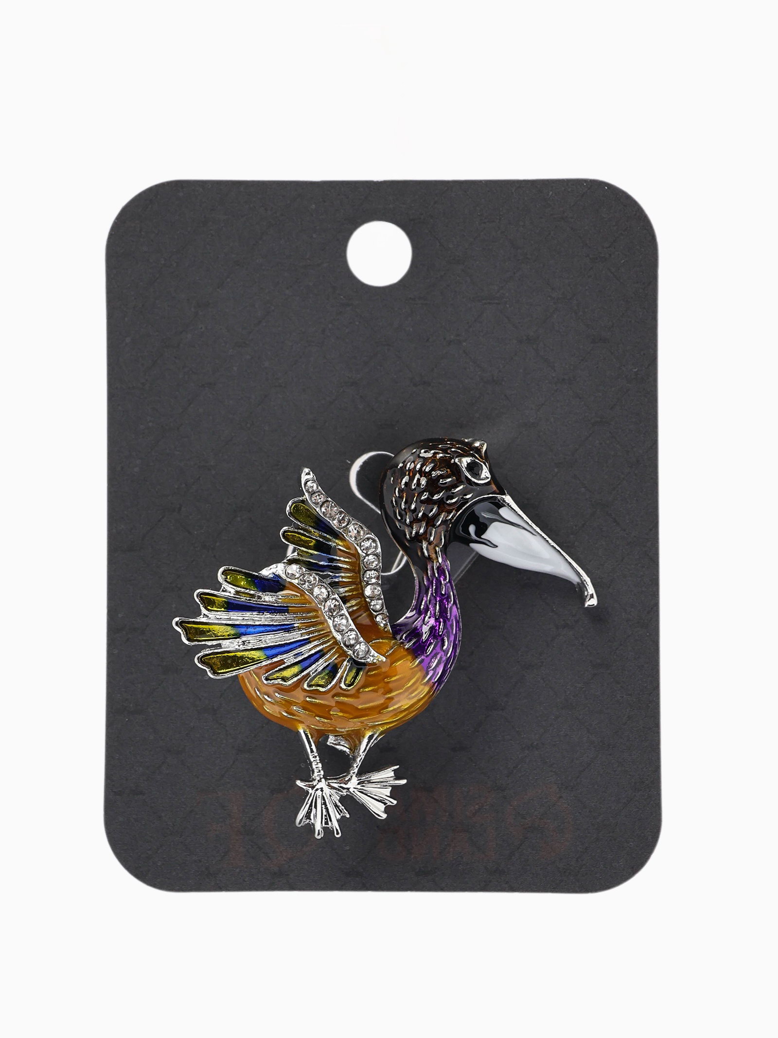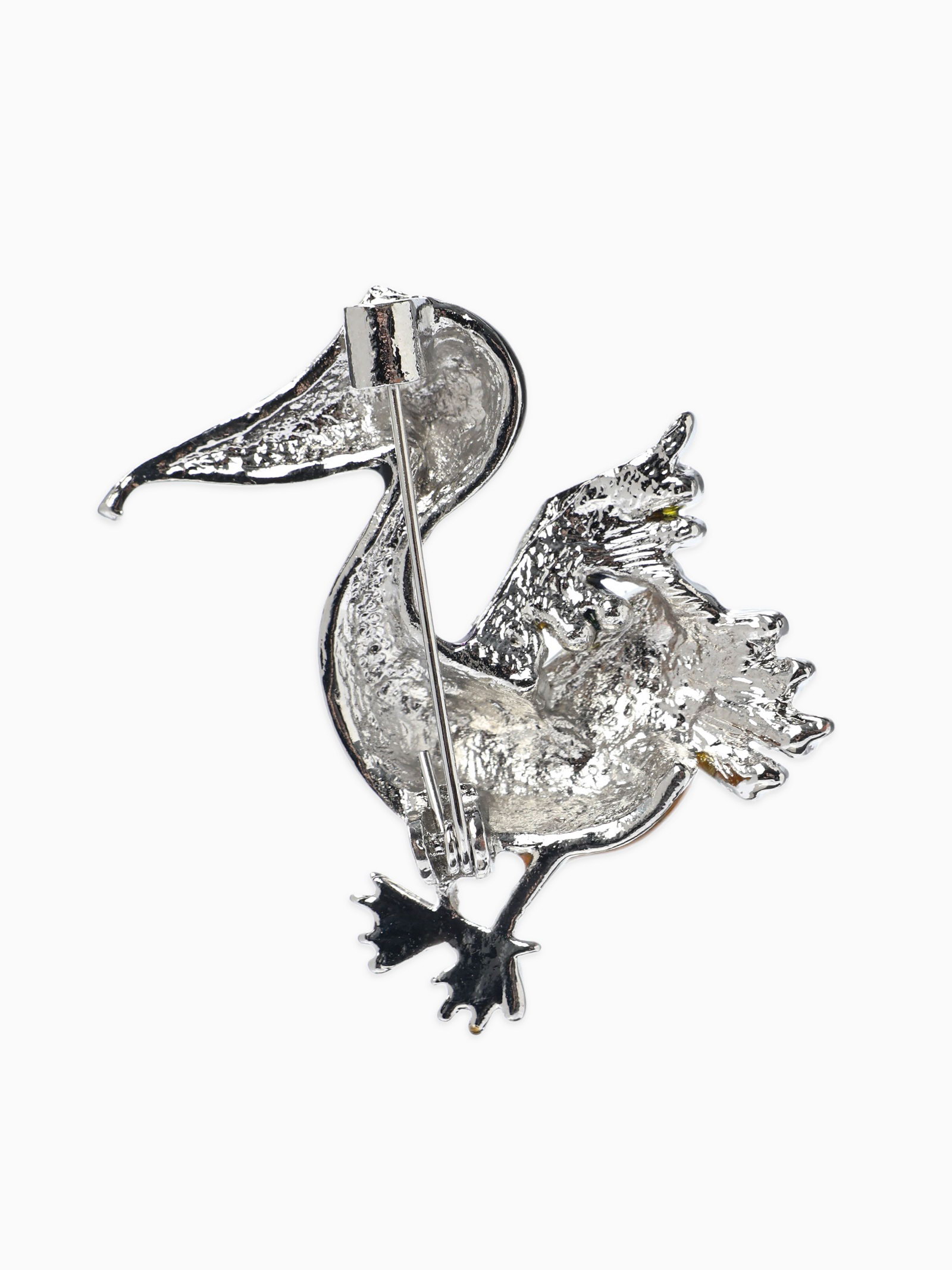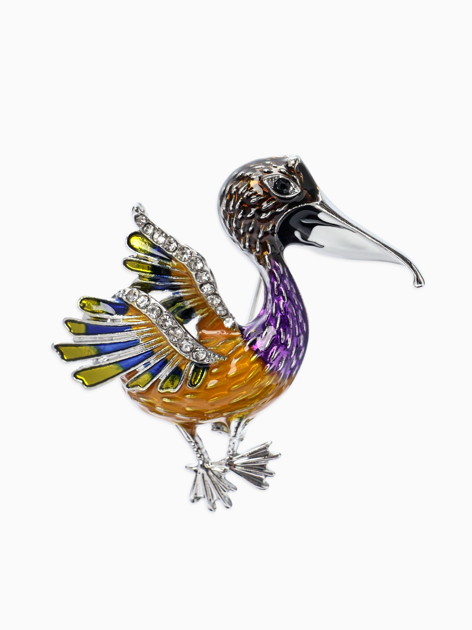 Брошь "Птица Пеликан", разноцветная в серебре, 4x4.3x1.5 см., QF, Китай