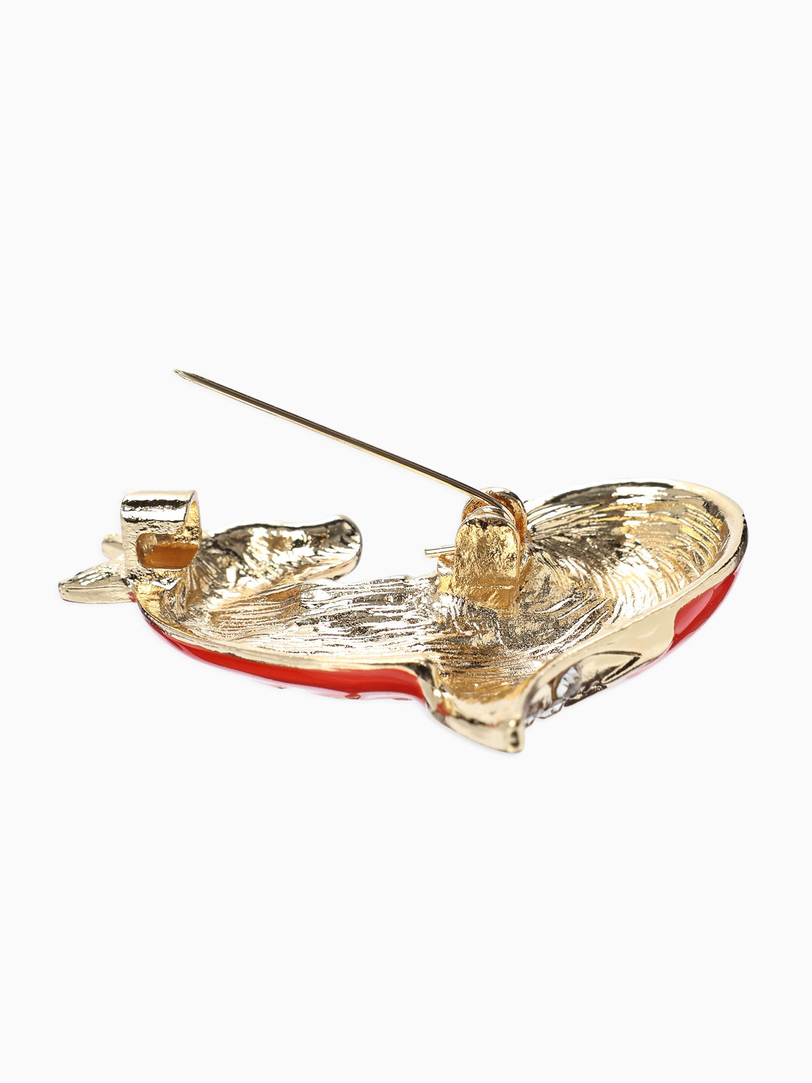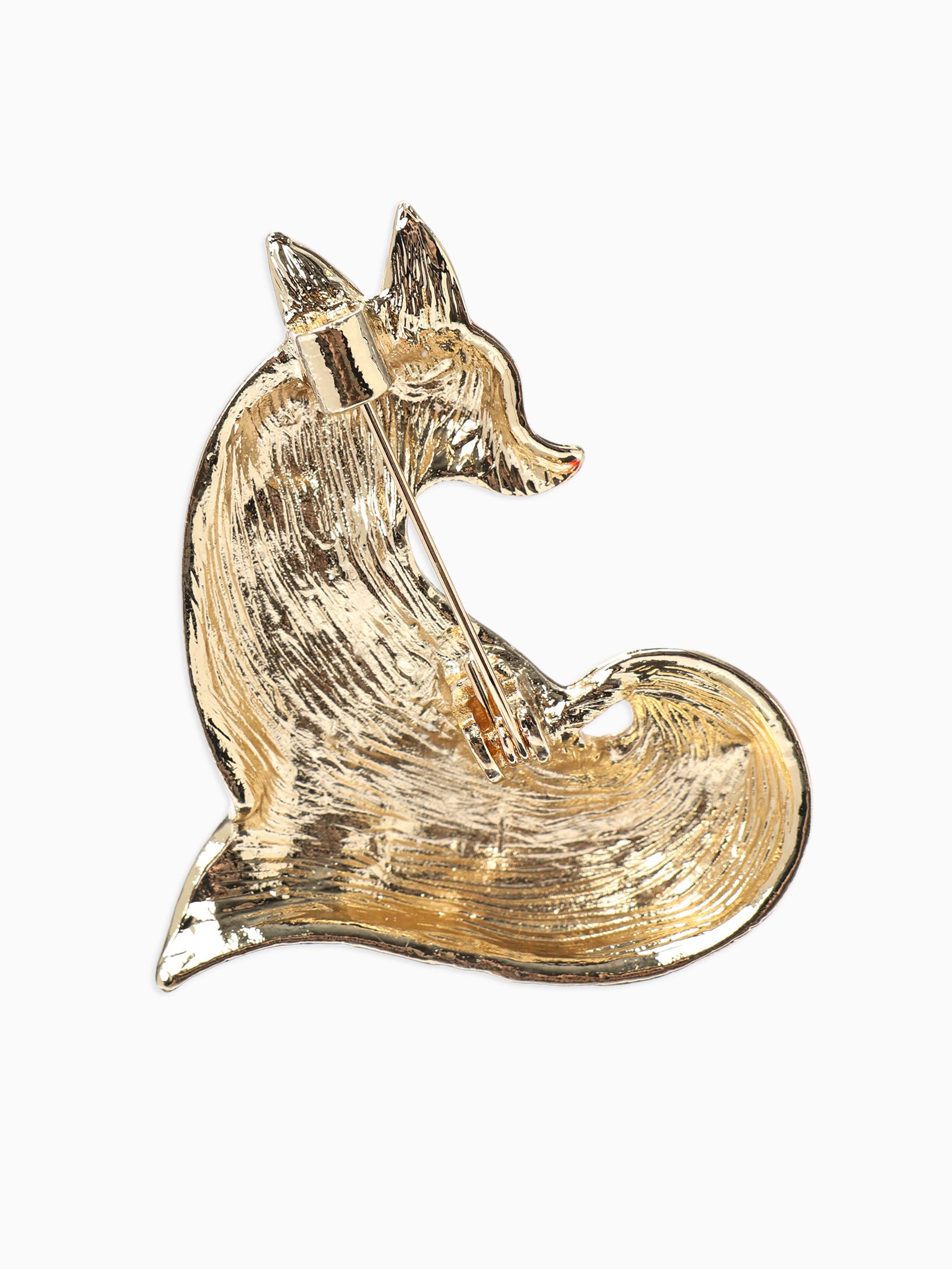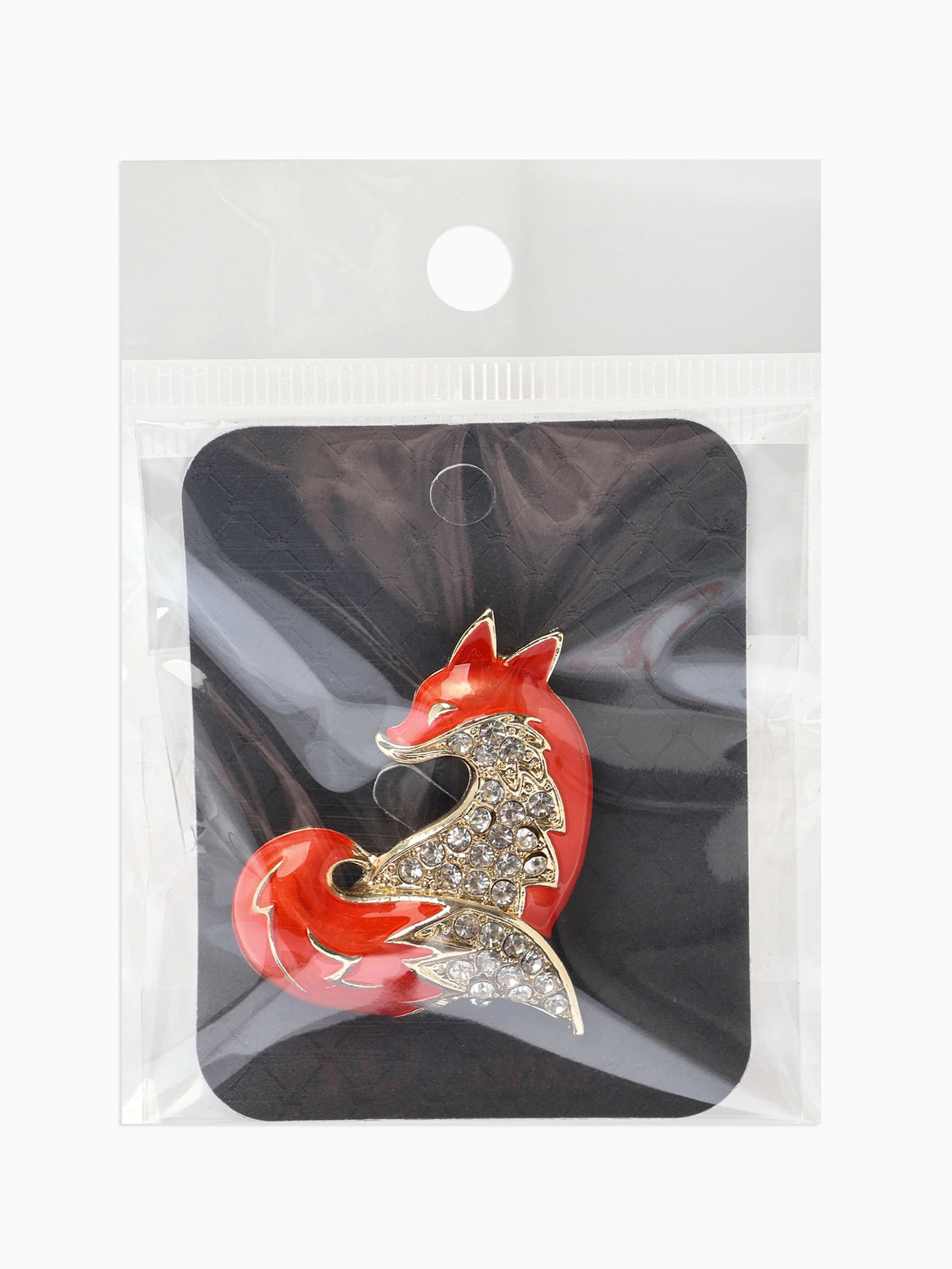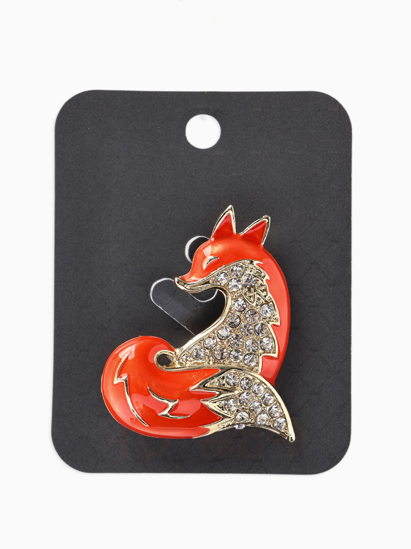 Брошь "Лиса хитрая", стразы, оранжевая, белая в золоте, 3.5x4.4x1 см., QF, Китай
