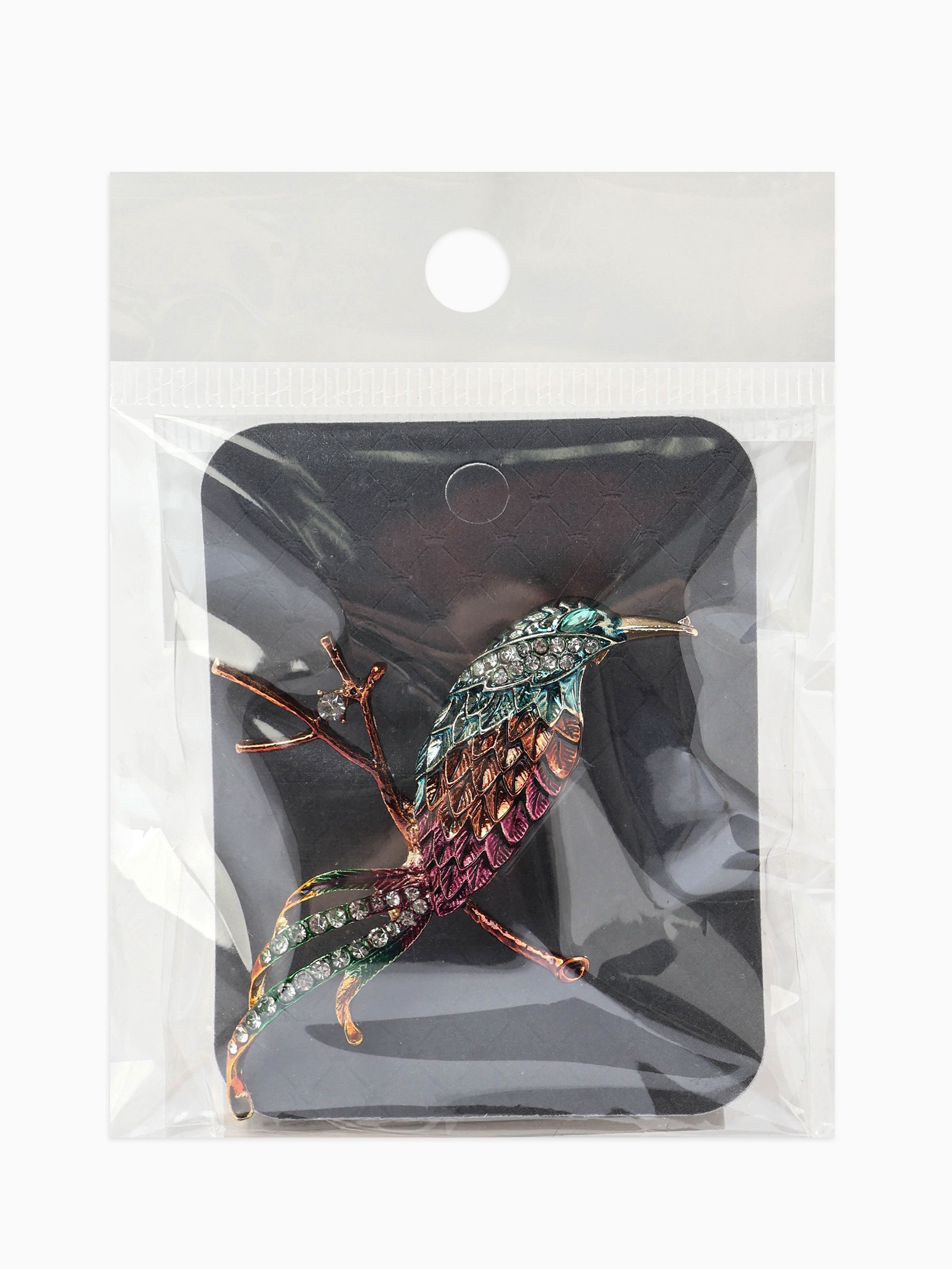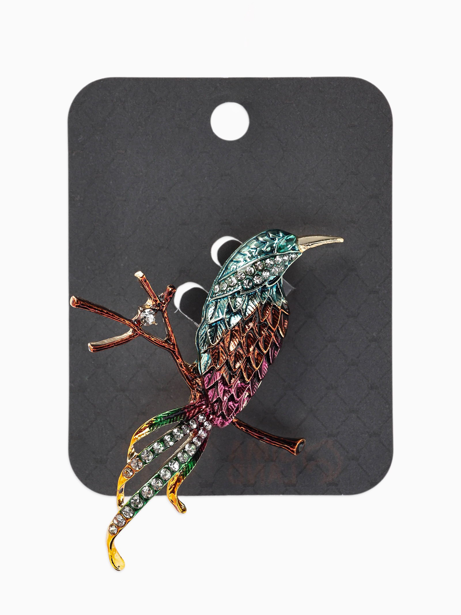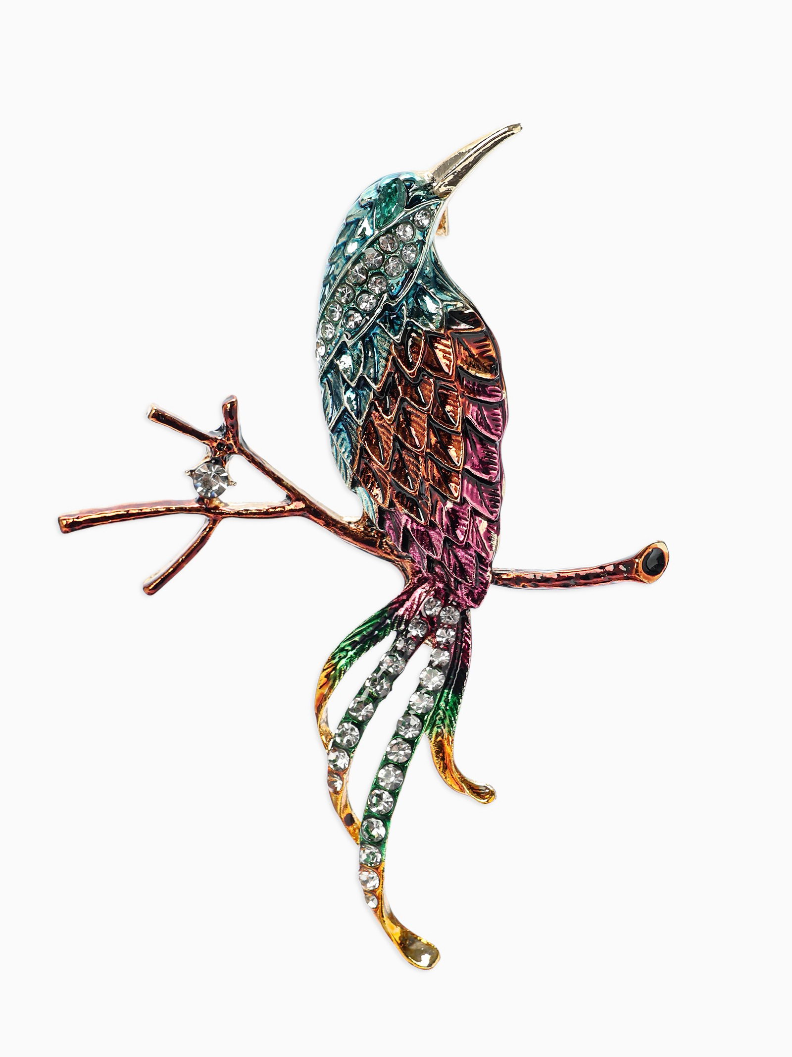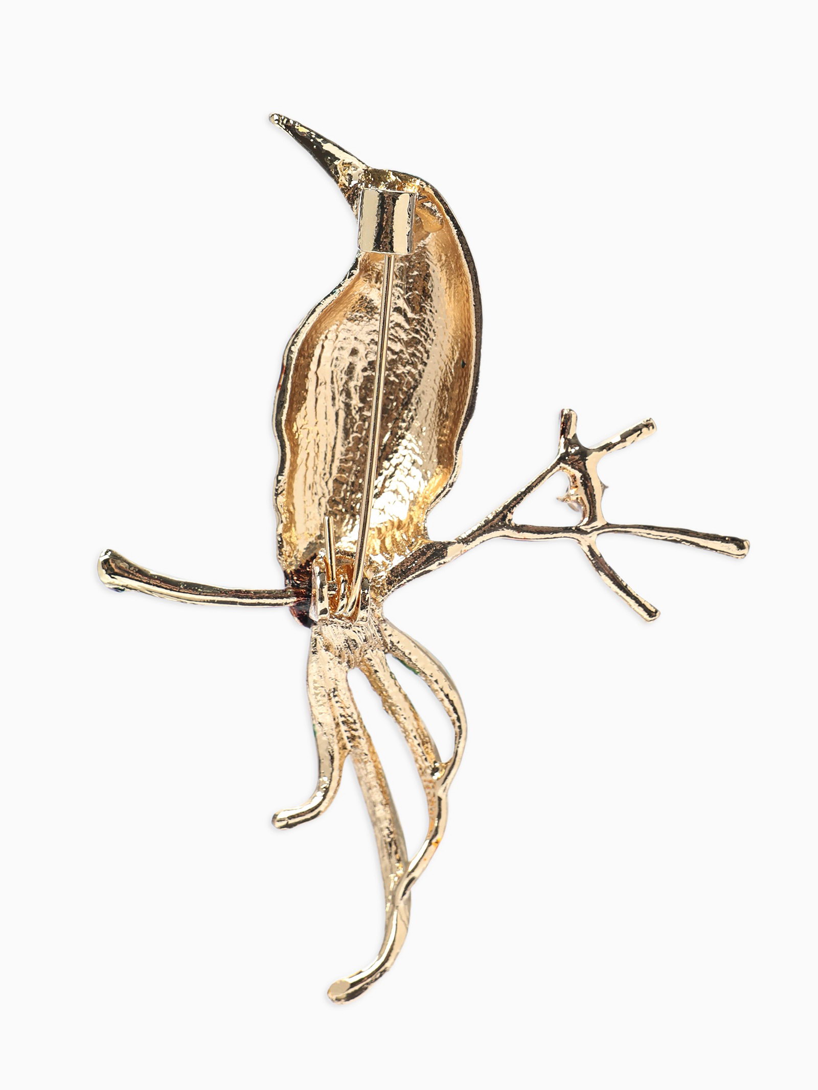 Брошь "Птица на ветке", разноцветная в золоте, 5x7x1.4 см., QF, Китай