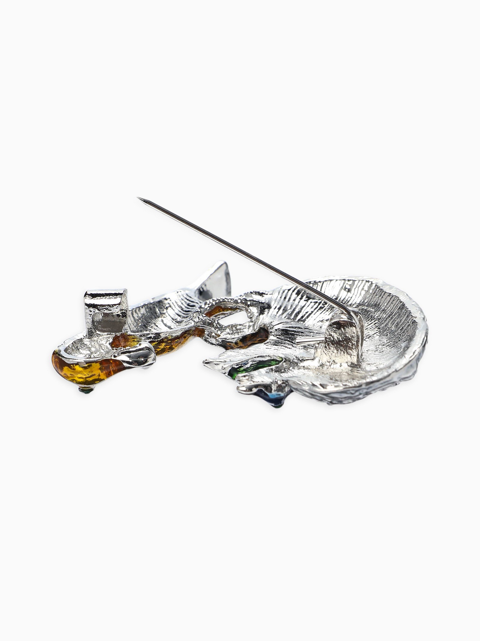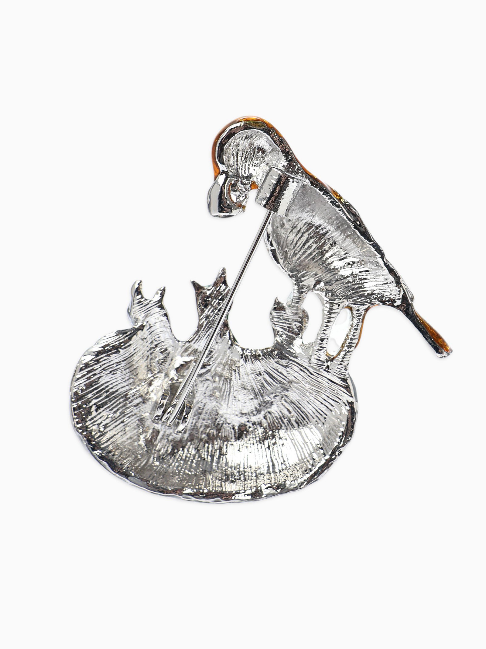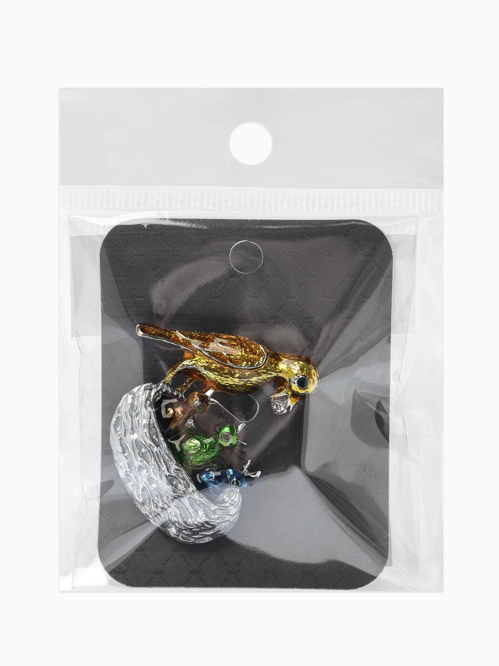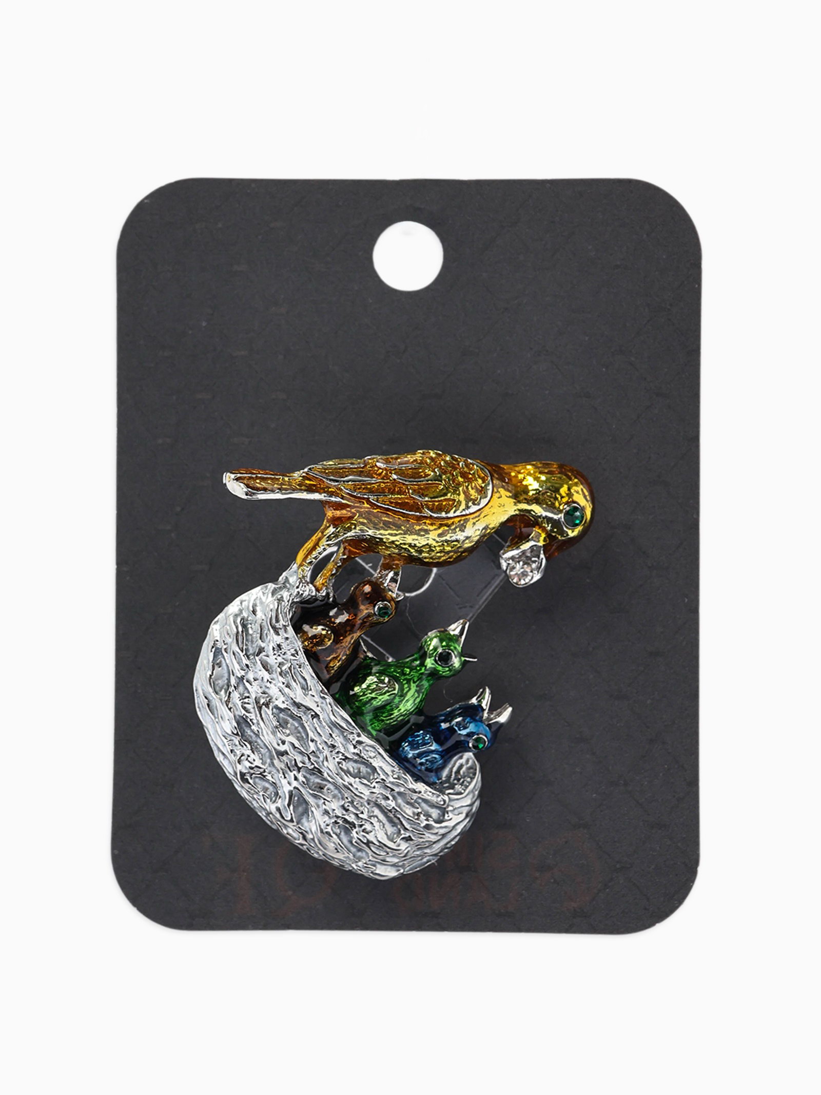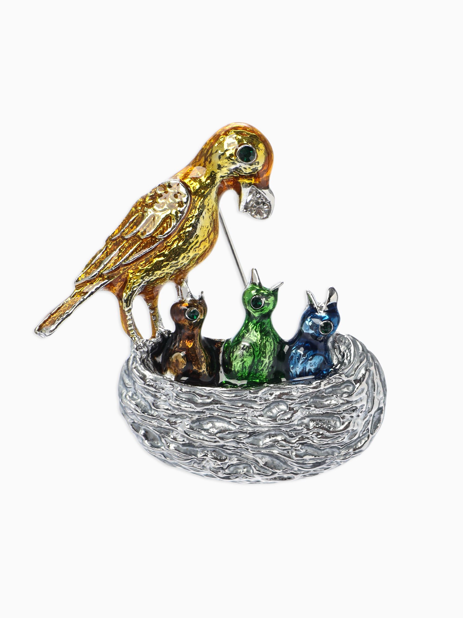 Брошь "Птица с птенцами в гнезде", разноцветная в серебре, 4.5x4x1 см., QF, Китай