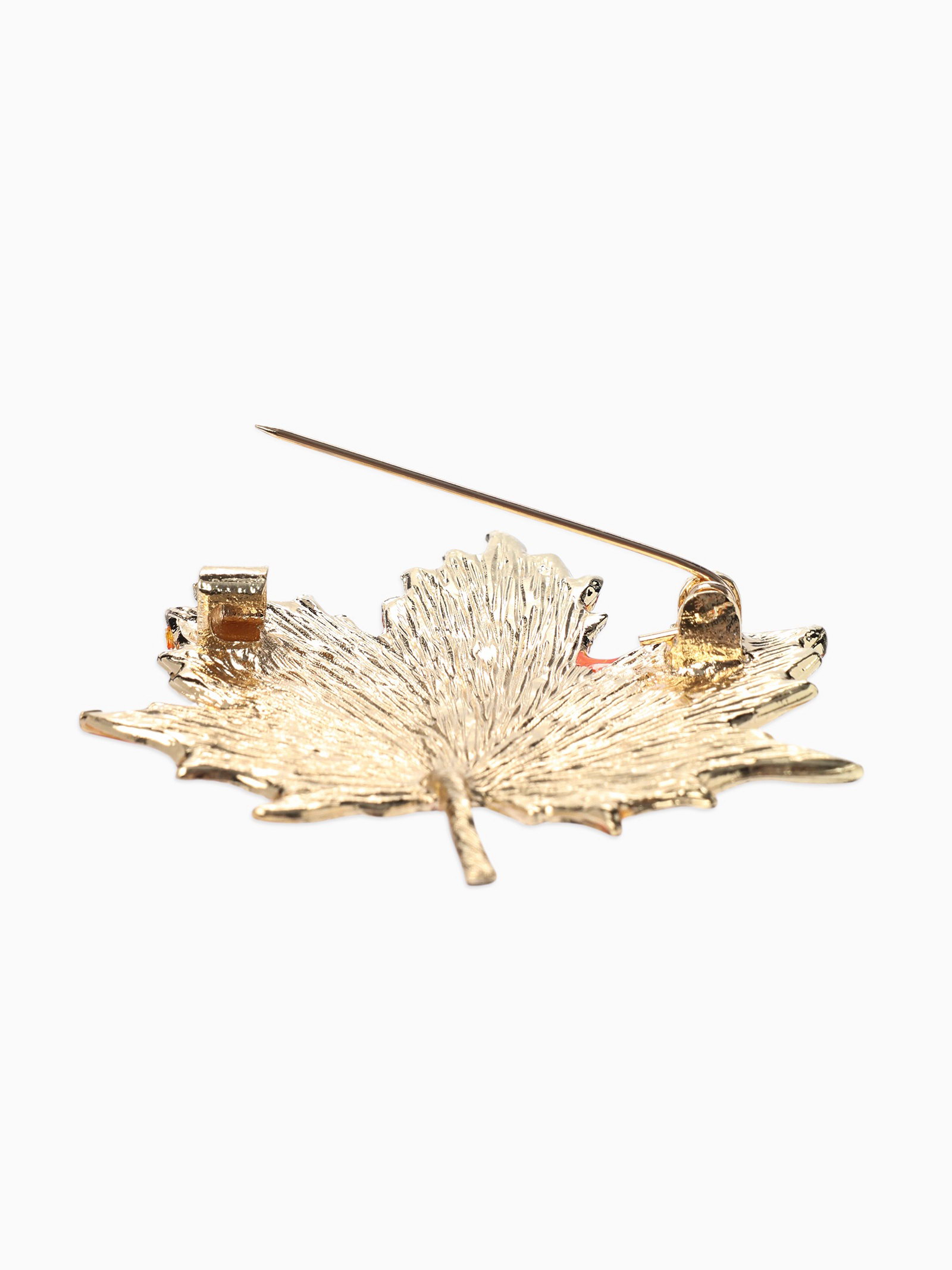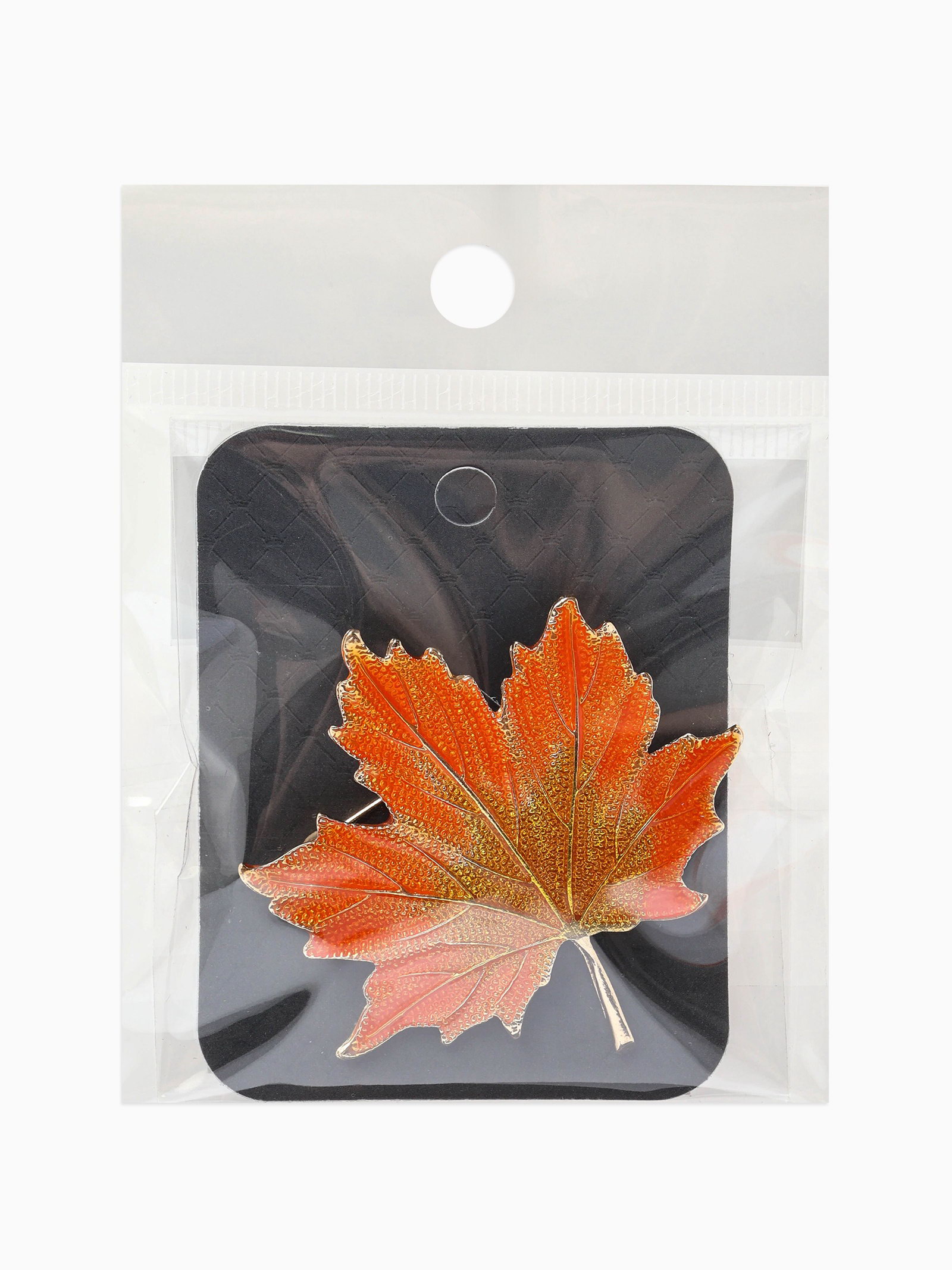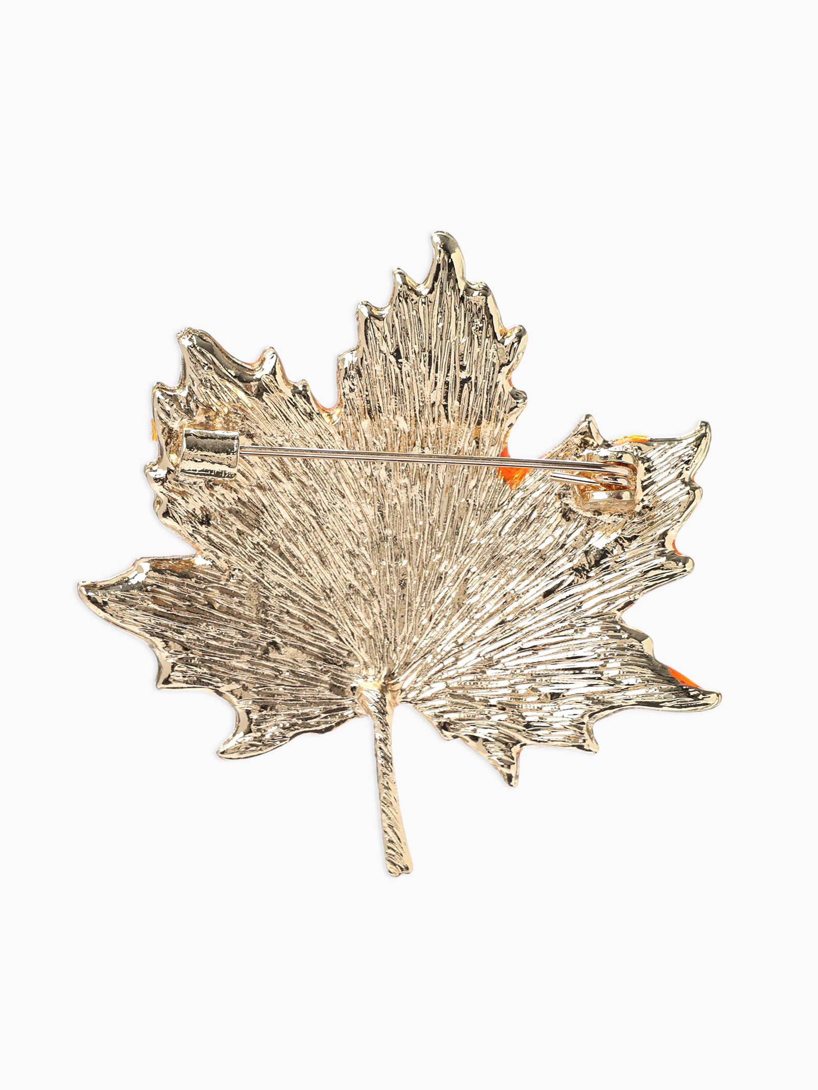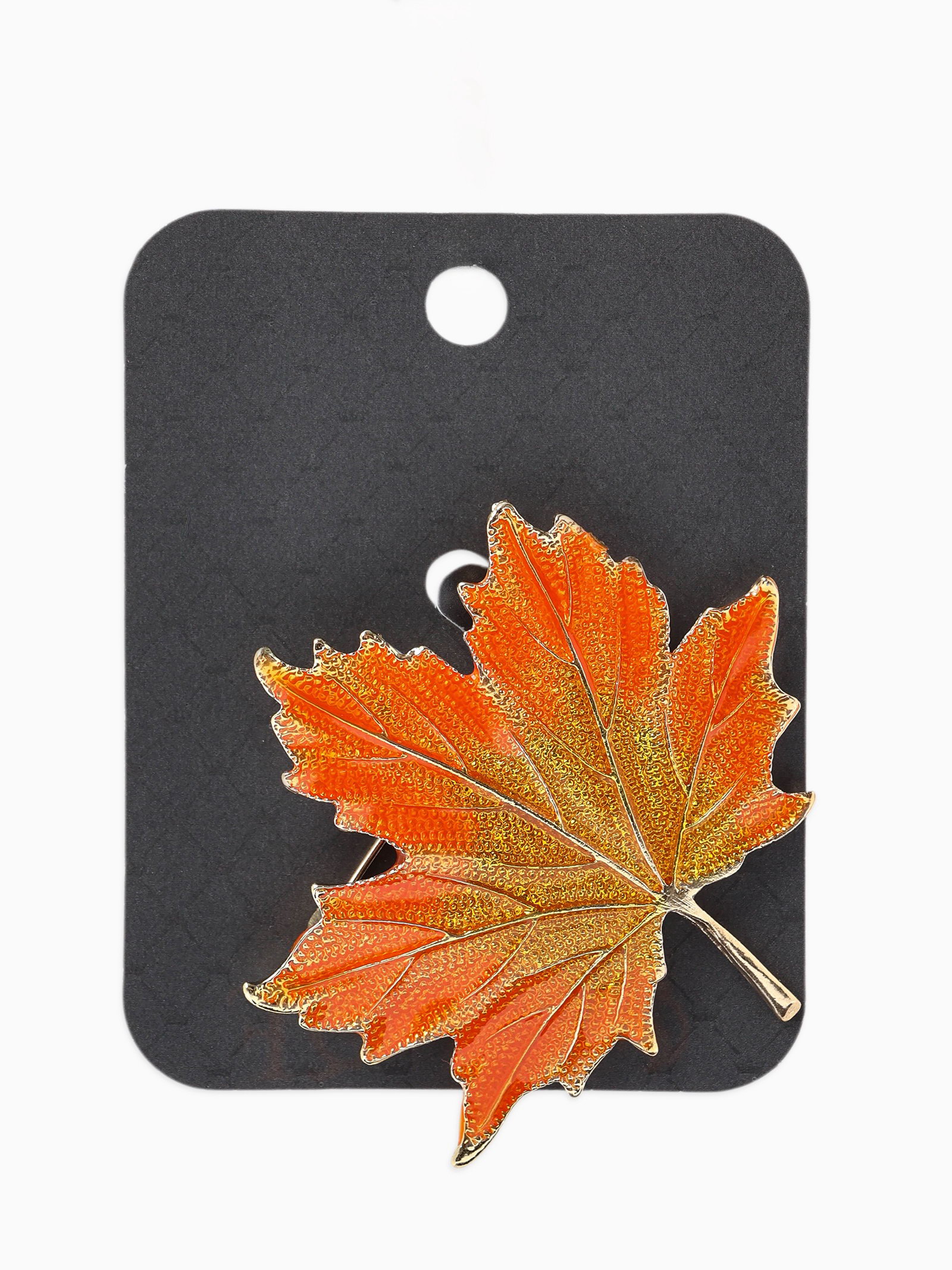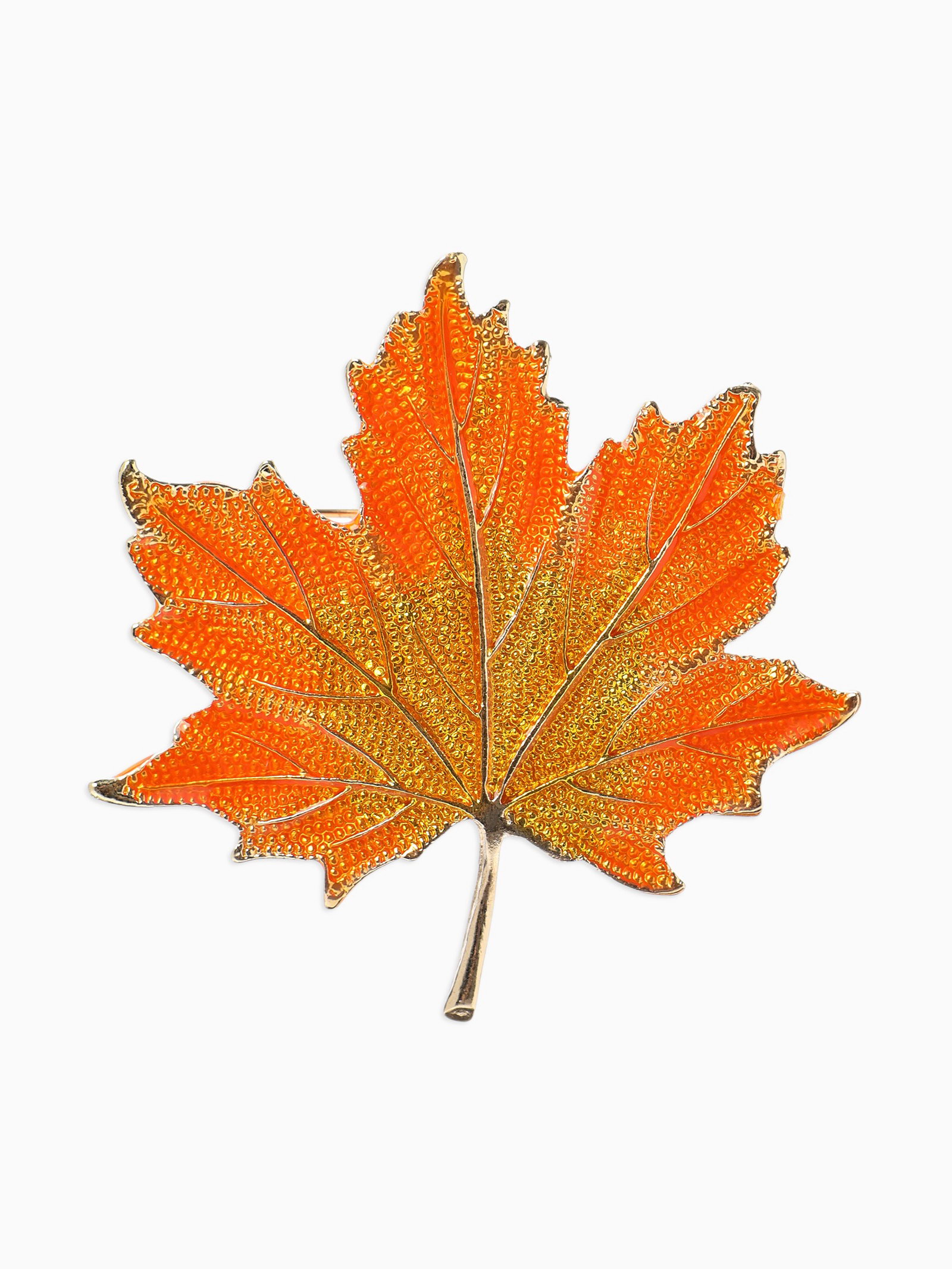 Брошь "Лист кленовый осенний", оранжевая в золоте, 5x5.5x0.5 см., QF, Китай